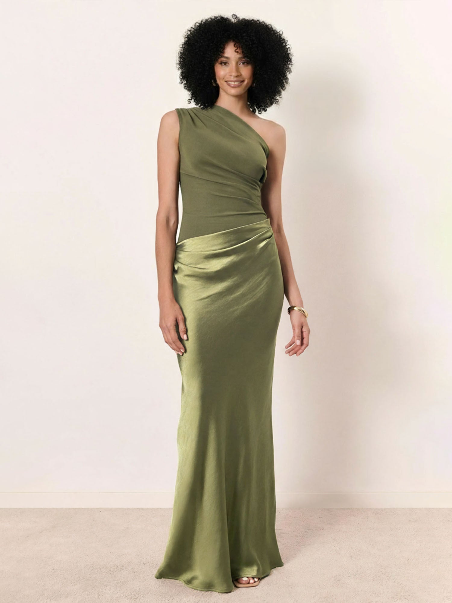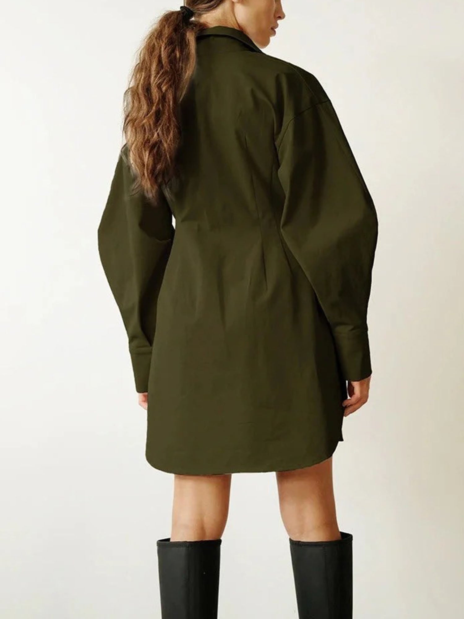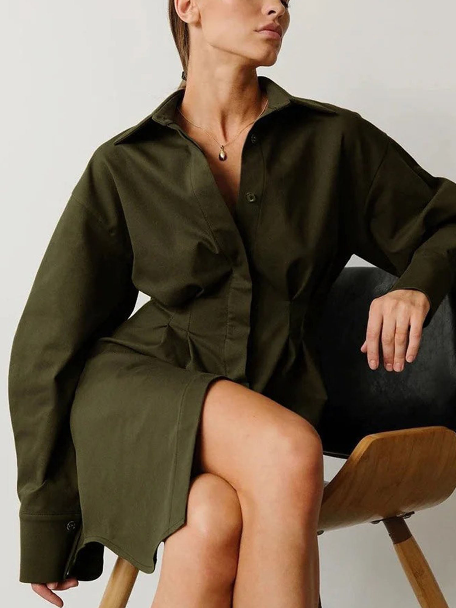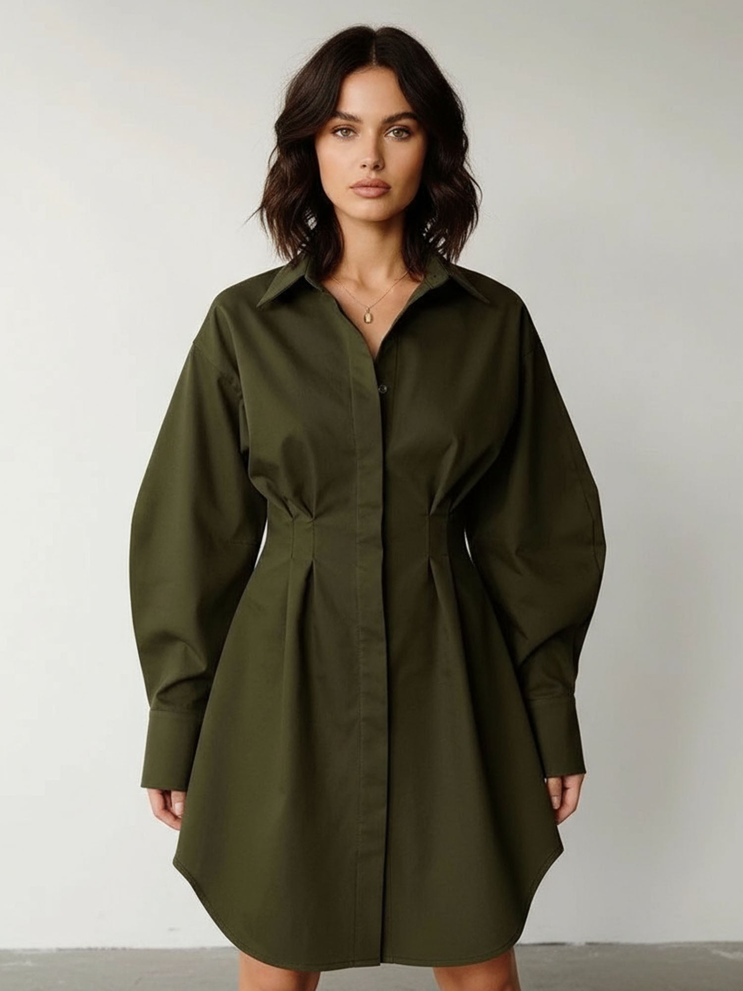 Green Cinched Waist Shirt Dress Effortless A-Line