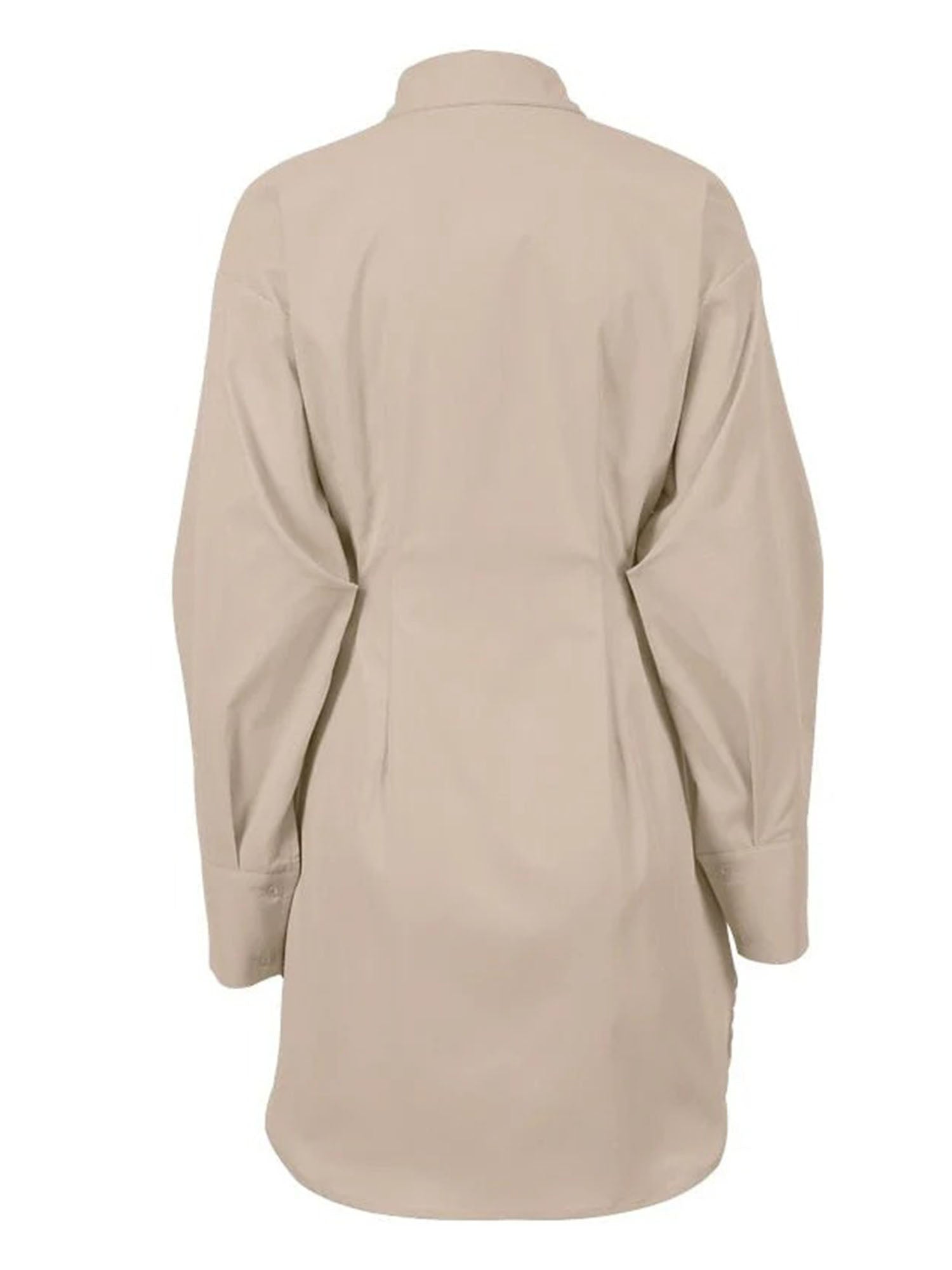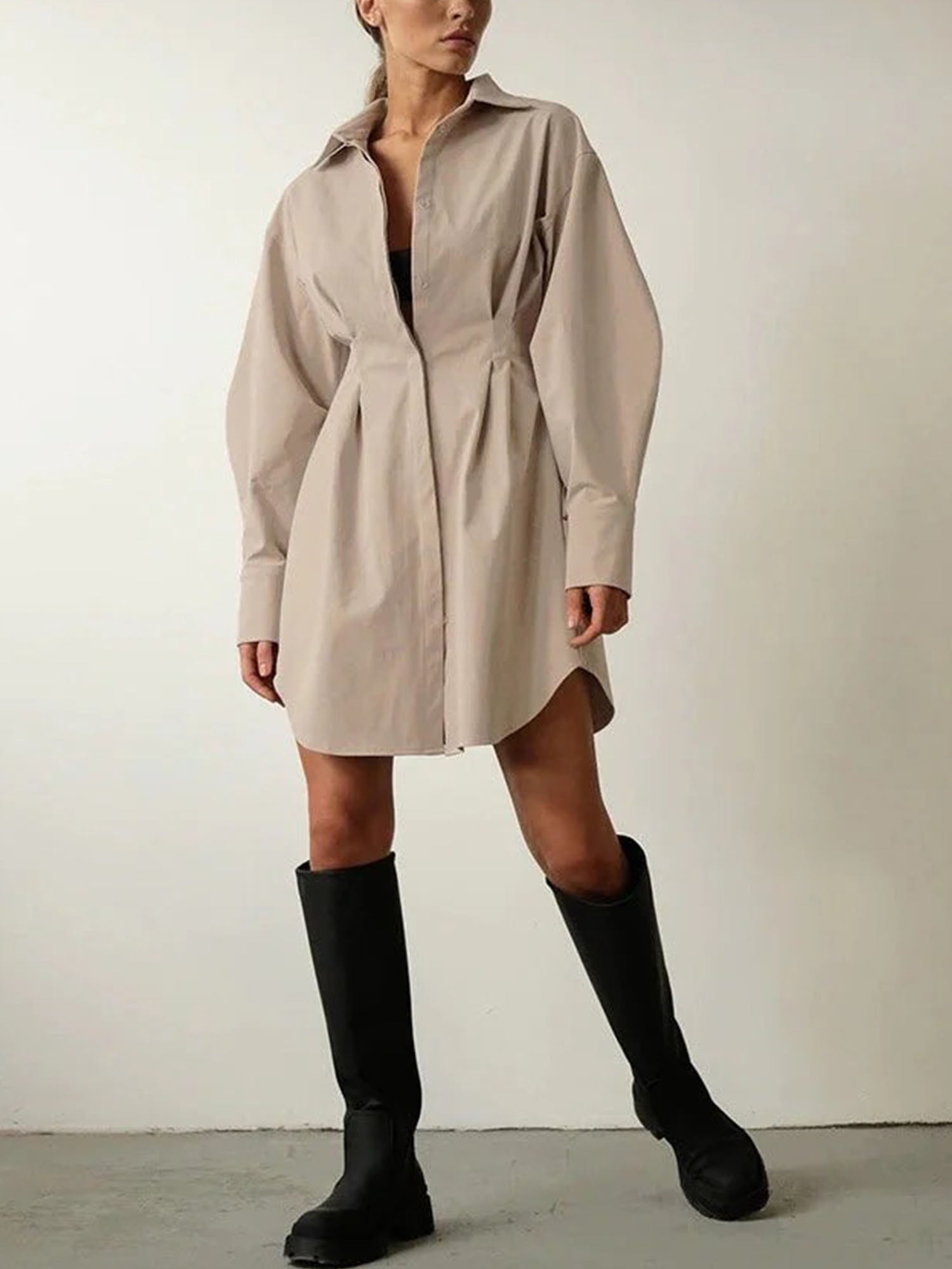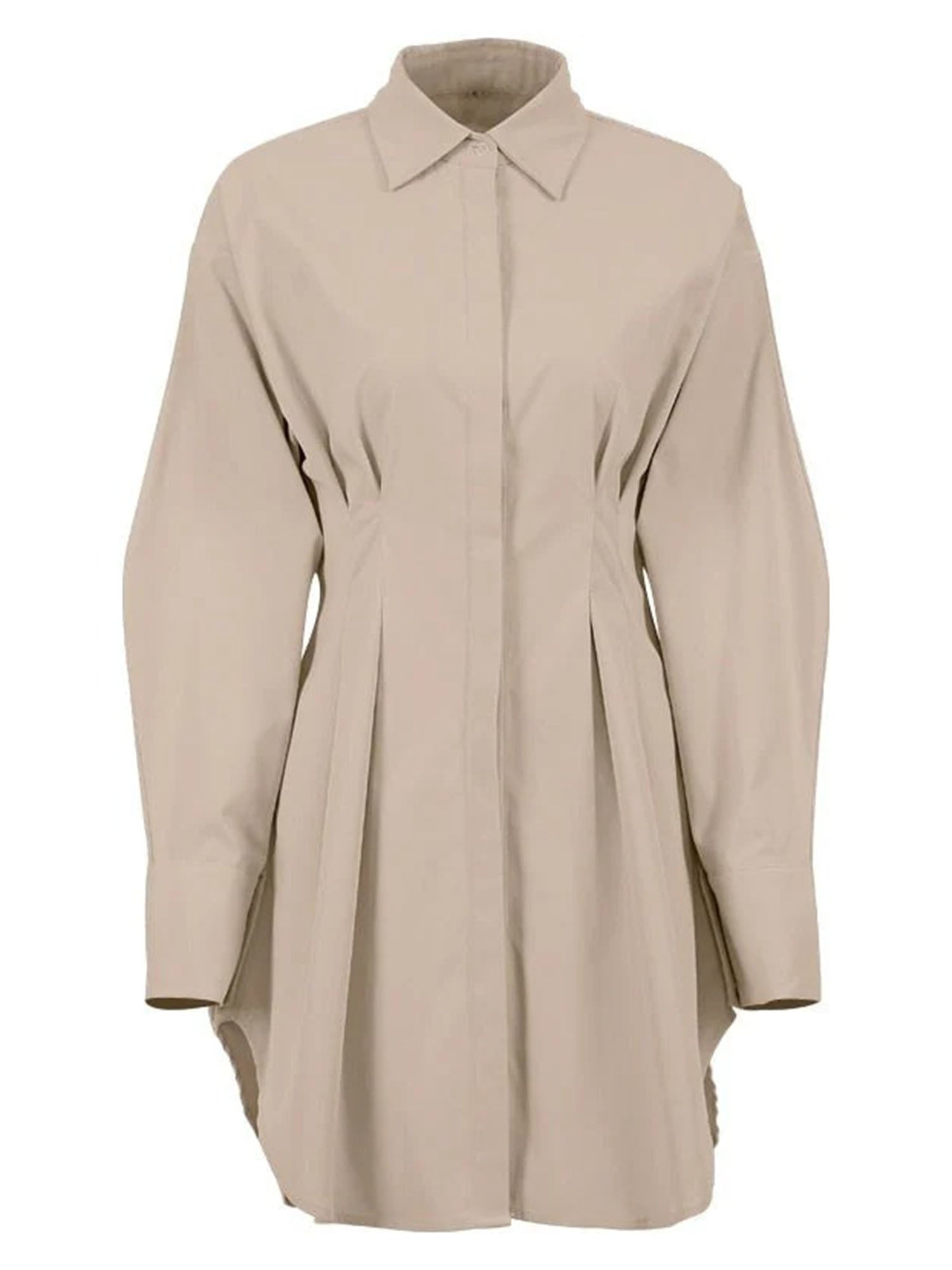 Khaki Cinched Waist Shirt Dress Effortless A-Line