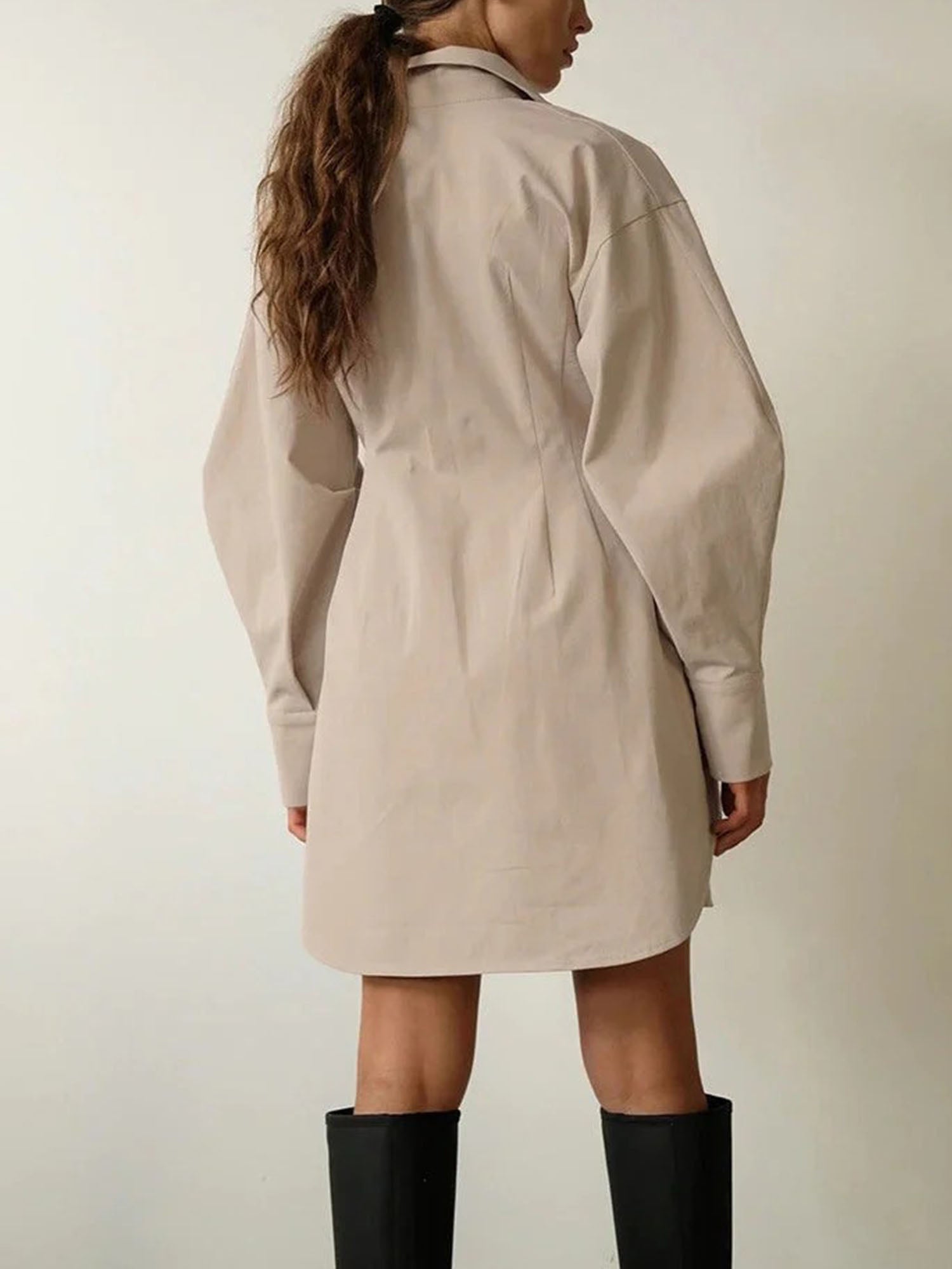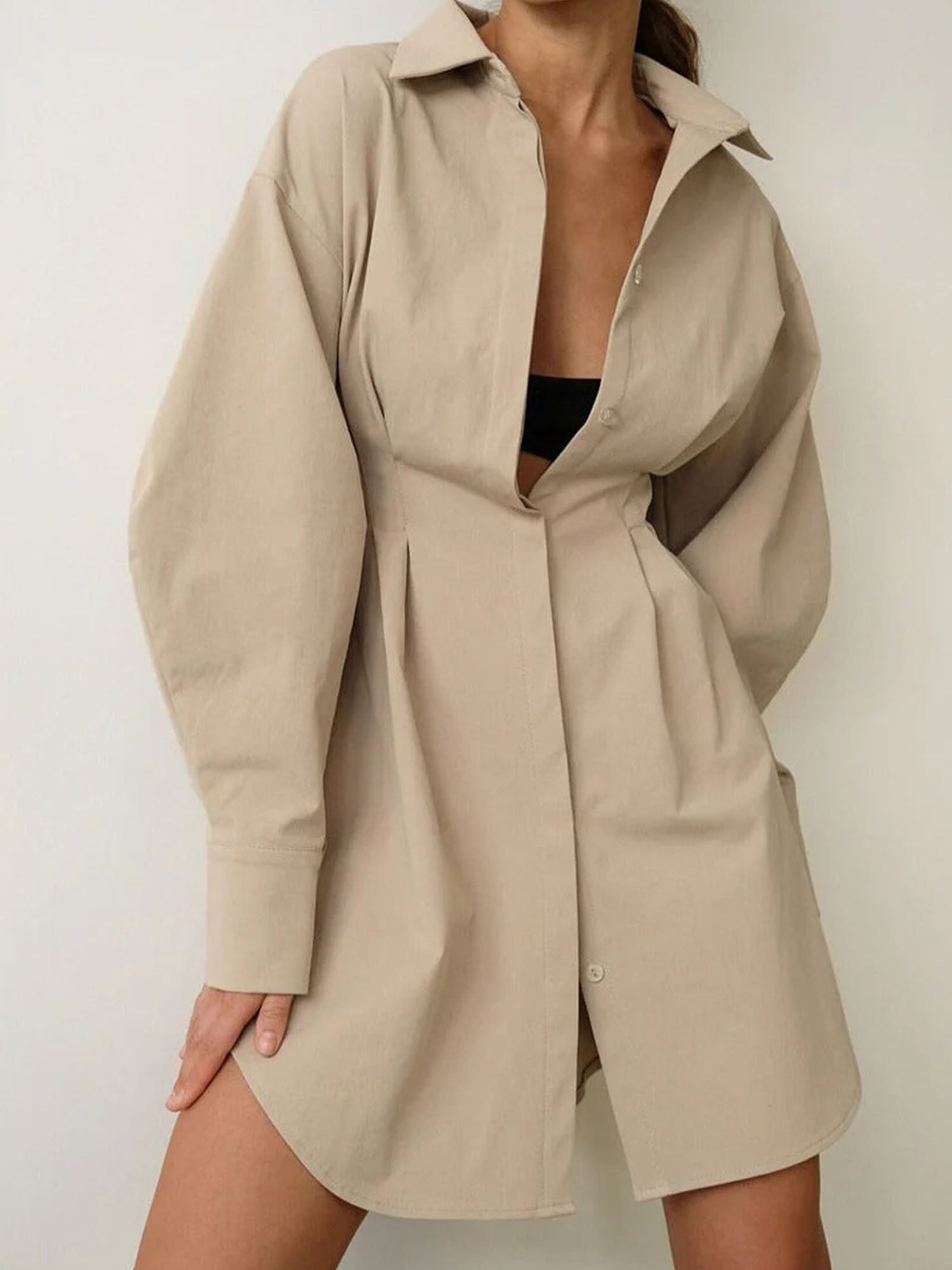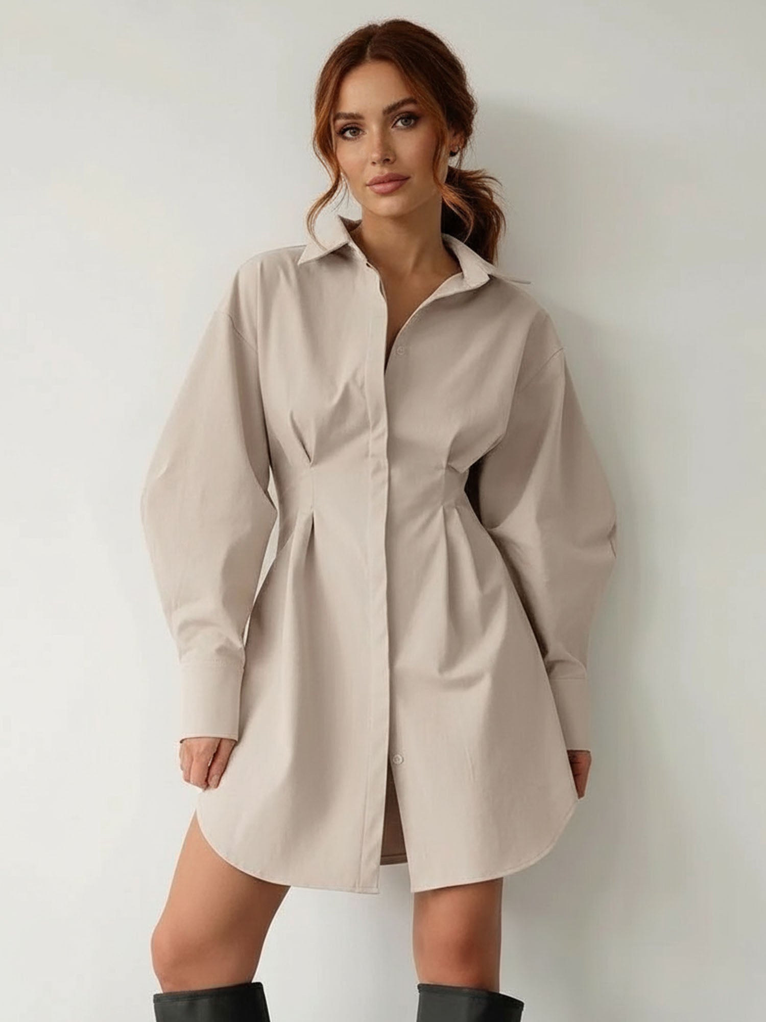 Khaki Cinched Waist Shirt Dress Effortless A-Line