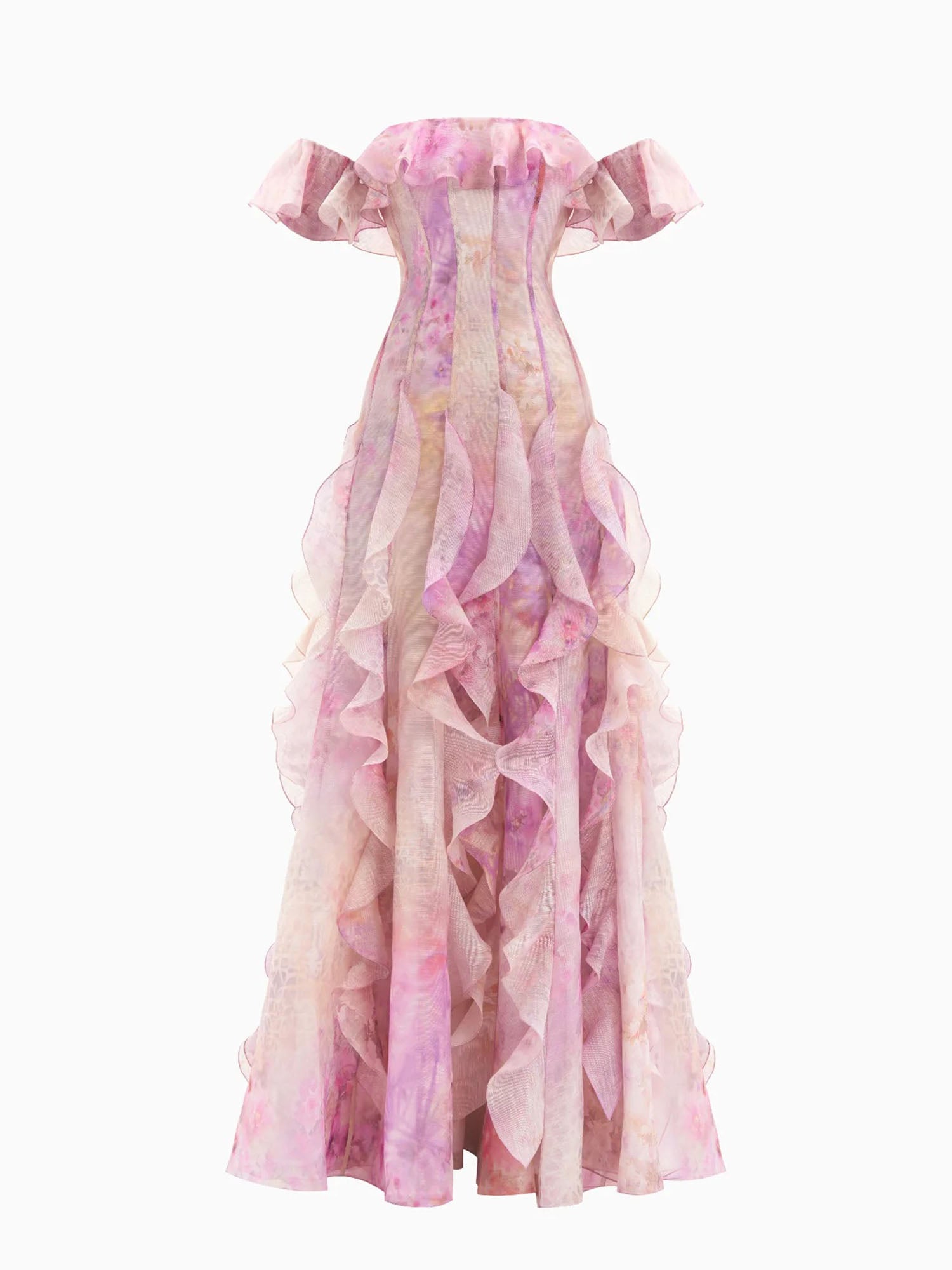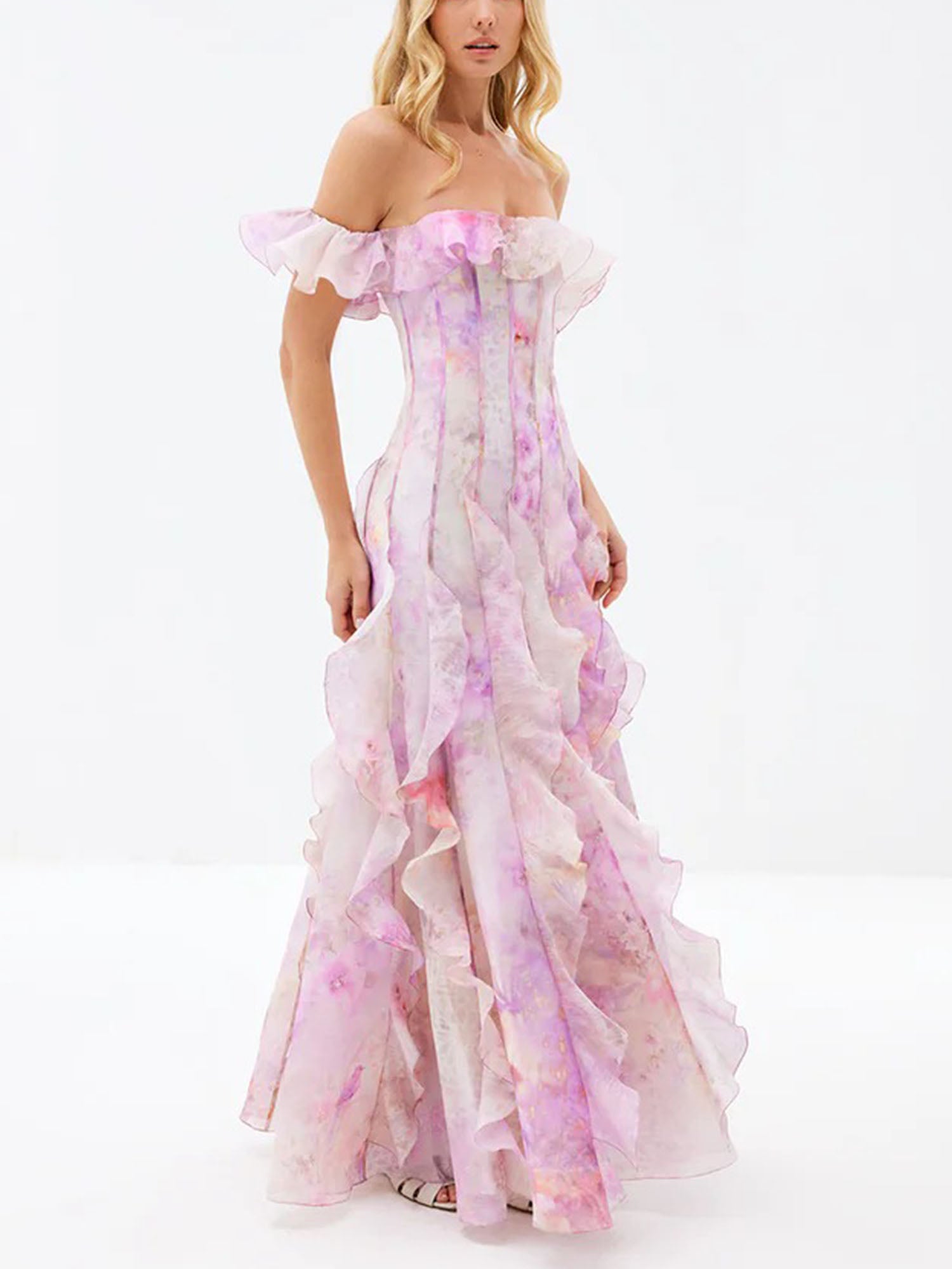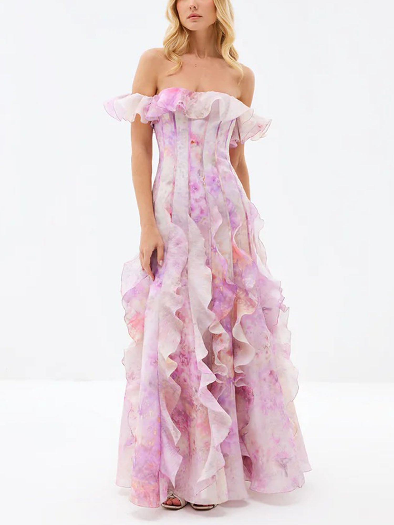 Lavender Off-Shoulder Ruffle Maxi Dress