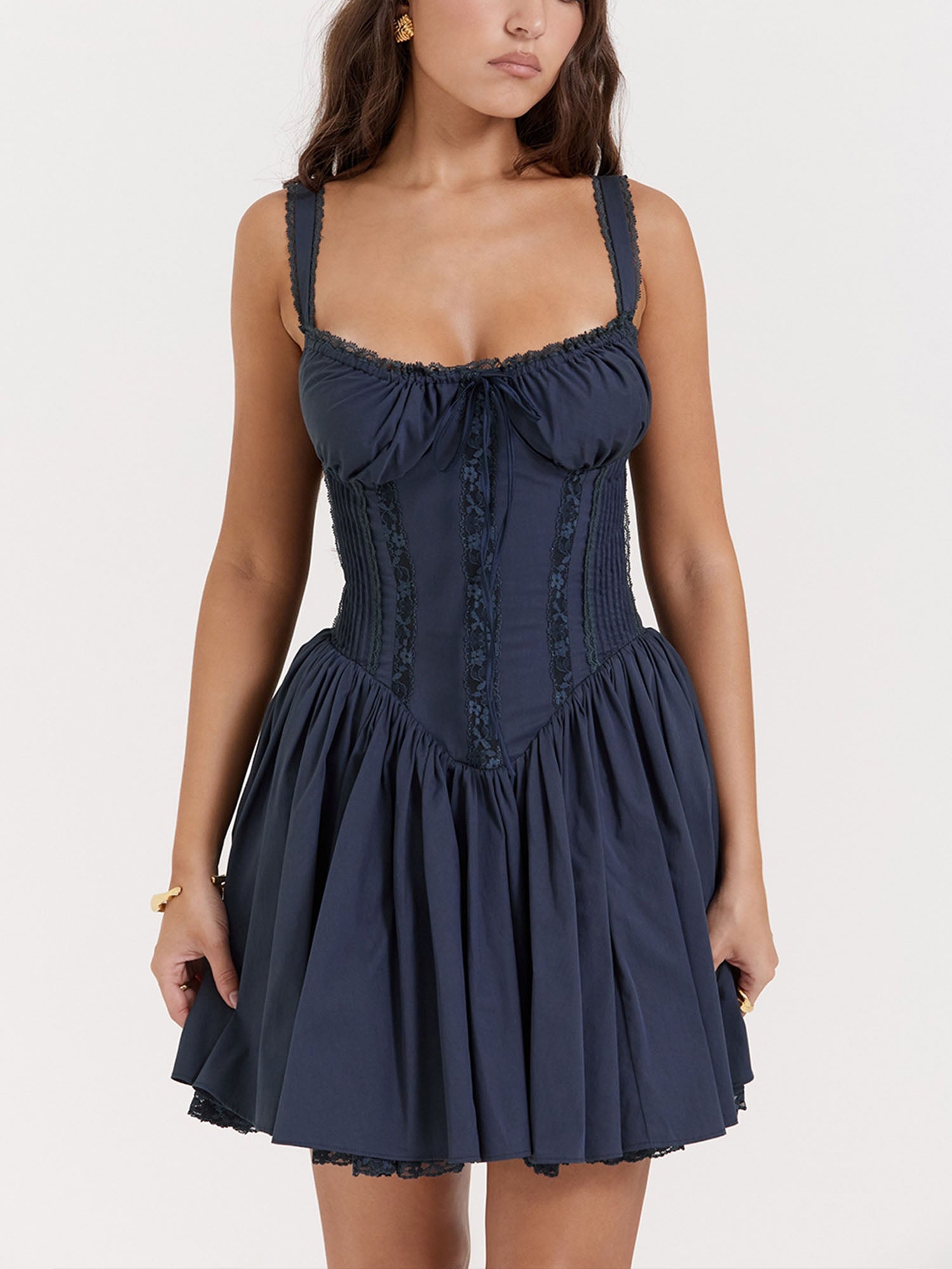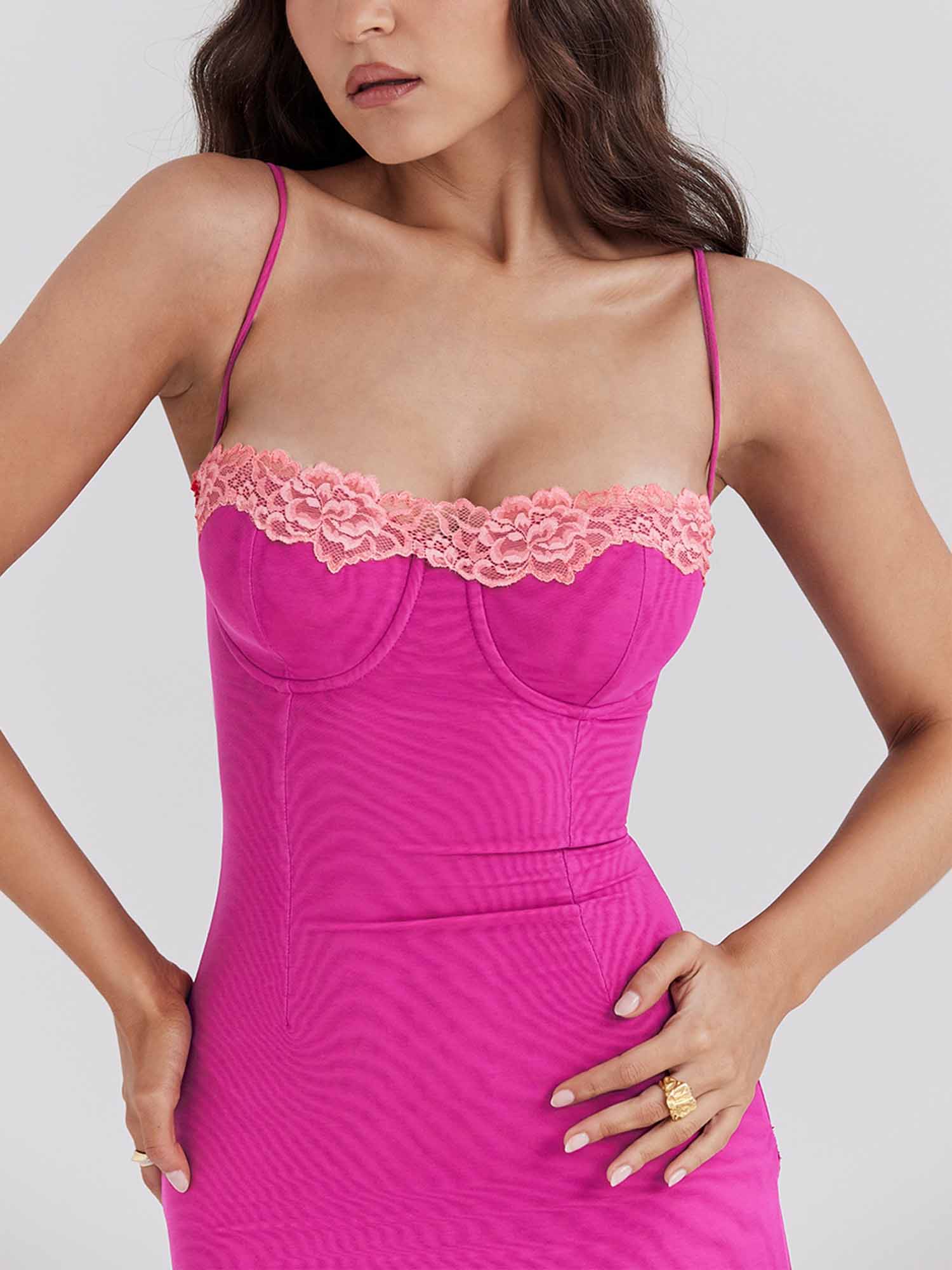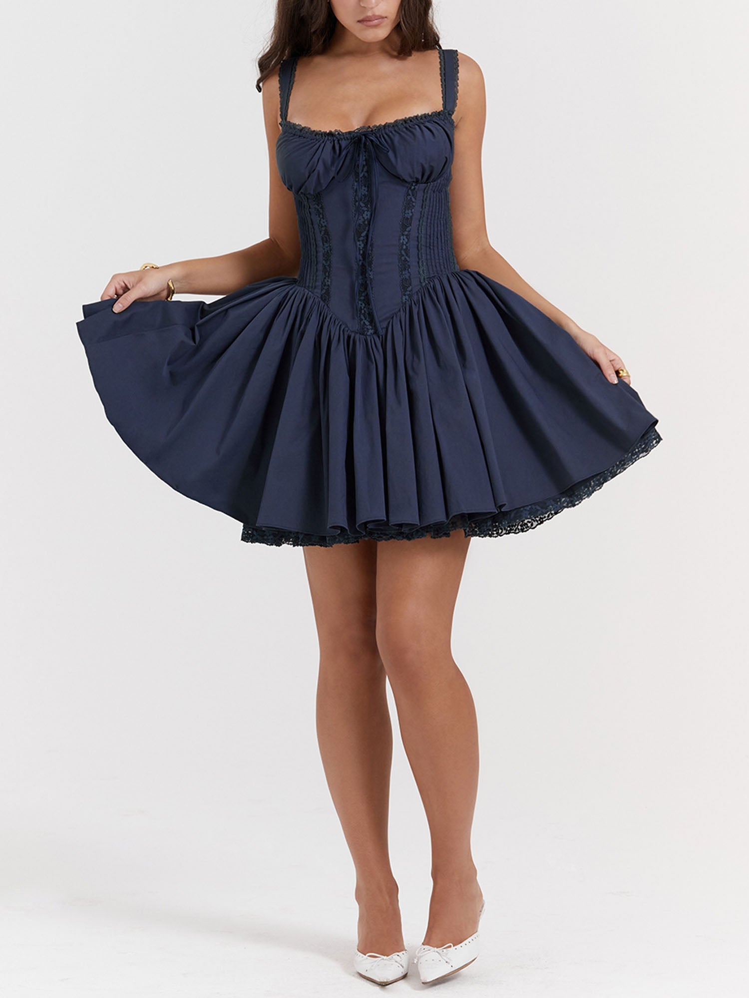 Lace Long Sleeve Mini Dress with Scalloped Hem