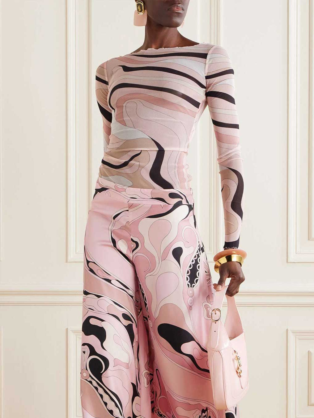 Mesh Long Sleeve Sheer Printed Top