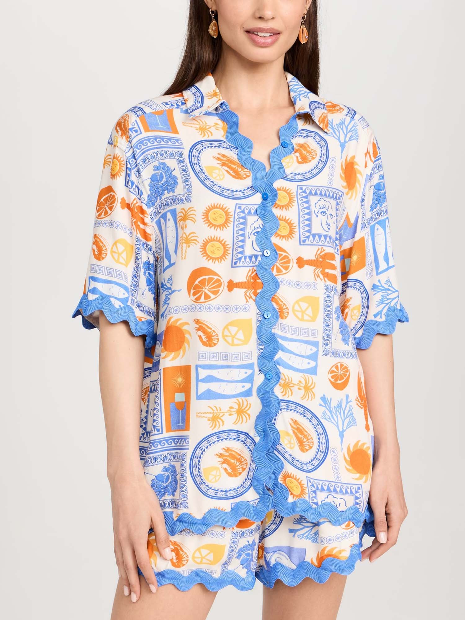 Mediterranean Sun Scalloped Shirt & Shorts Set