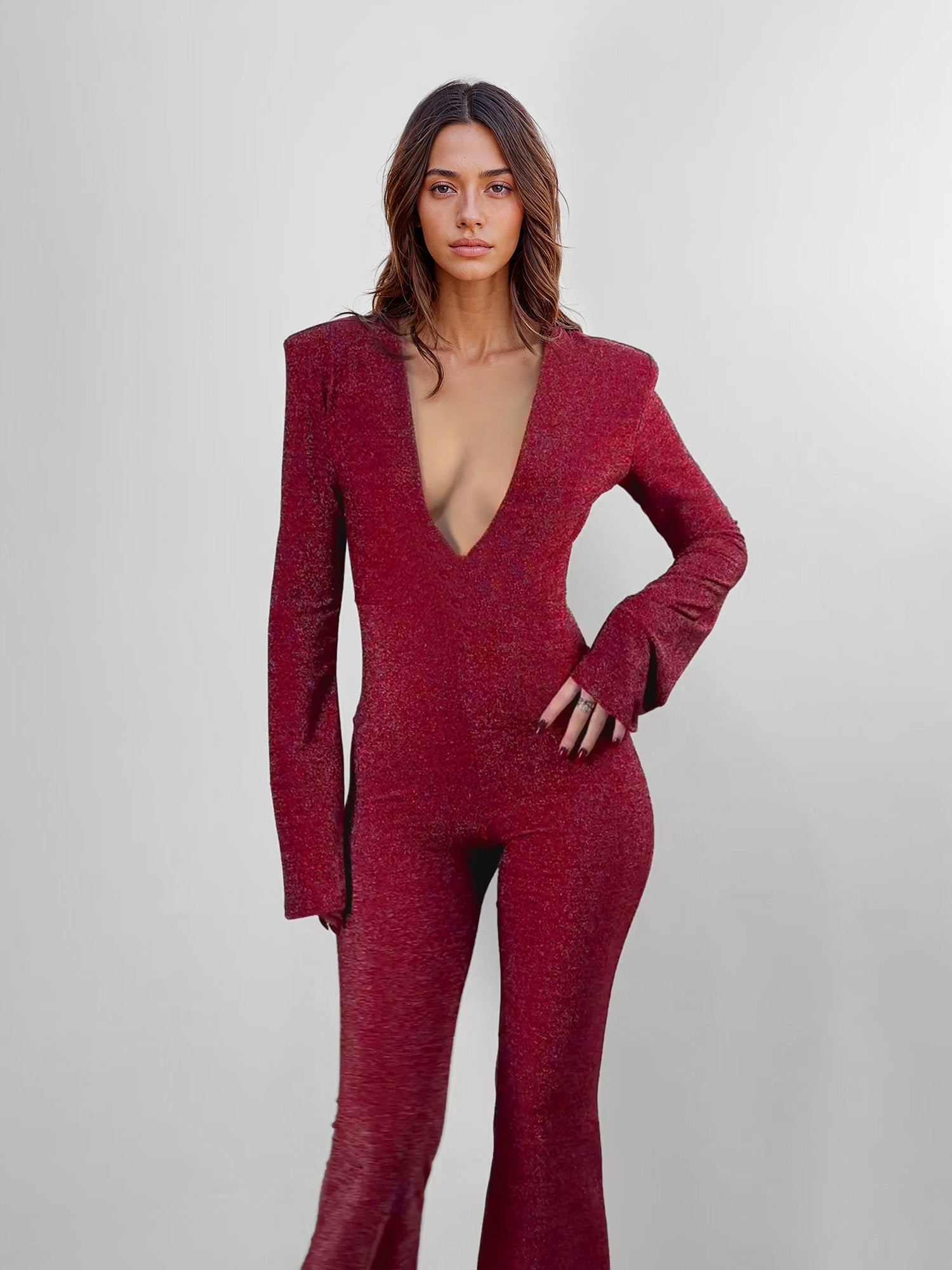Metallic Shimmer Plunge Dress