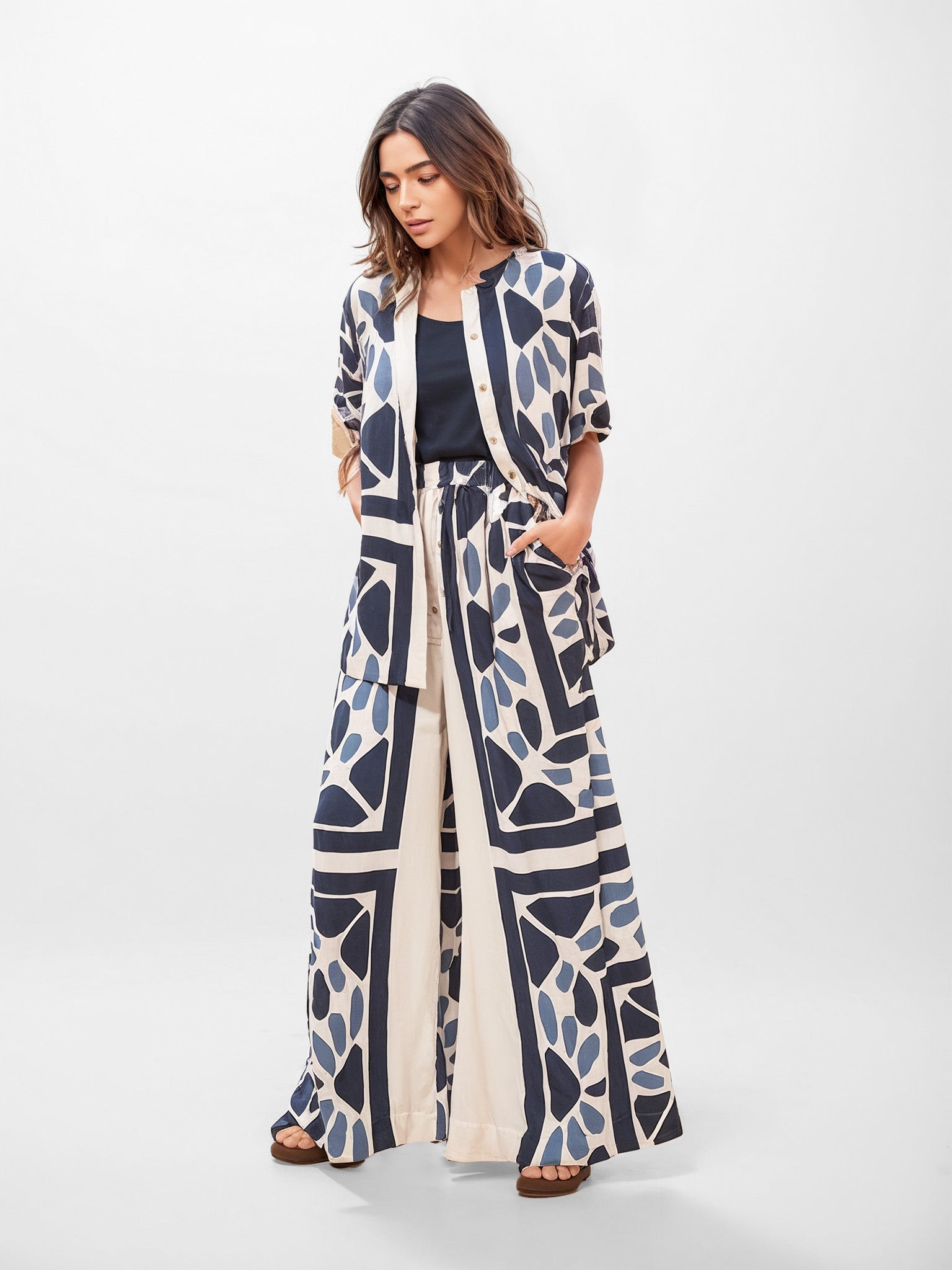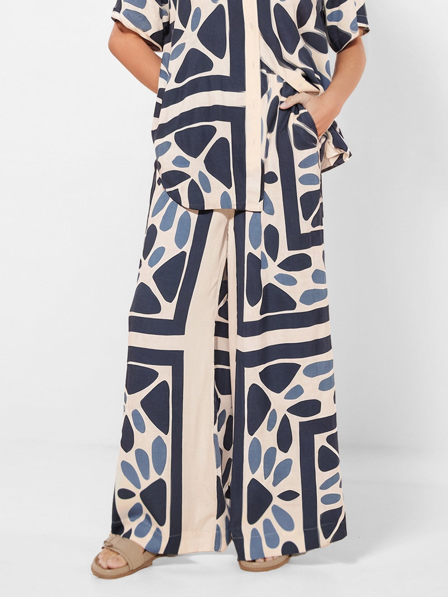 Modern Geo Print Wide-Leg Pants
