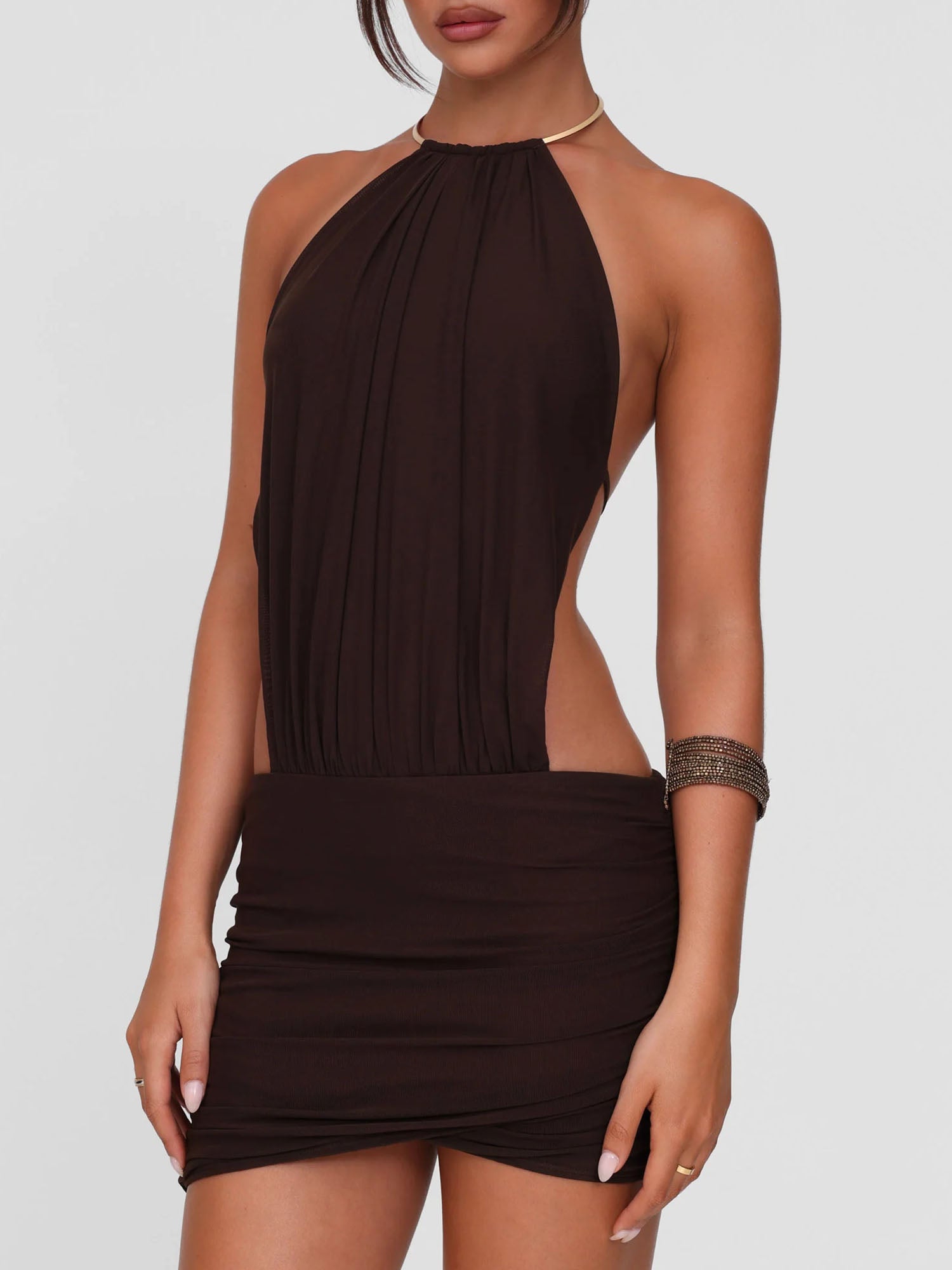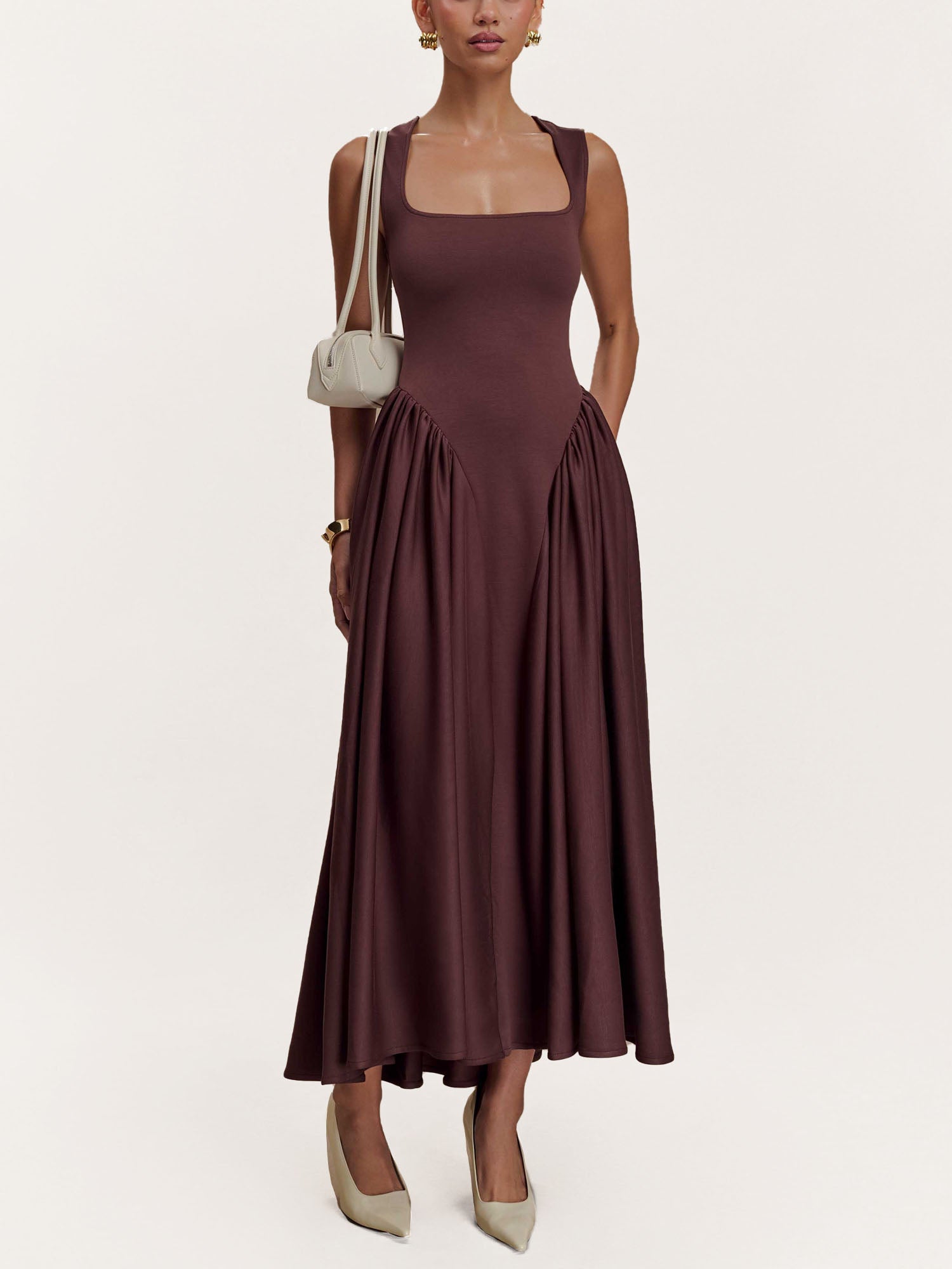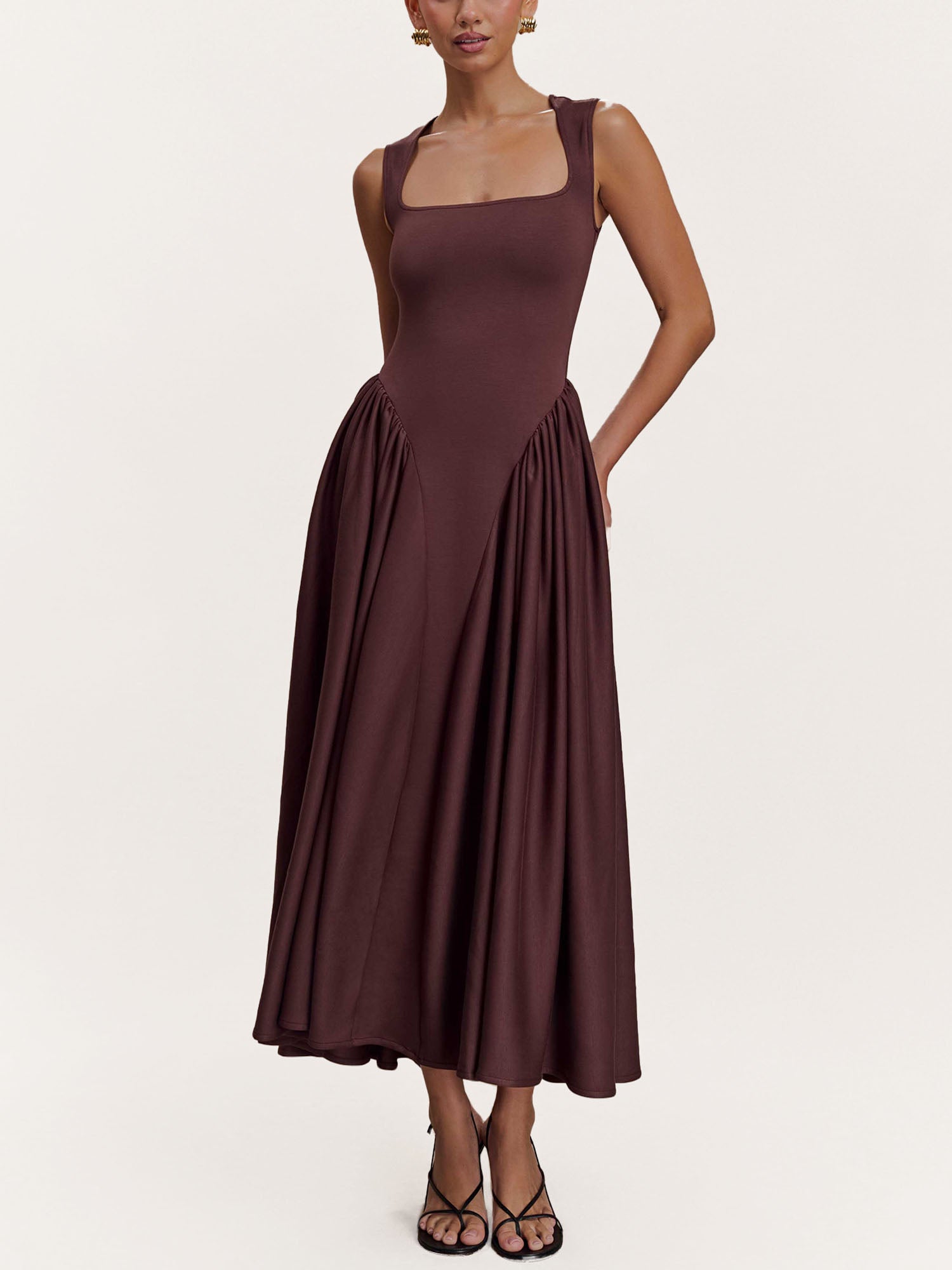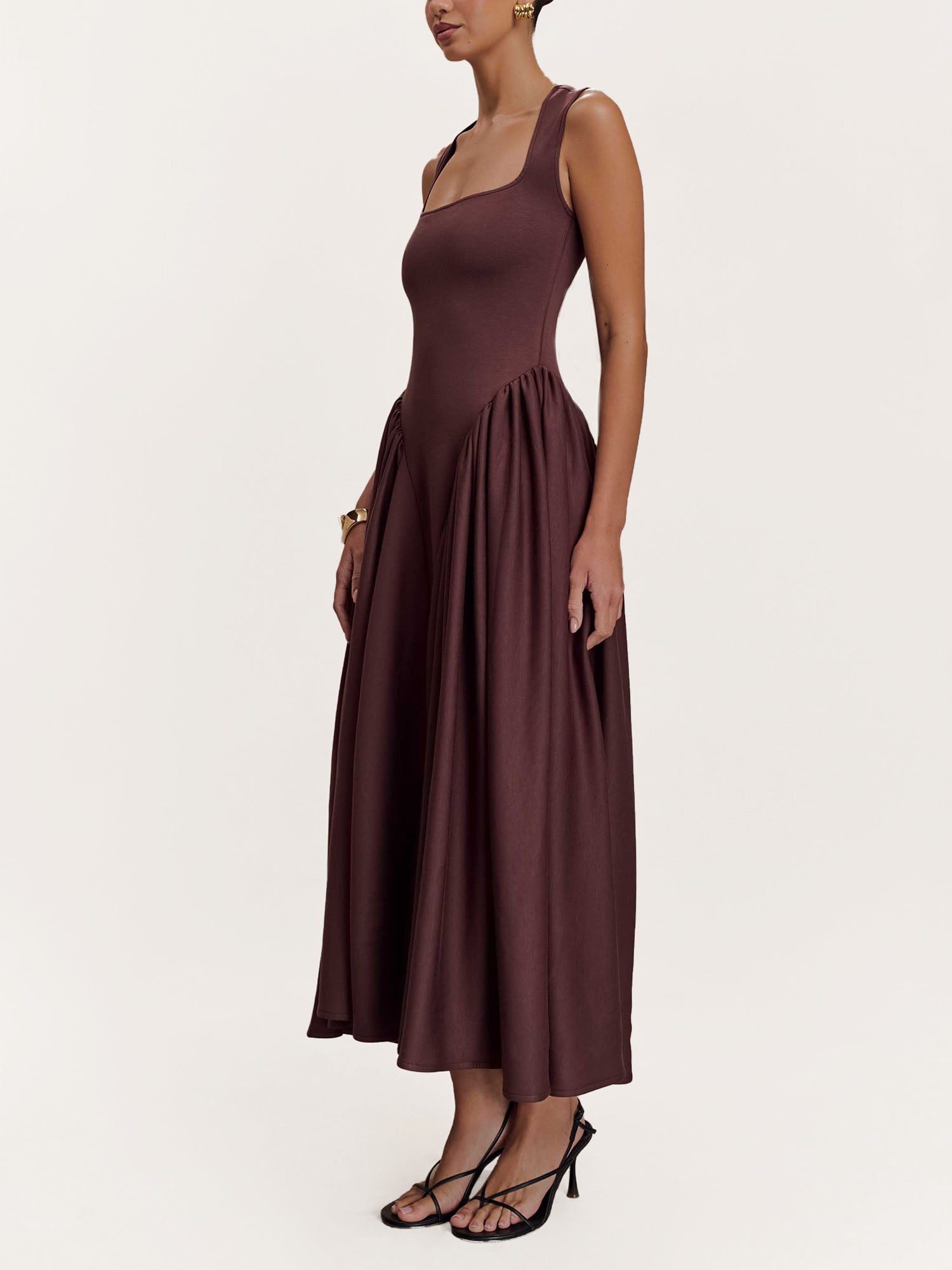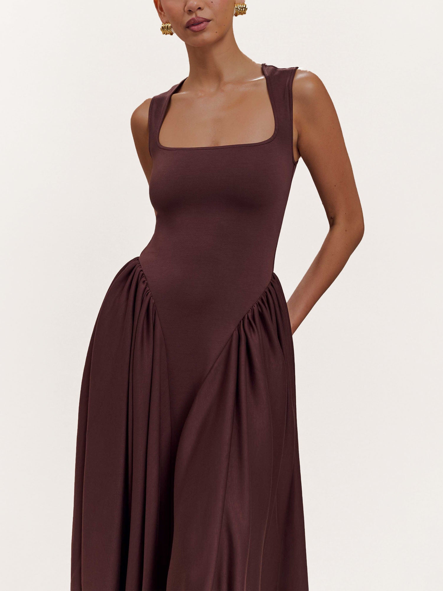 Mocha Sculpted Drape Midi Dress