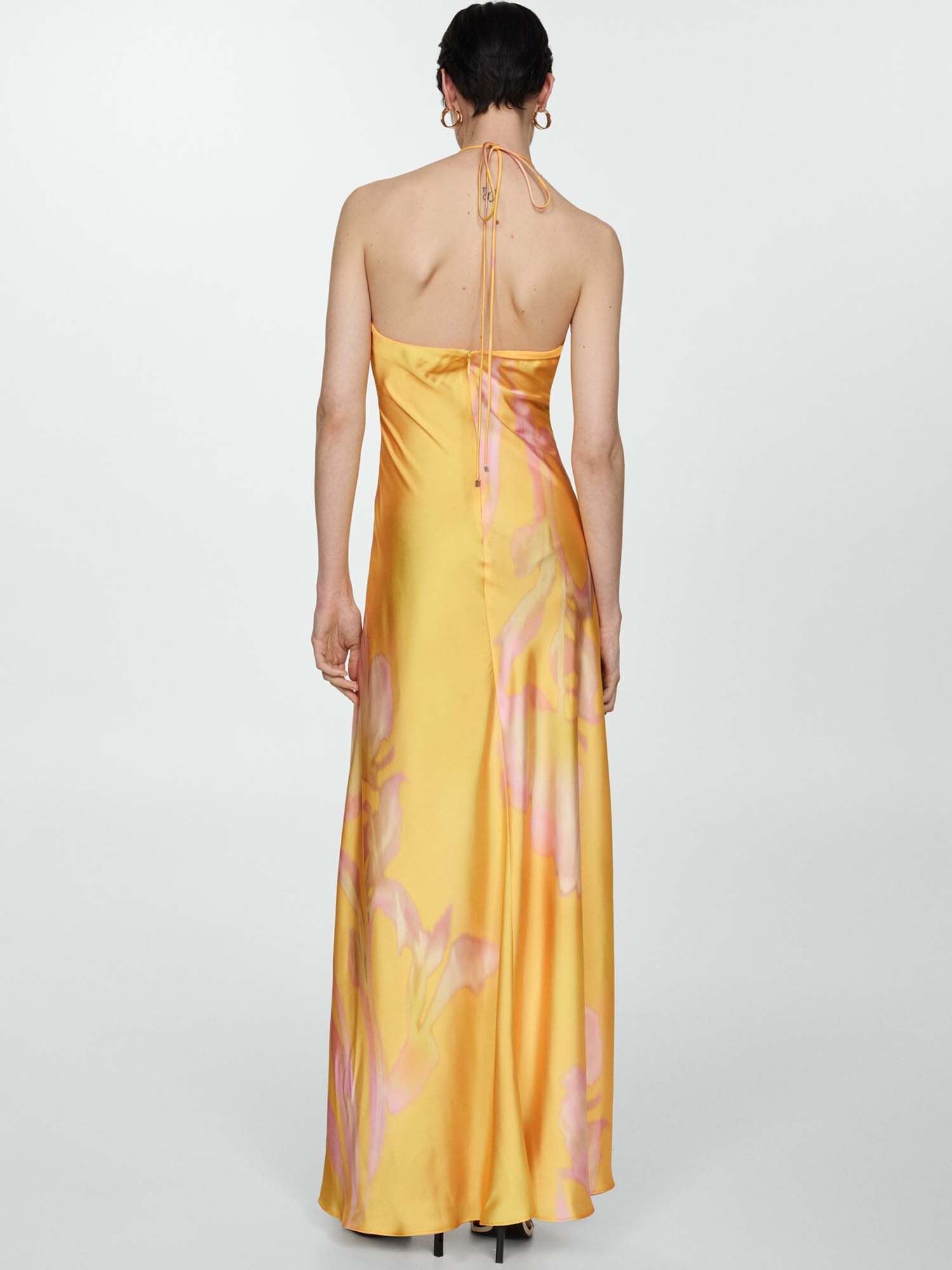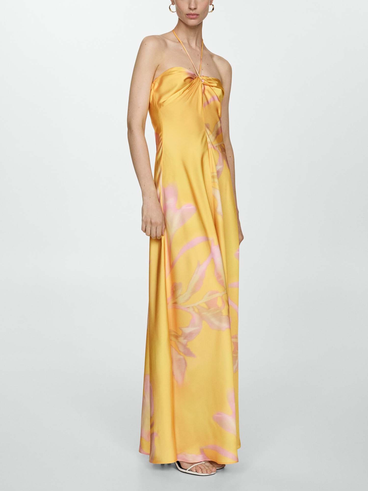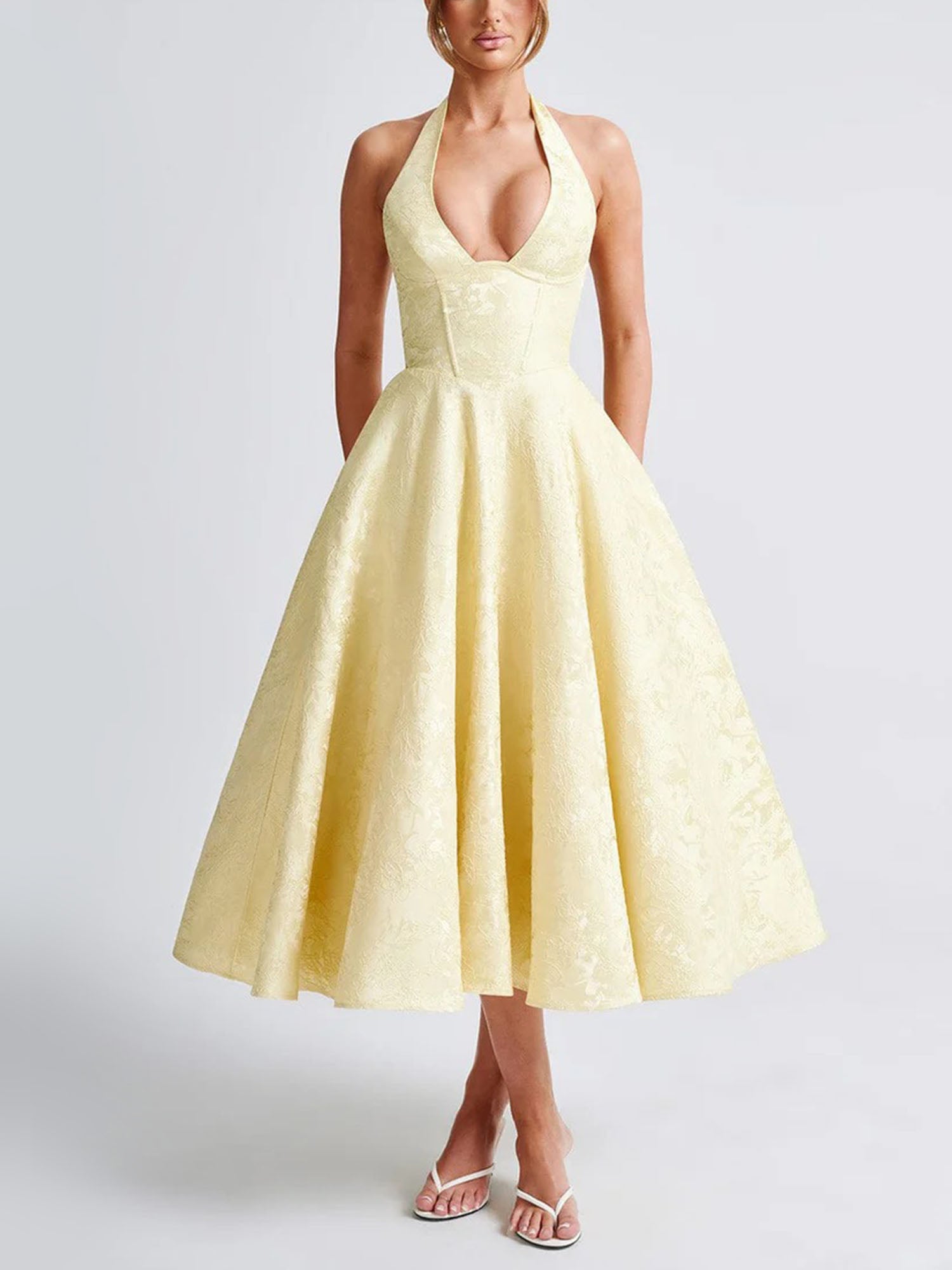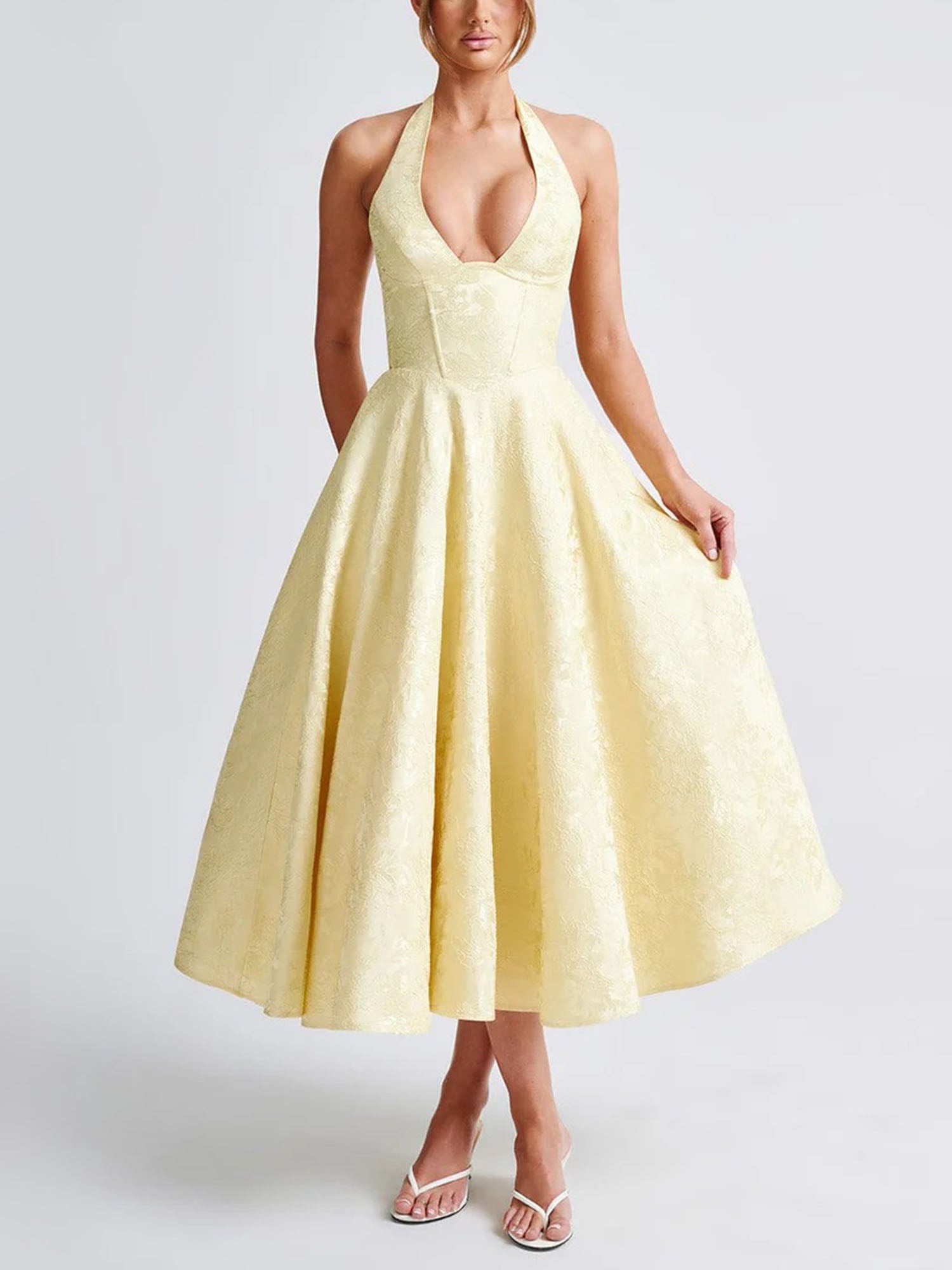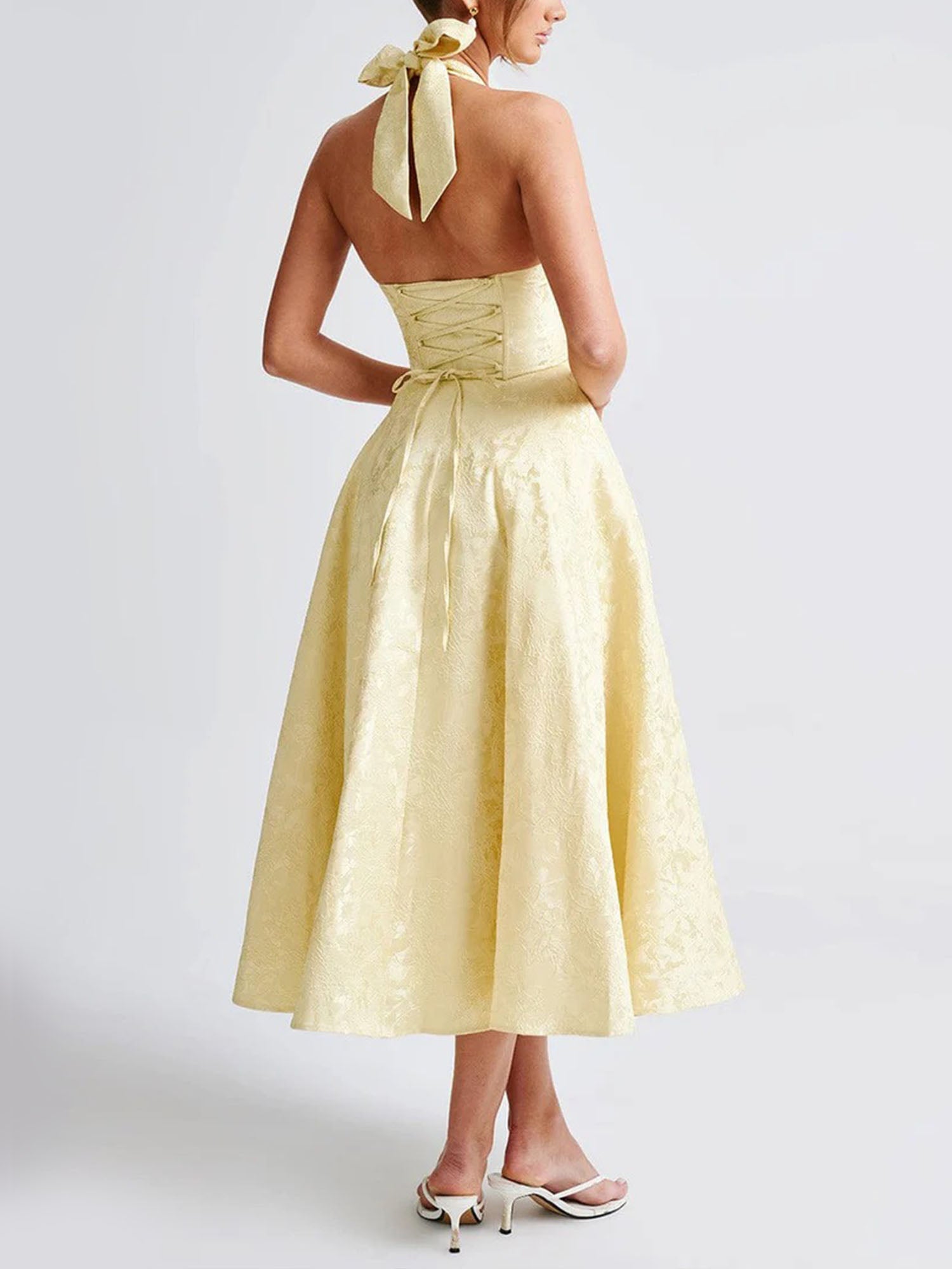 Yellow Draped Halter Maxi Dress Sheer Elegance