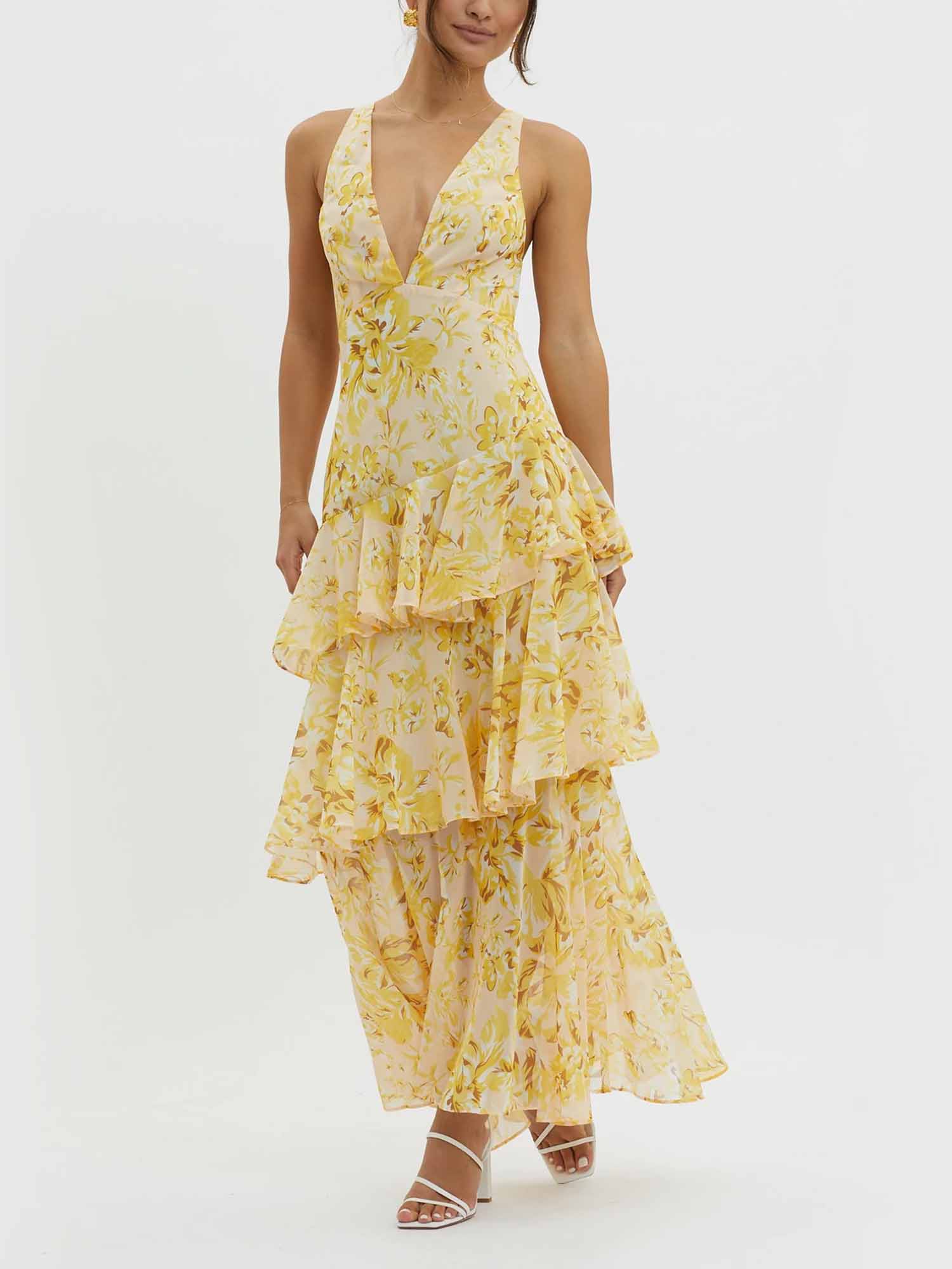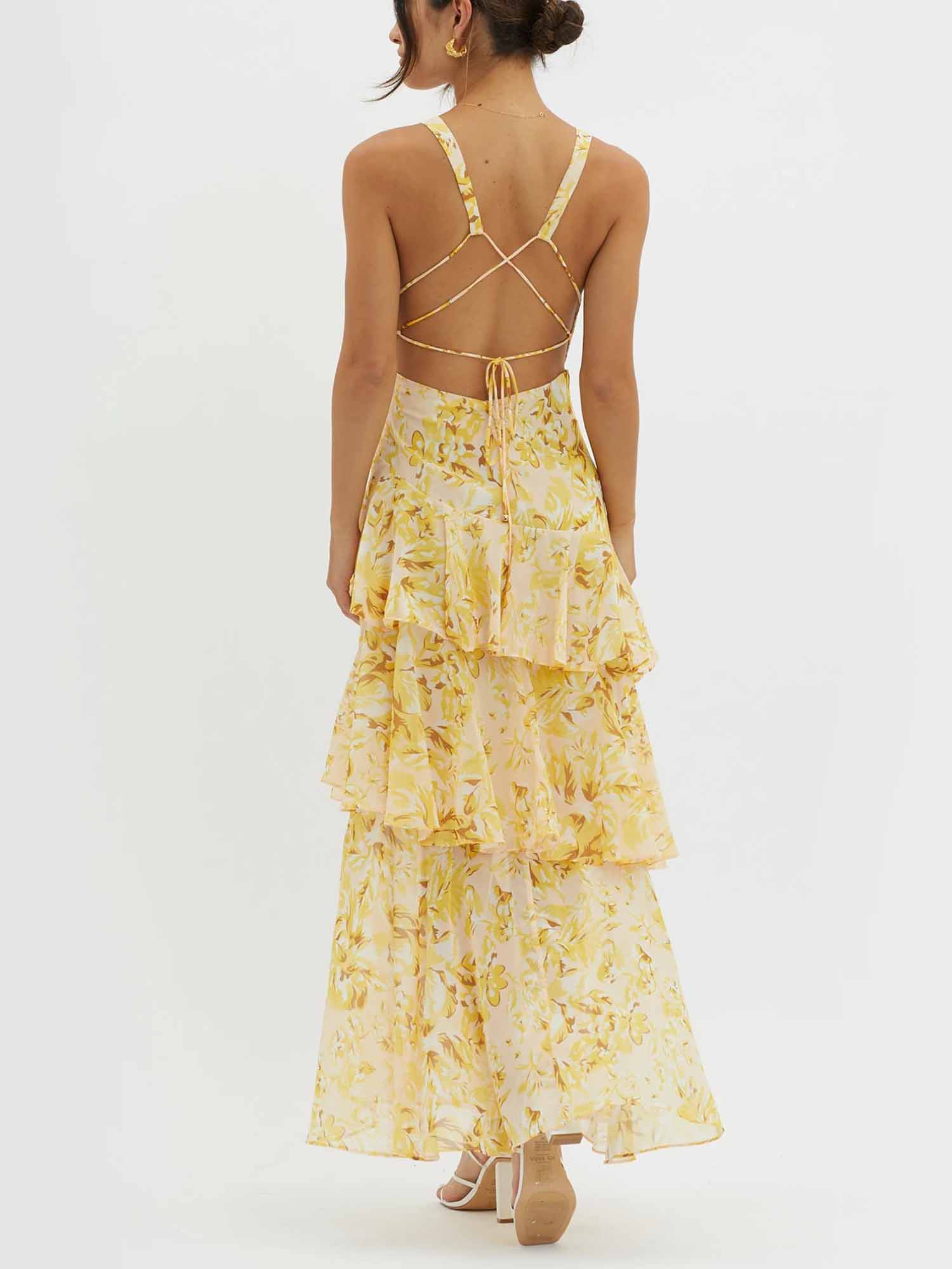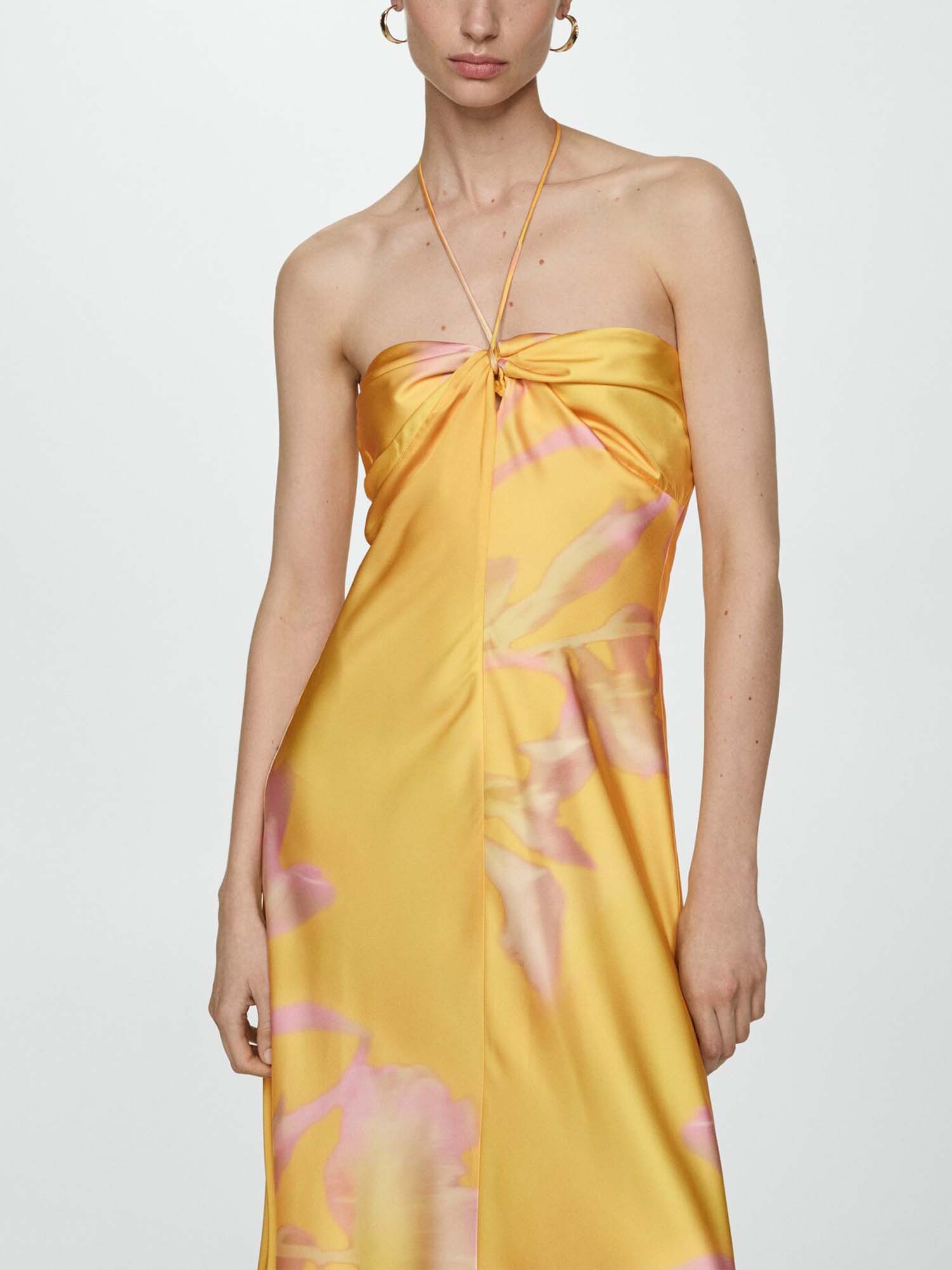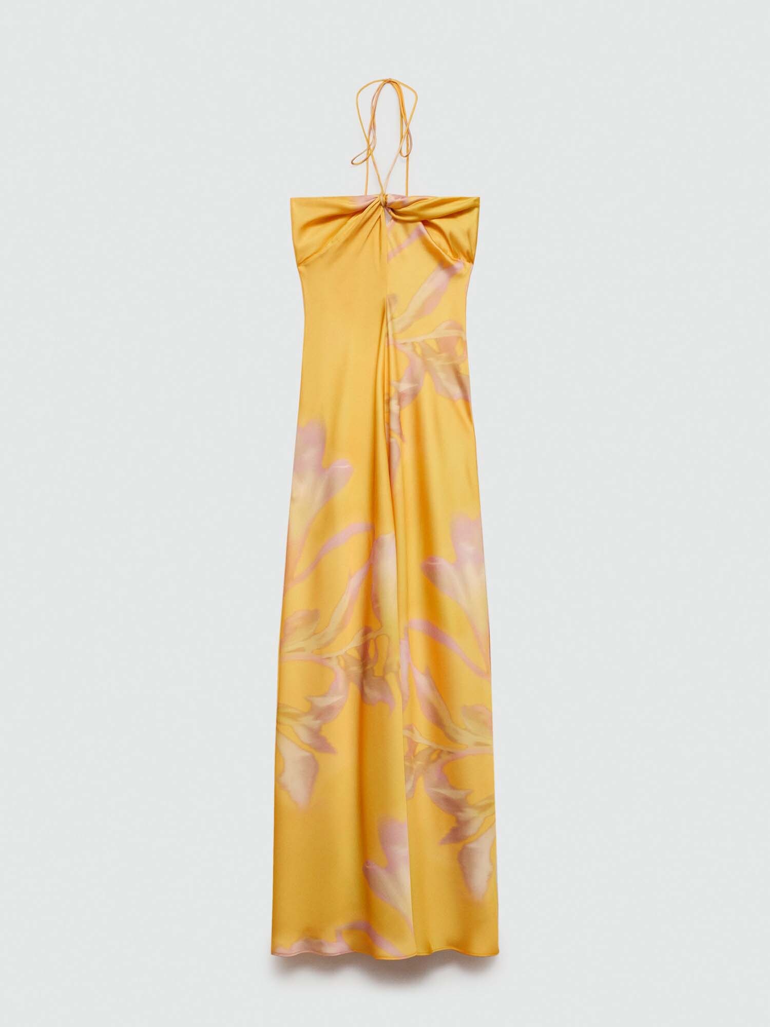 Yellow Draped Halter Maxi Dress Sheer Elegance