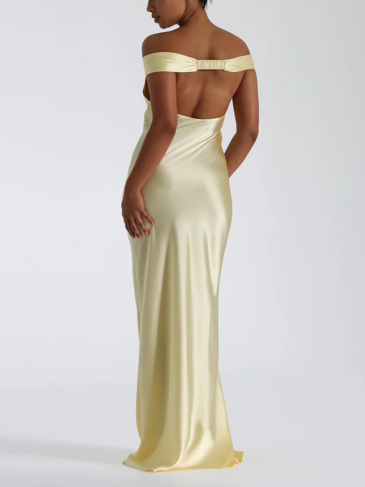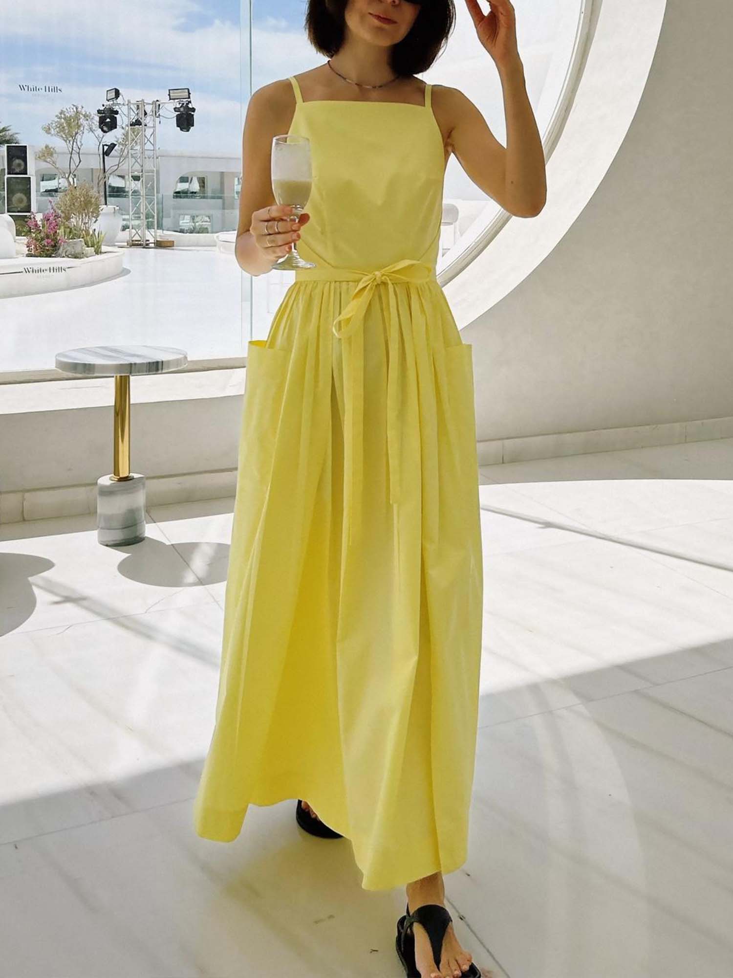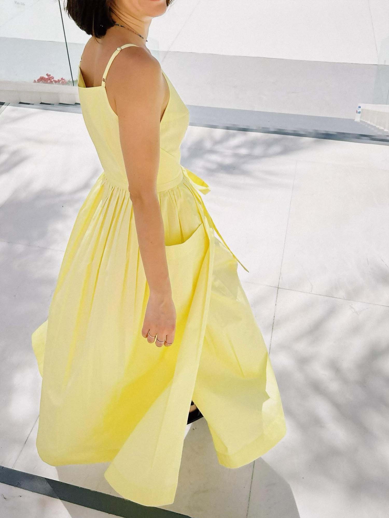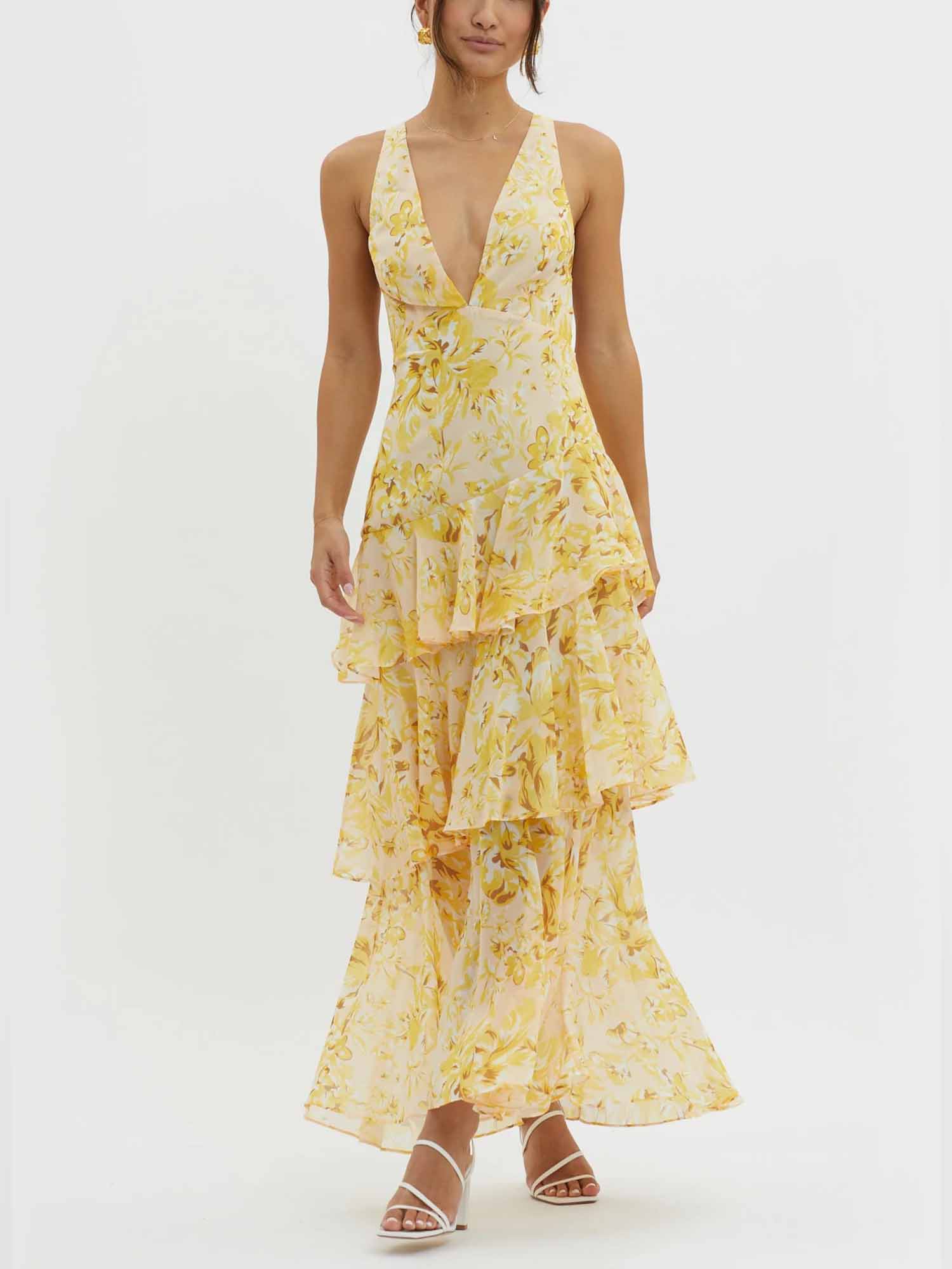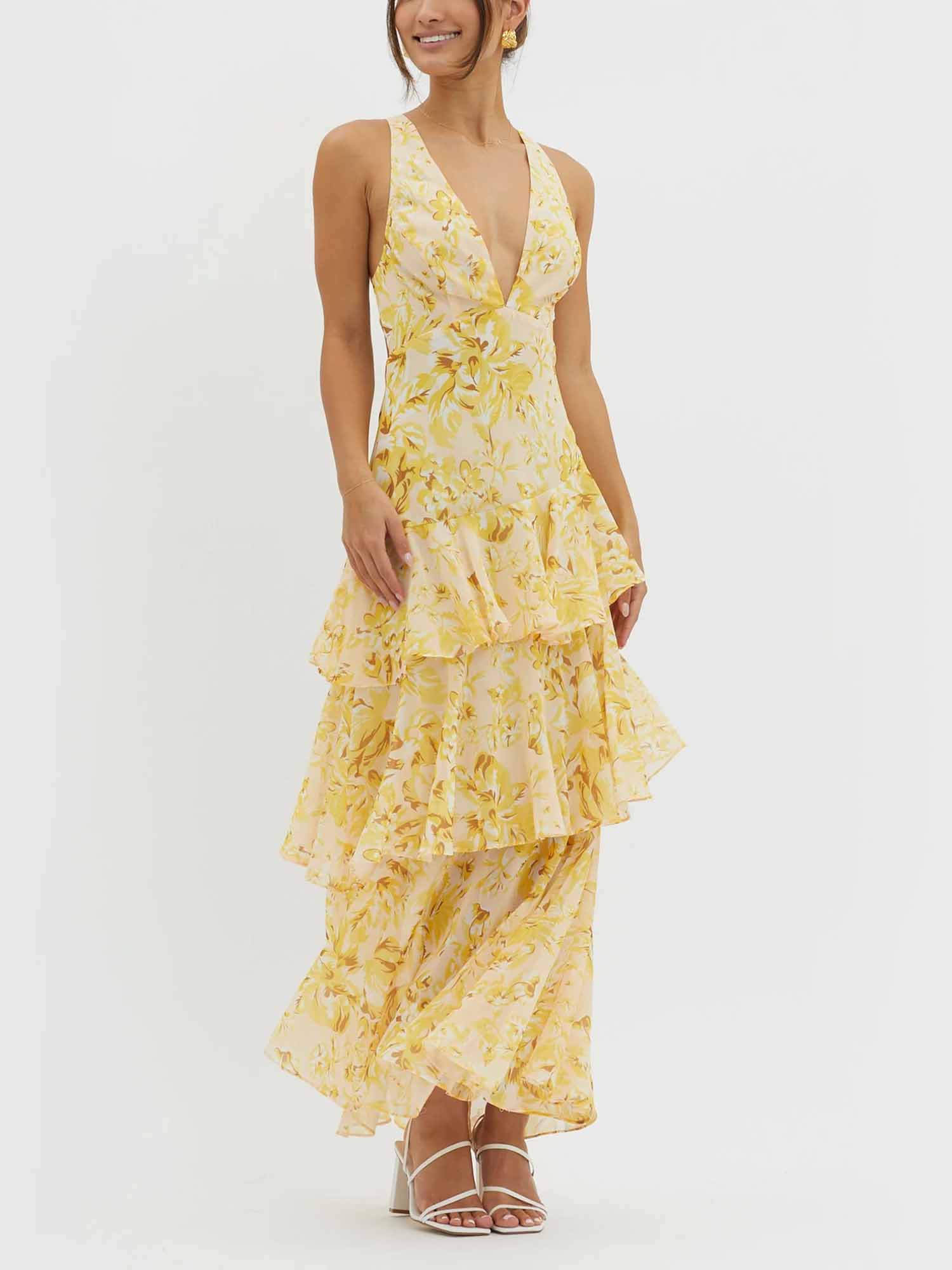 Yellow Draped Halter Maxi Dress Sheer Elegance