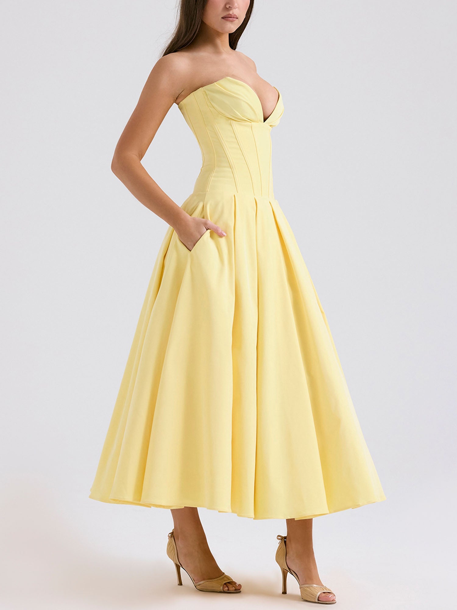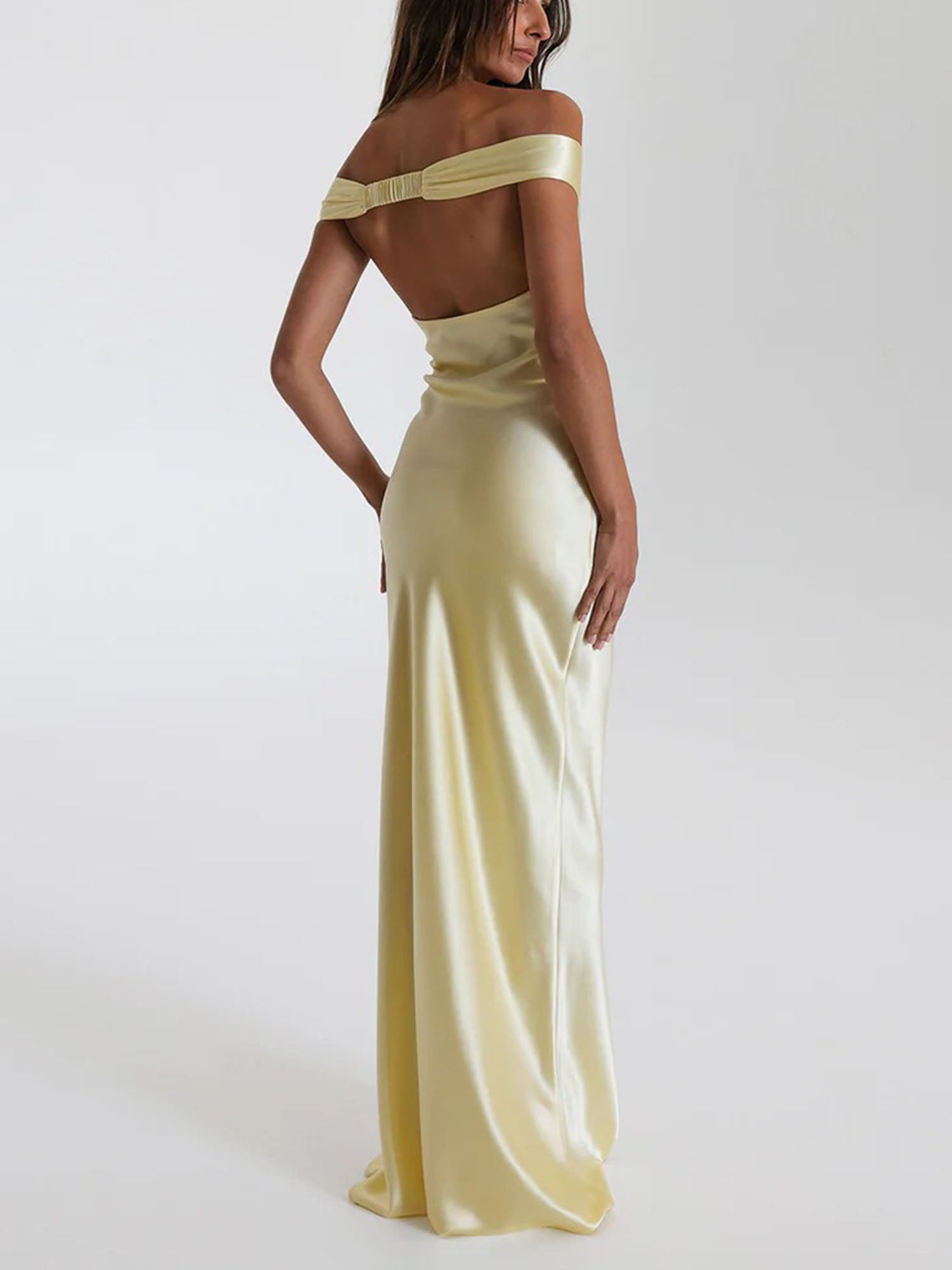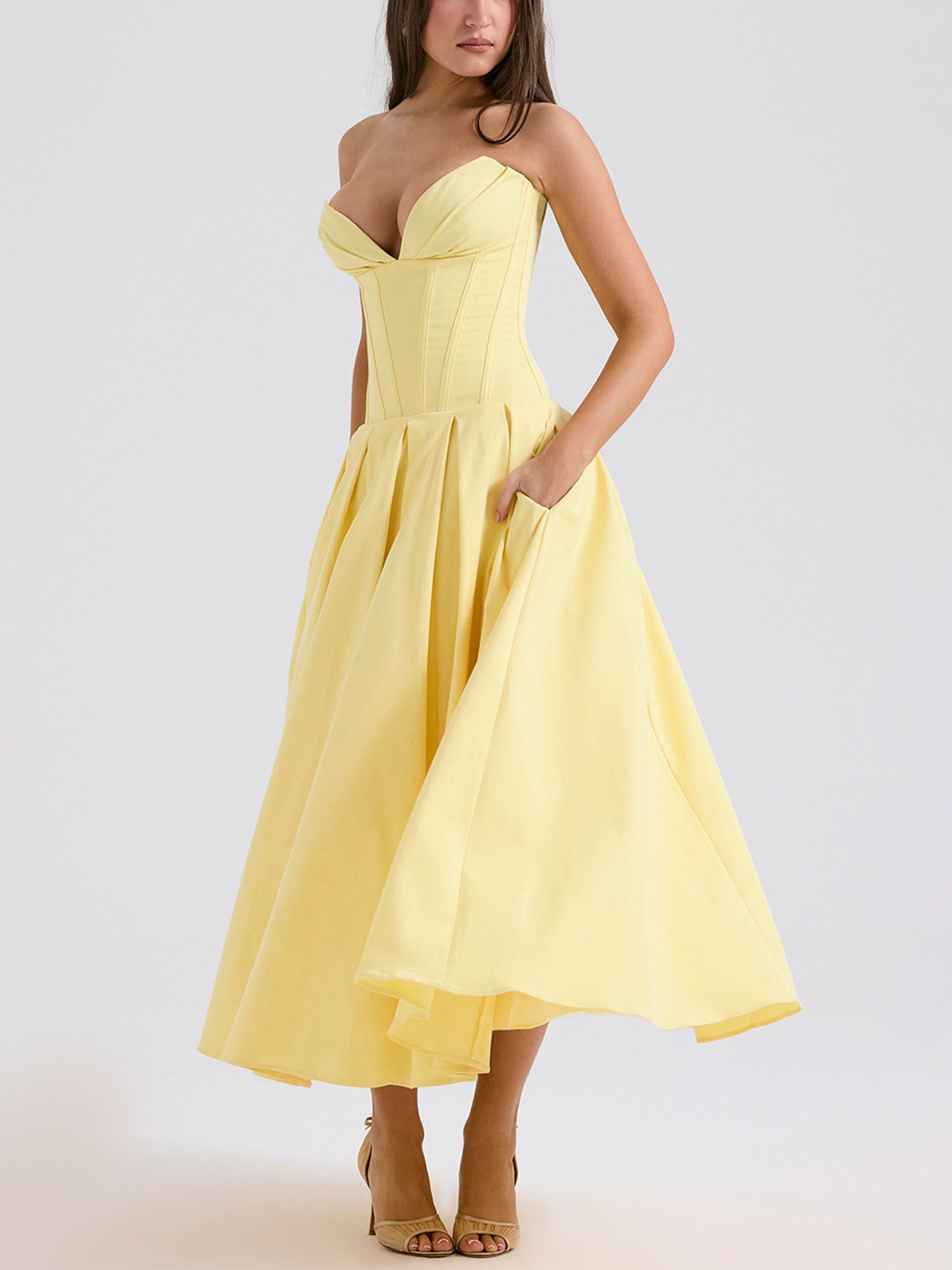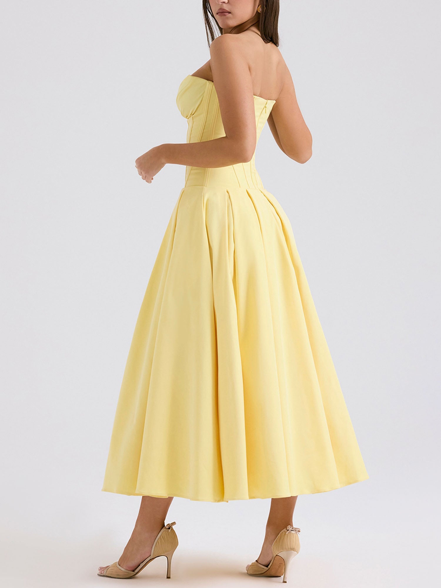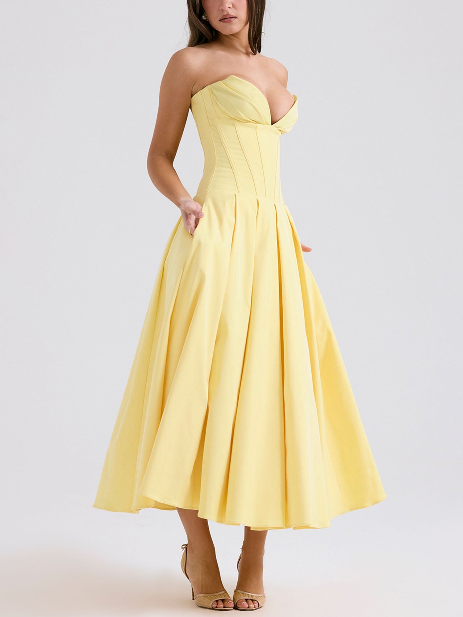 Yellow Draped Halter Maxi Dress Sheer Elegance