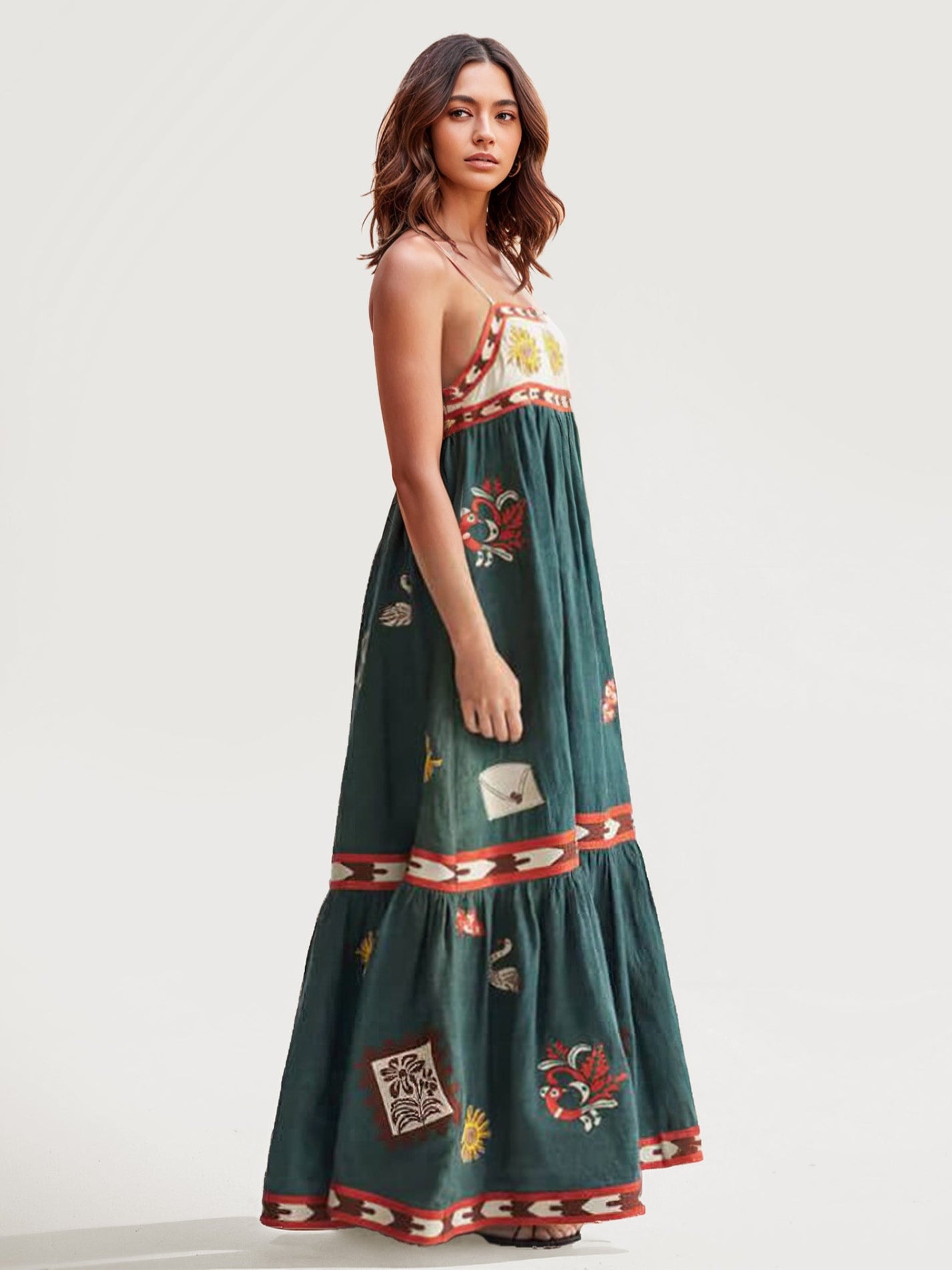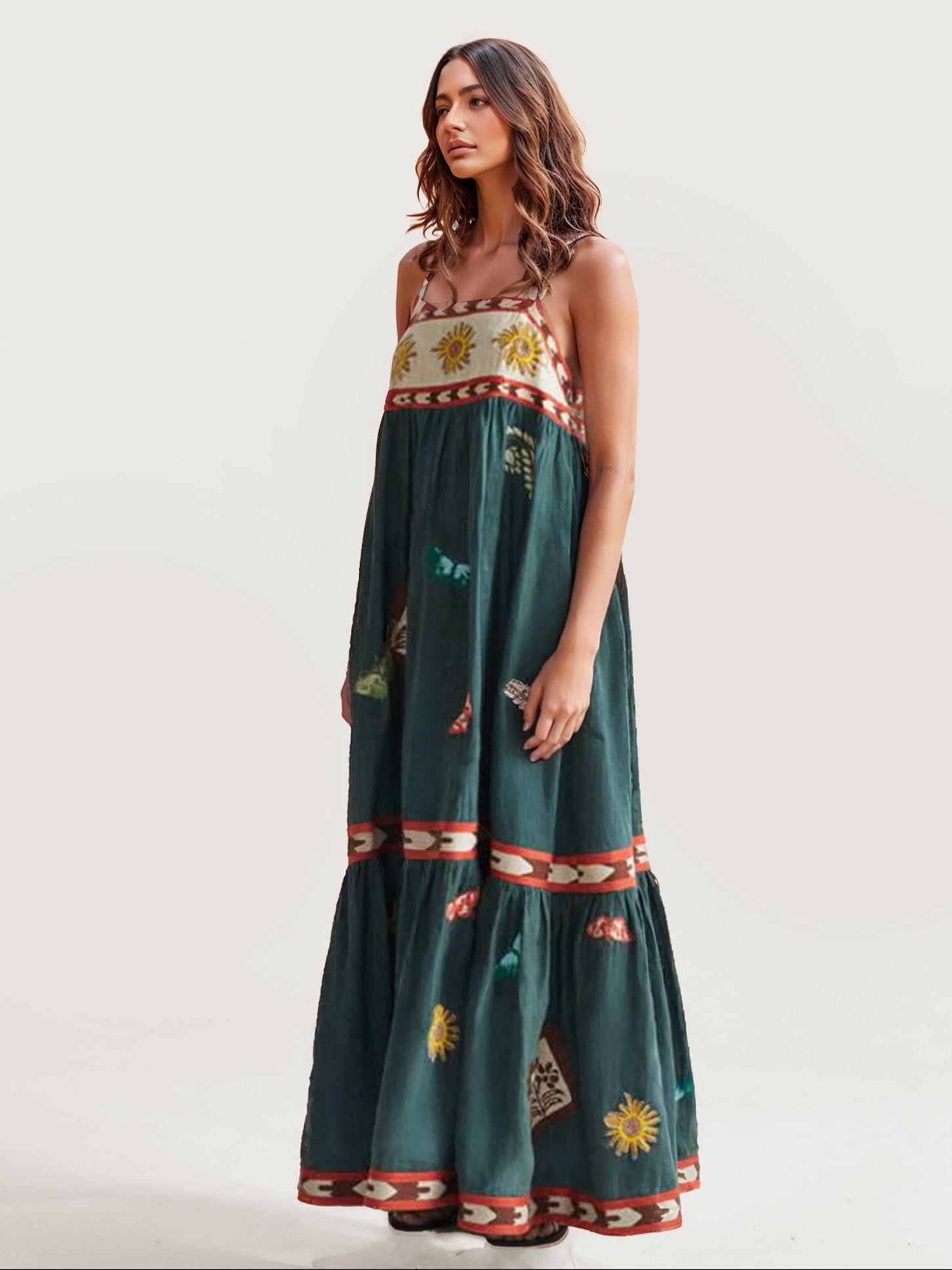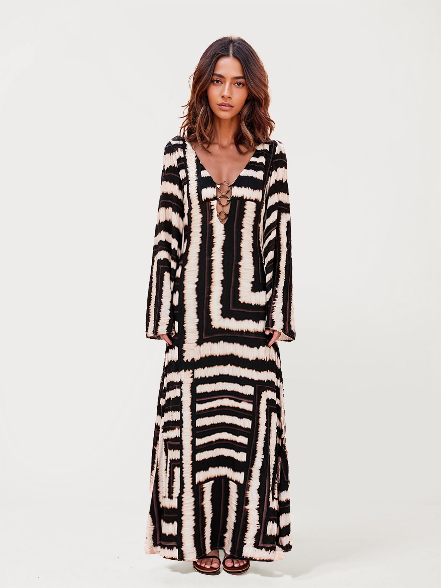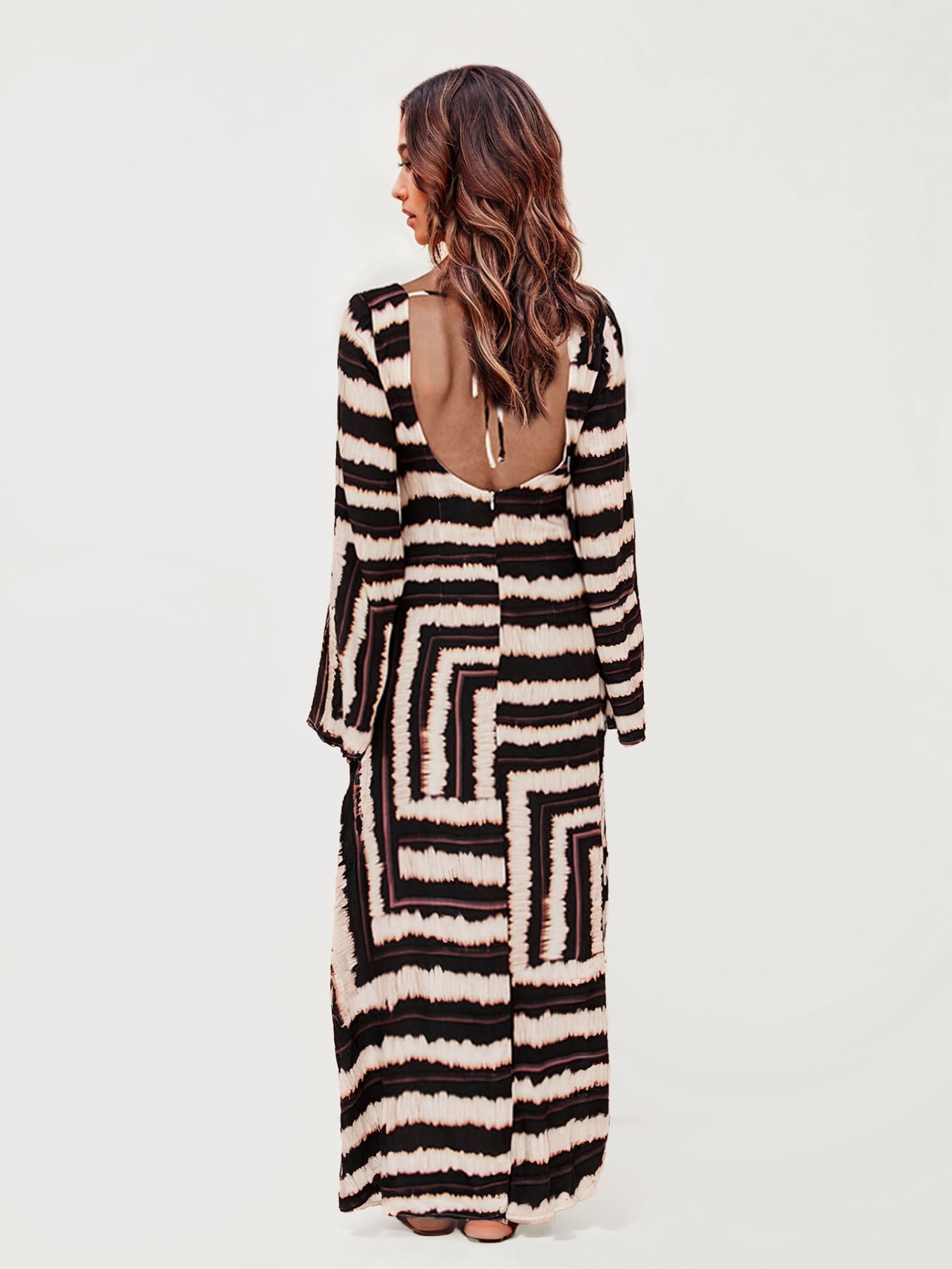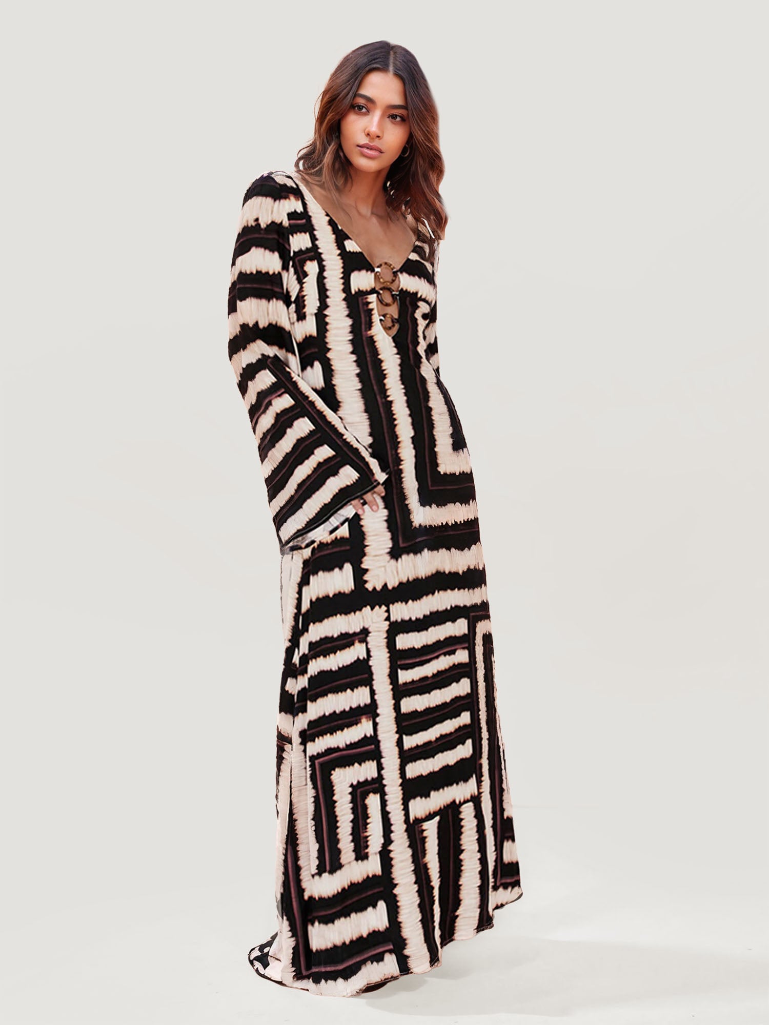 Bohemian Stripe Pattern V-Neck Maxi Dress