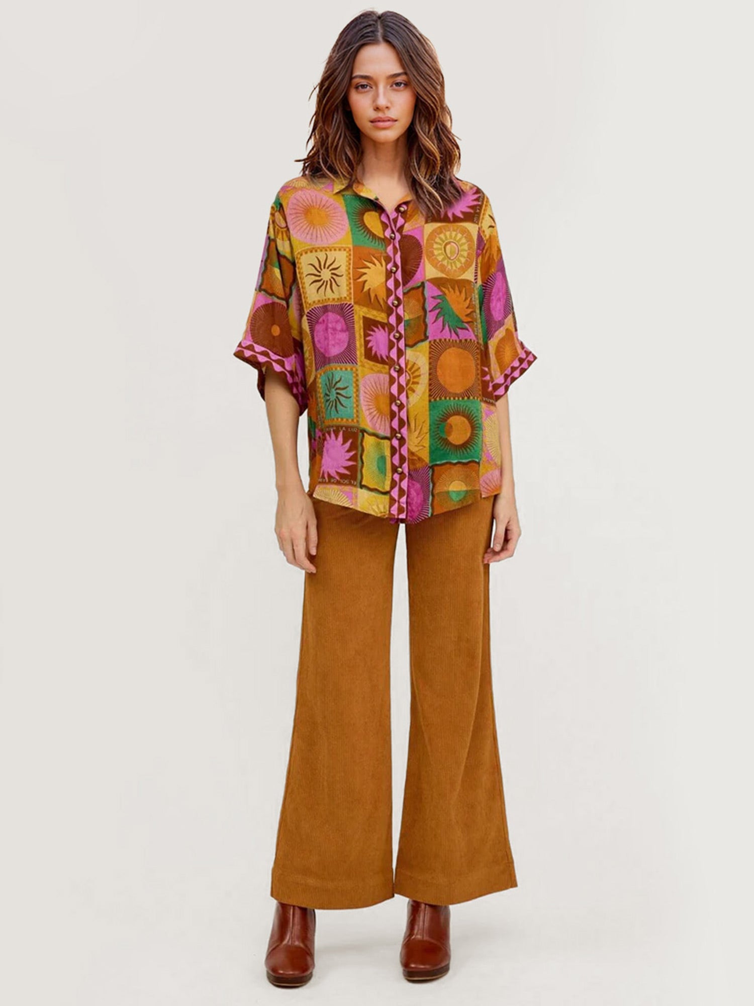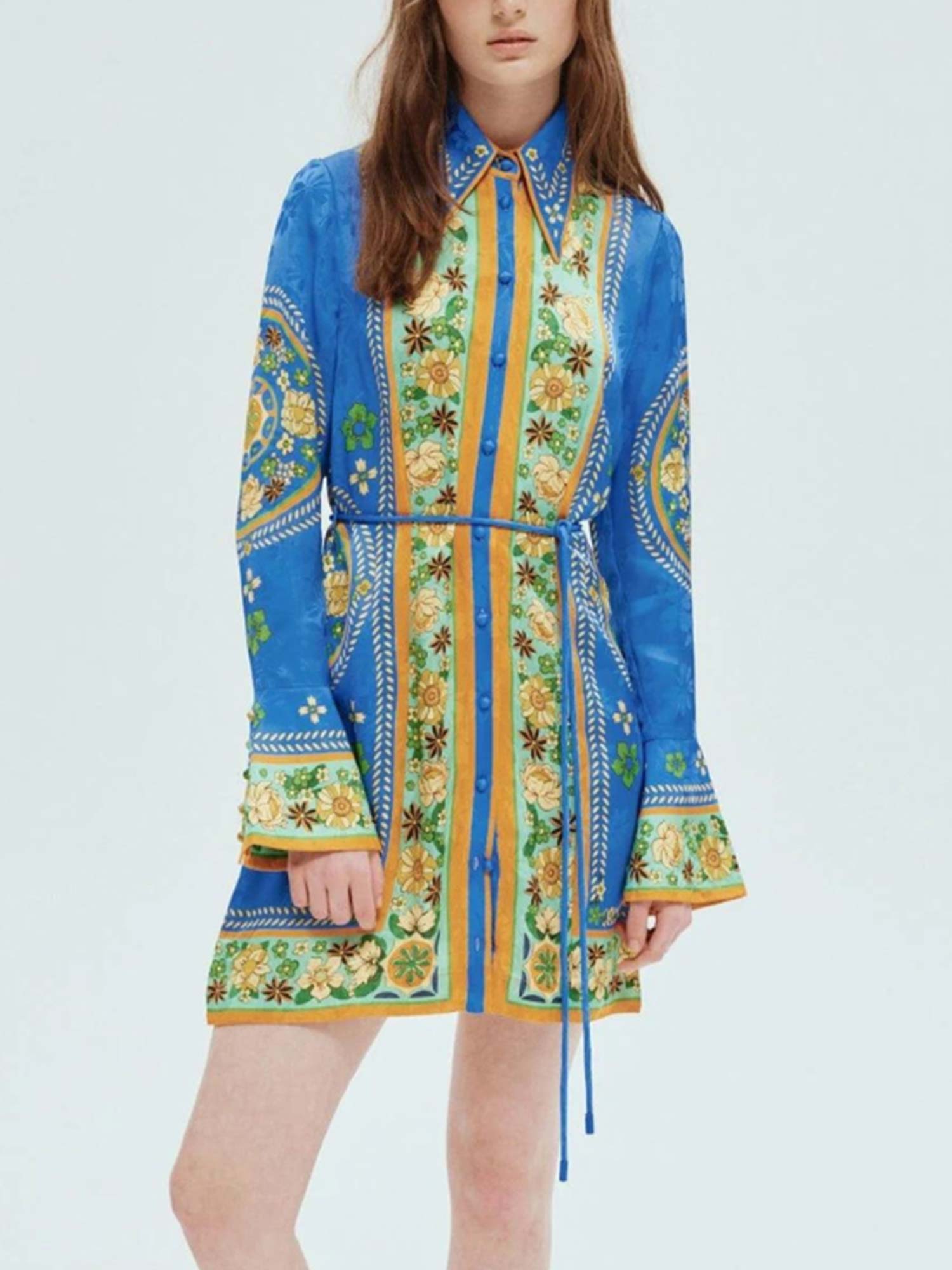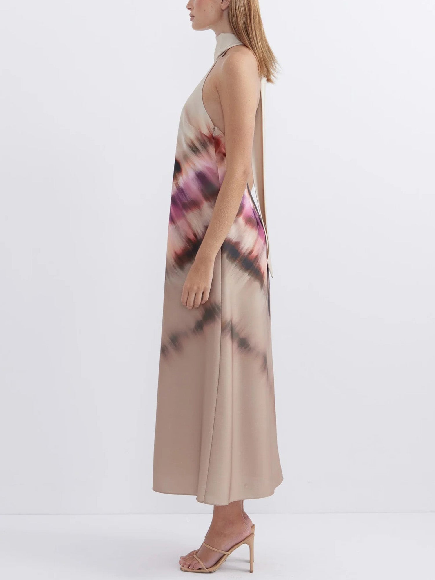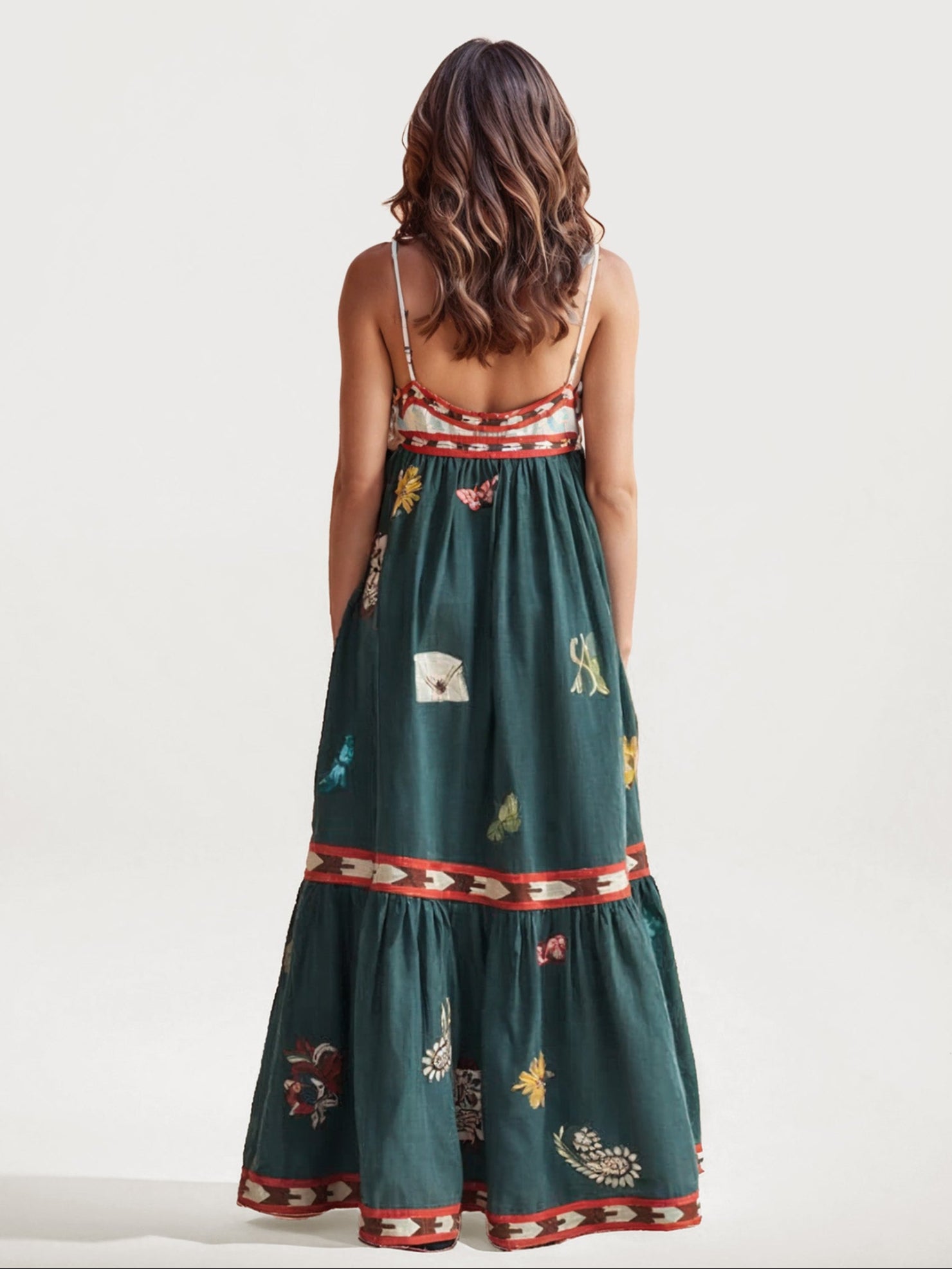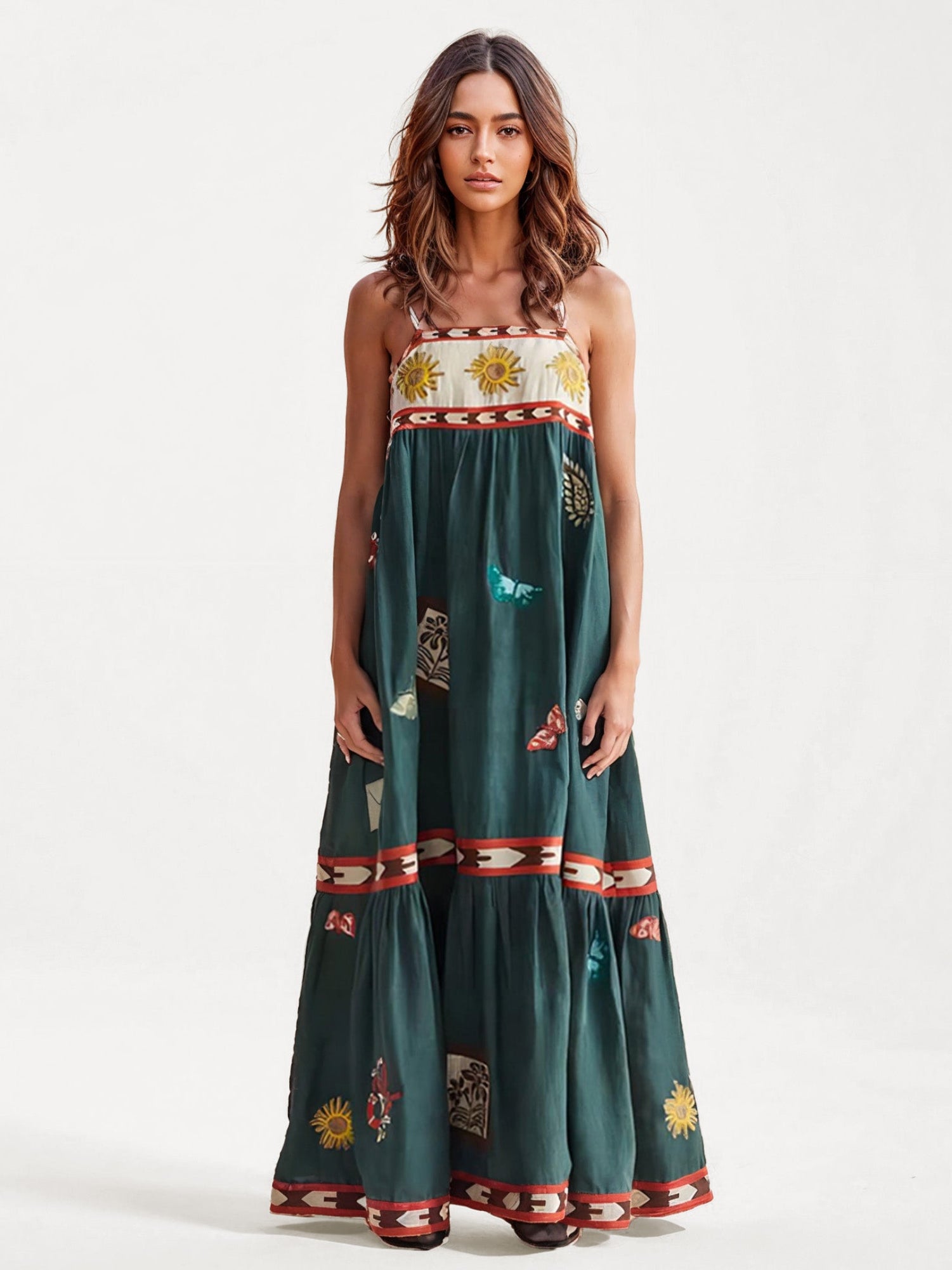 Bohemian Stripe Pattern V-Neck Maxi Dress