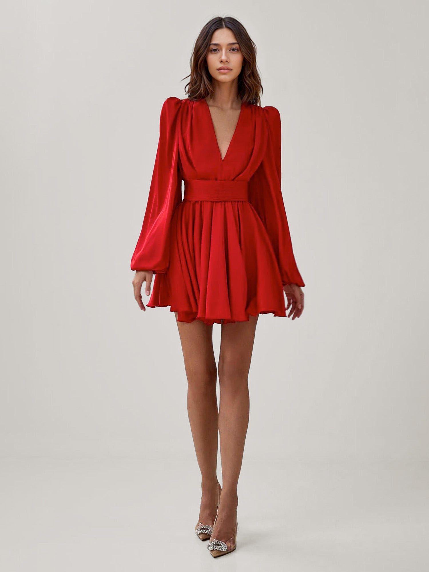 This Flared Sleeve Red Mini Dress combines fun with elegance. Featuring dramatic flared sleeves and a flattering fit-and-flare silhouette, this dress is a great choice for parties or an evening out with friends.