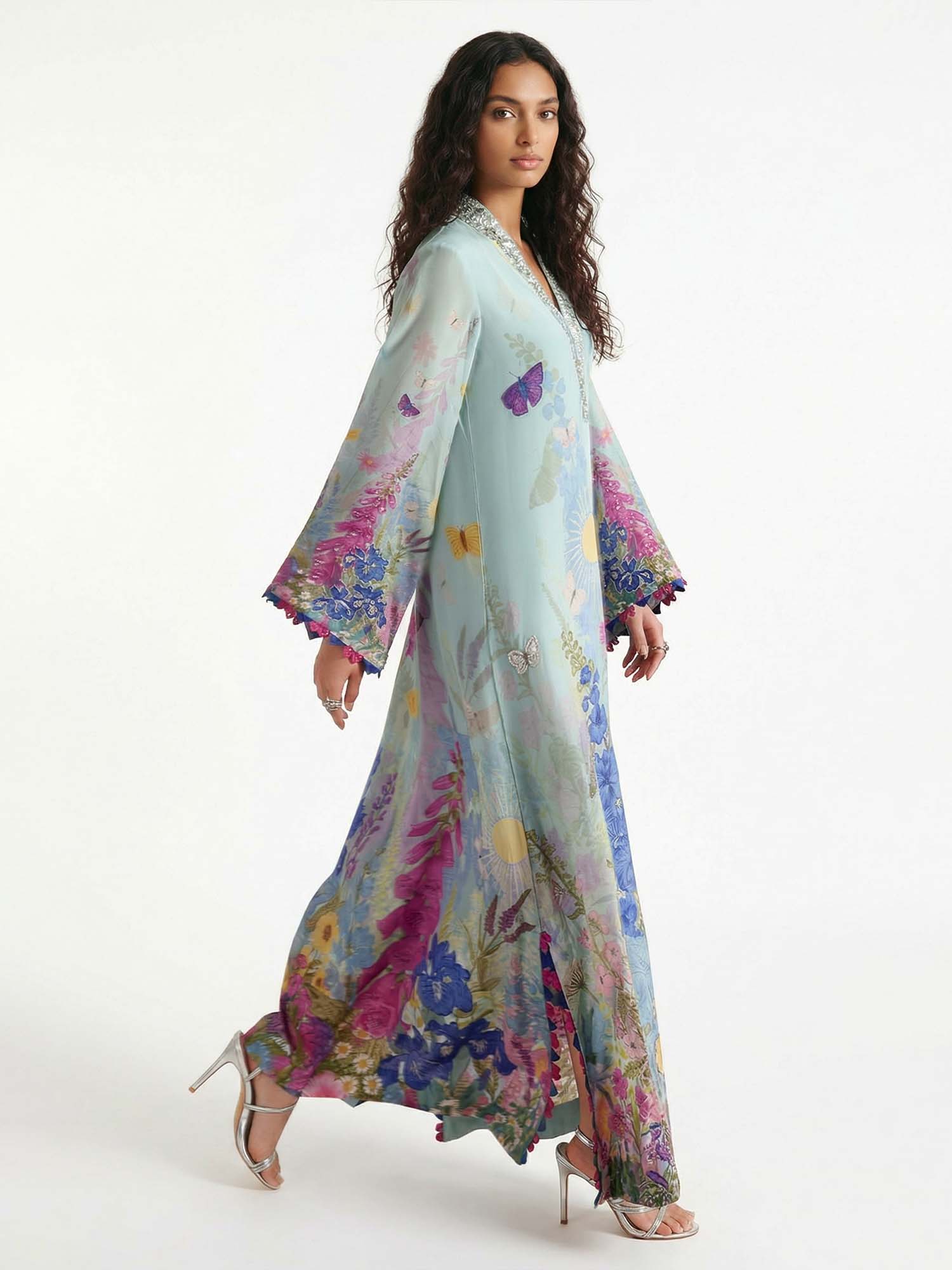 The Green Floral Plunge Maxi Dress combines elegance with a touch of drama, featuring a deep plunge neckline and soft, flowing fabric. Its floor-length design and delicate floral print make it perfect for summer weddings, garden parties, or elegant vacation evenings. This dress promises to turn heads wherever you go, offering both style and comfort.