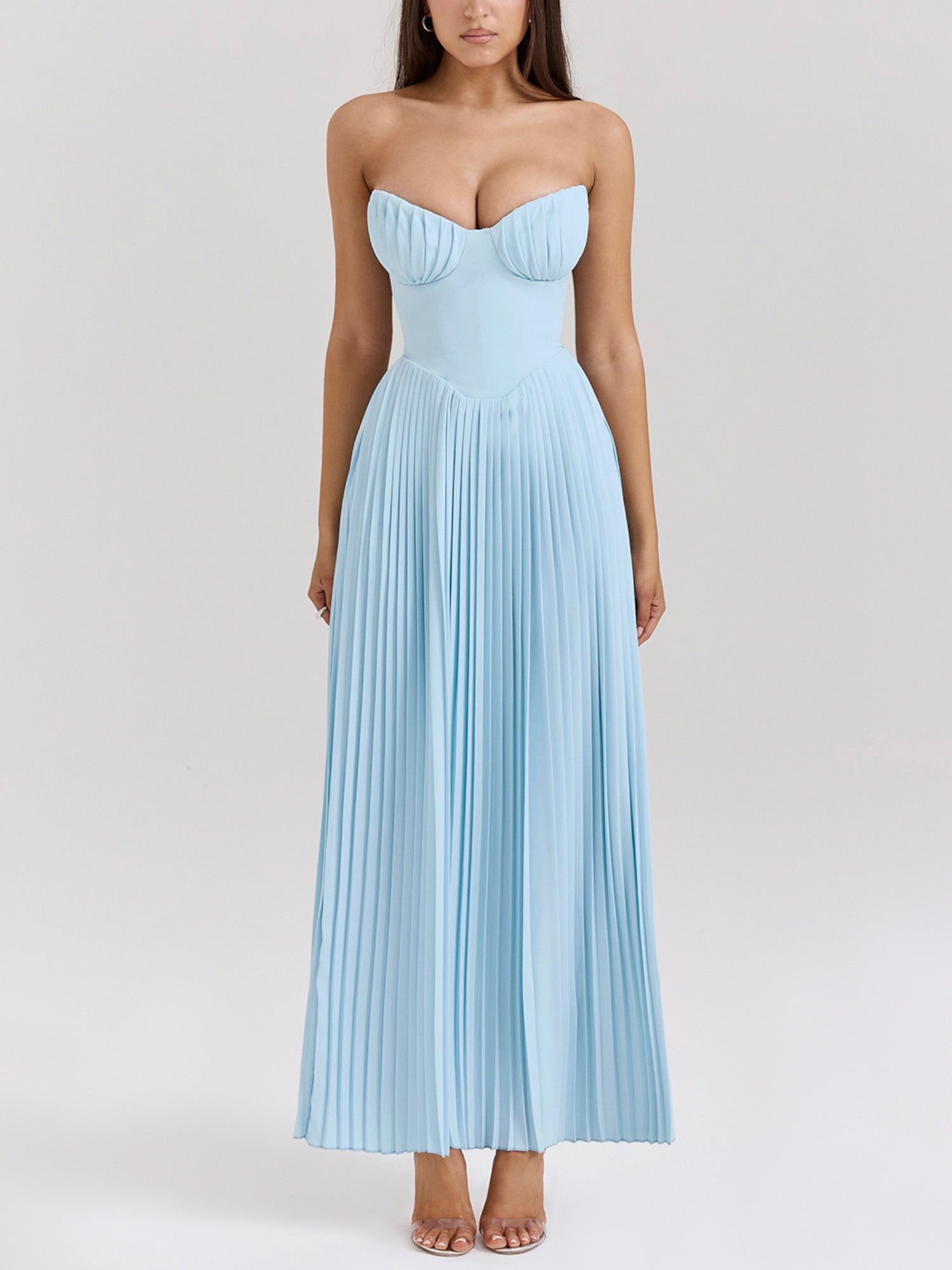 Pleated Strapless Sky Blue Maxi Dress