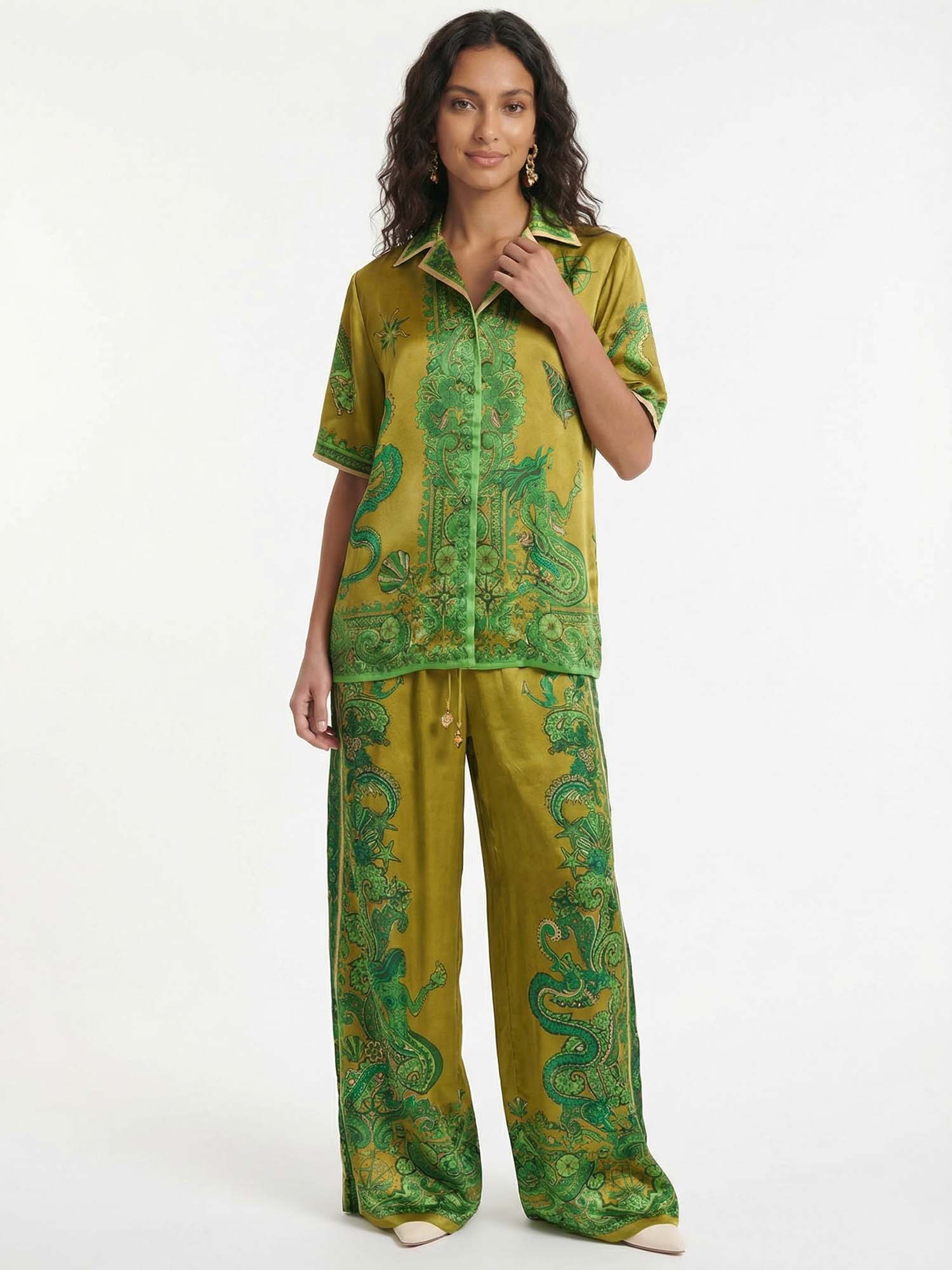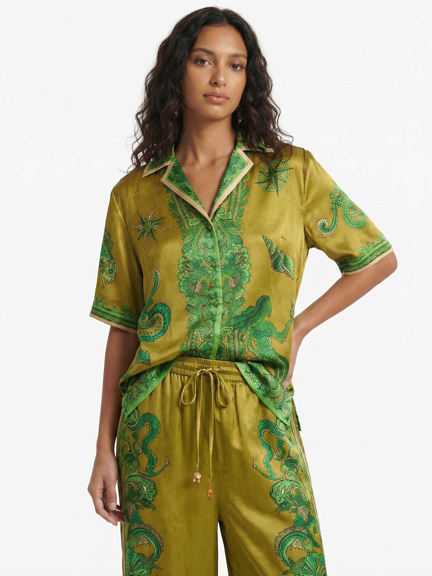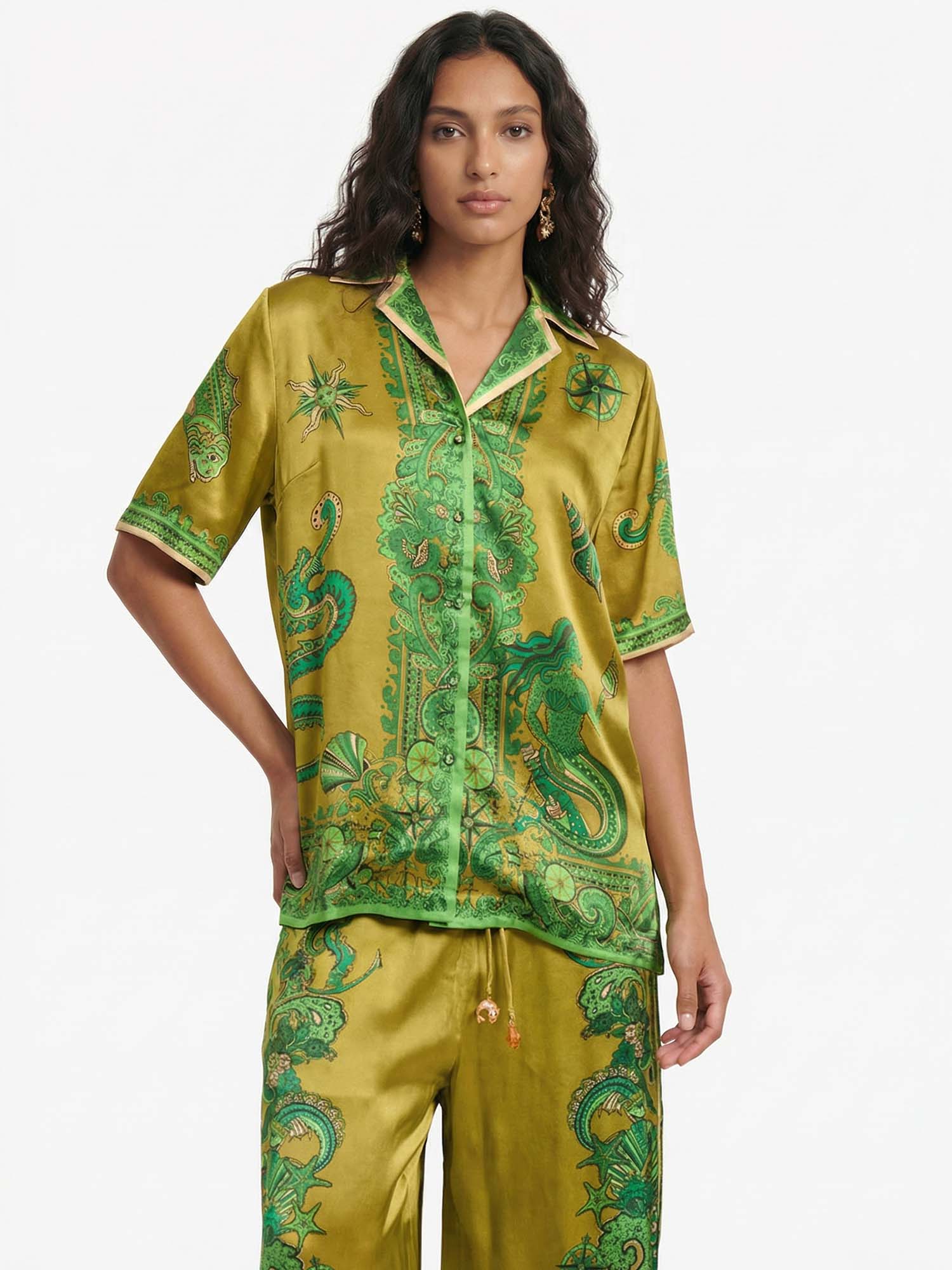Luxe Satin Cashew Blossom Oversized Shirt