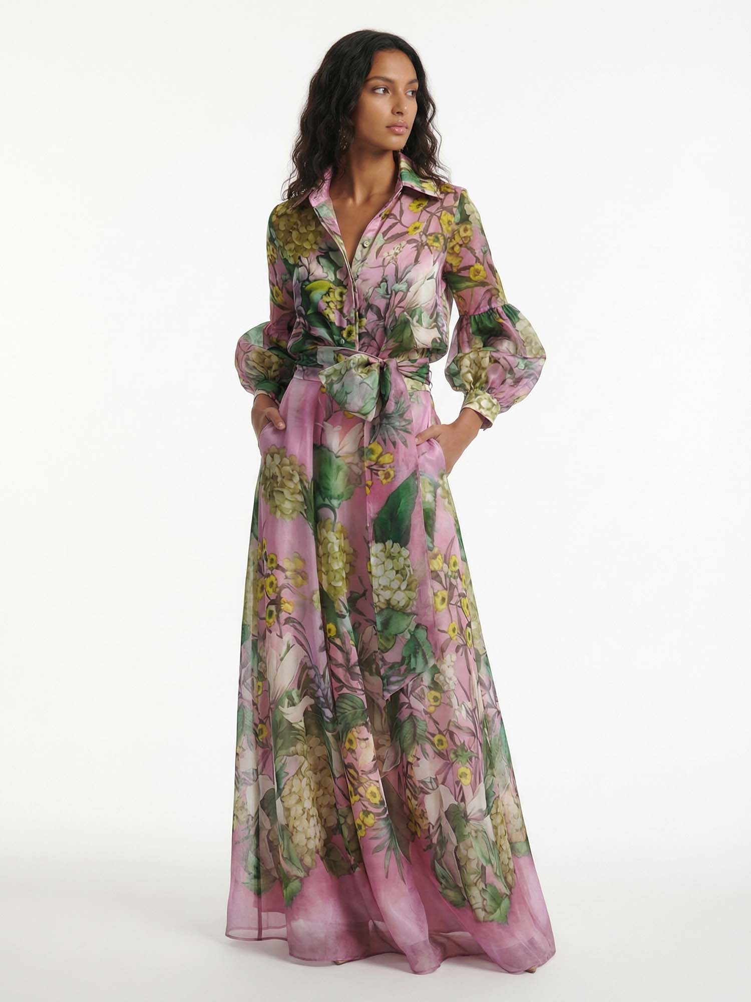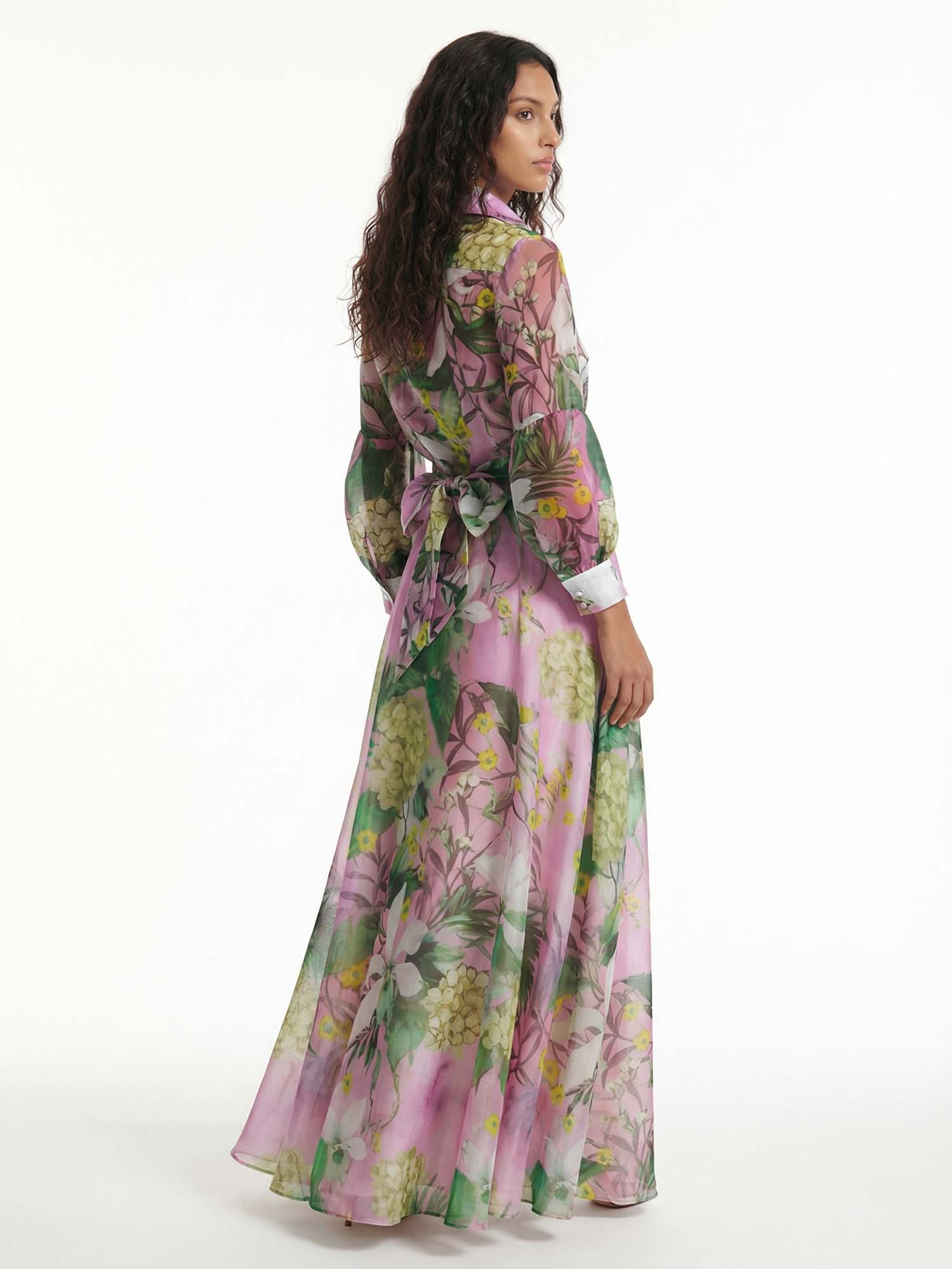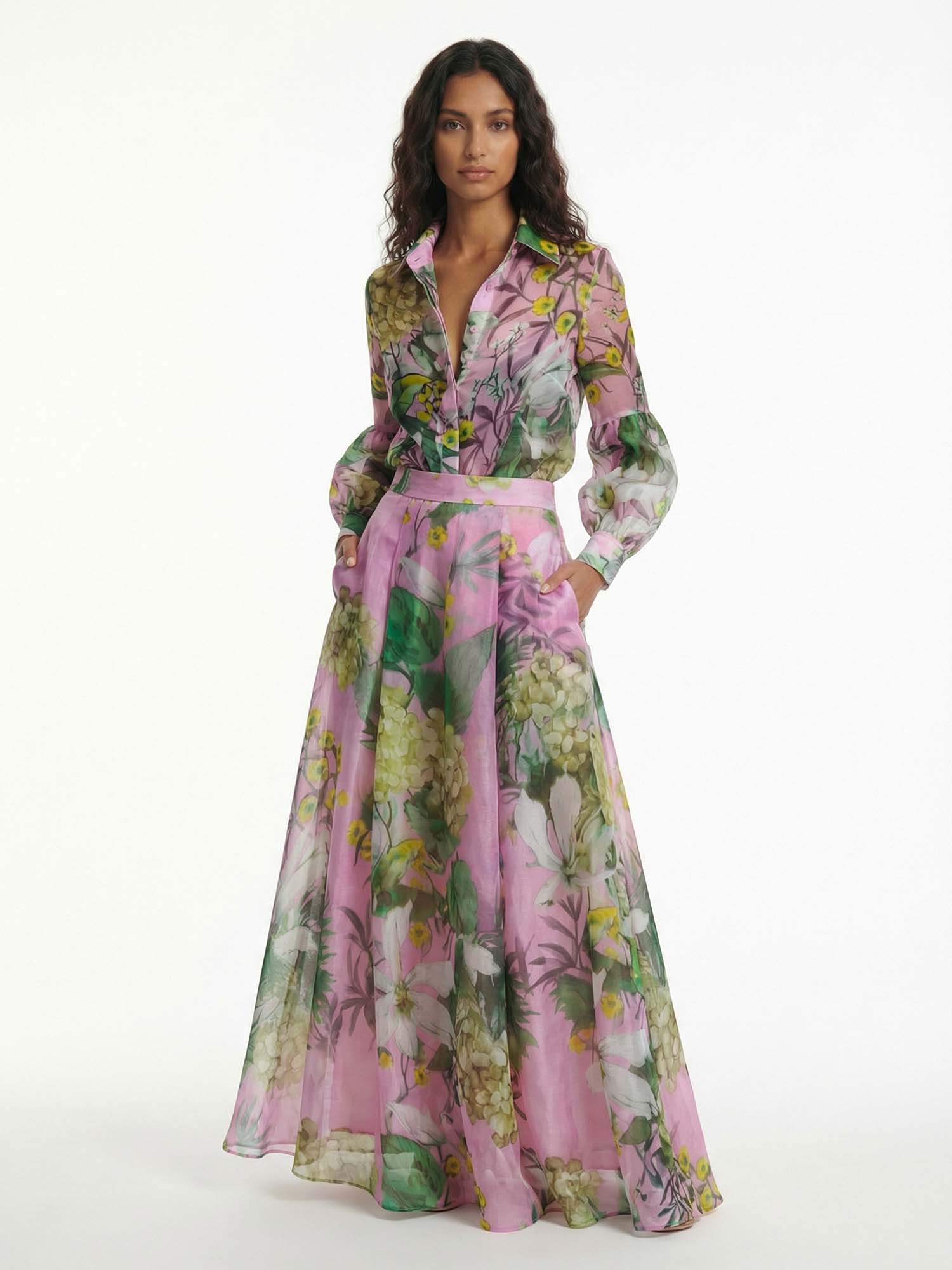 Floral Print Satin Button-Down Shirt