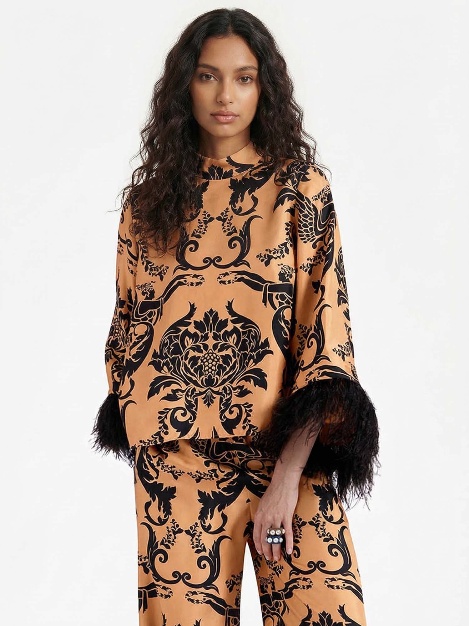 Bohemian Satin Top with Feather Detail