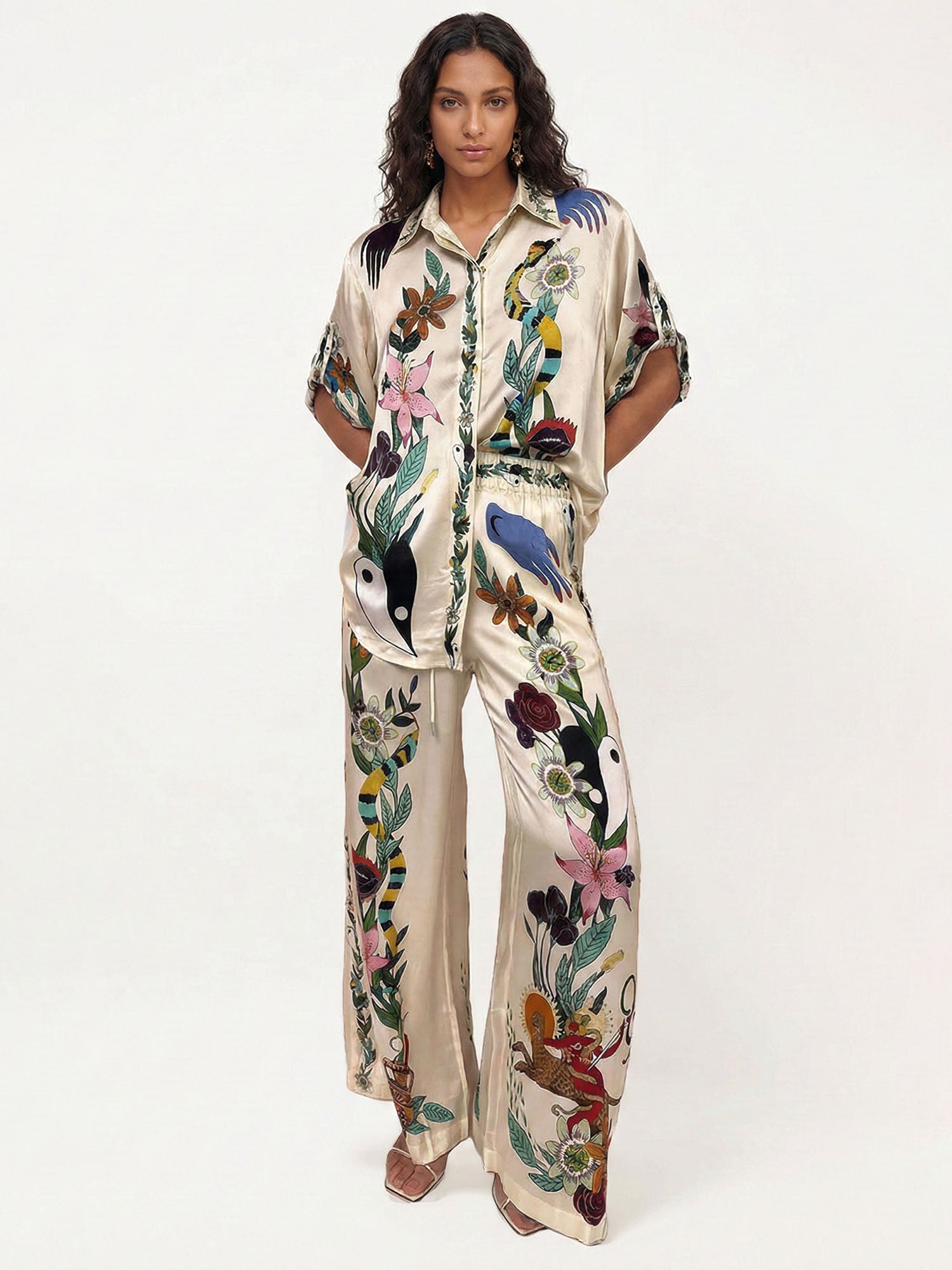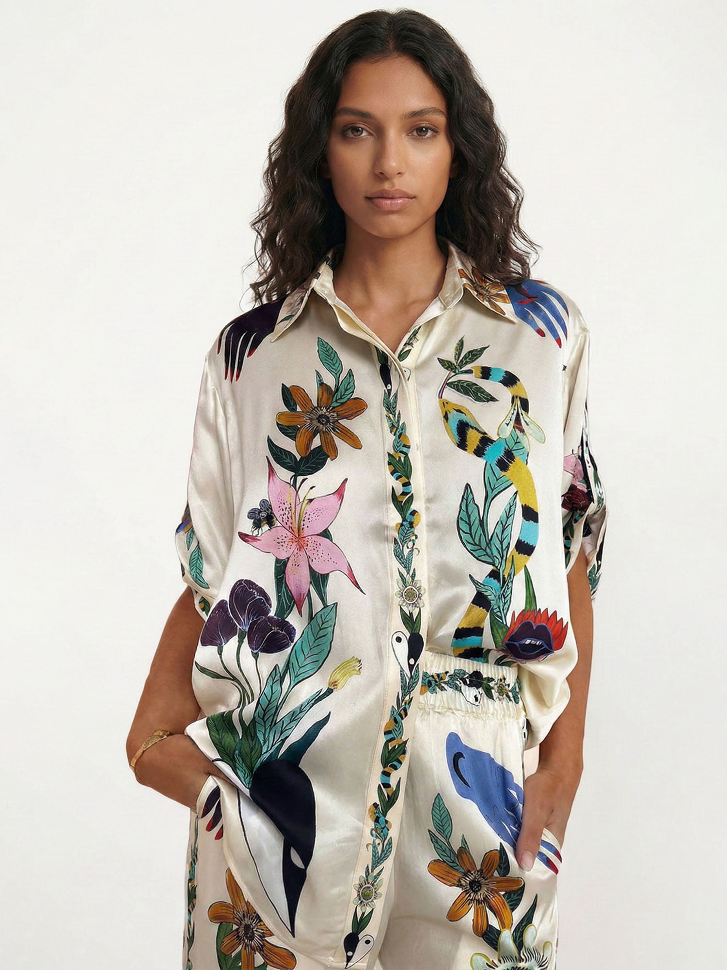 Satin Oversized Blouse with Modern Sophisticated Print and Button-Down Closure – a unique and refined addition to your wardrobe, designed to elevate your everyday style.