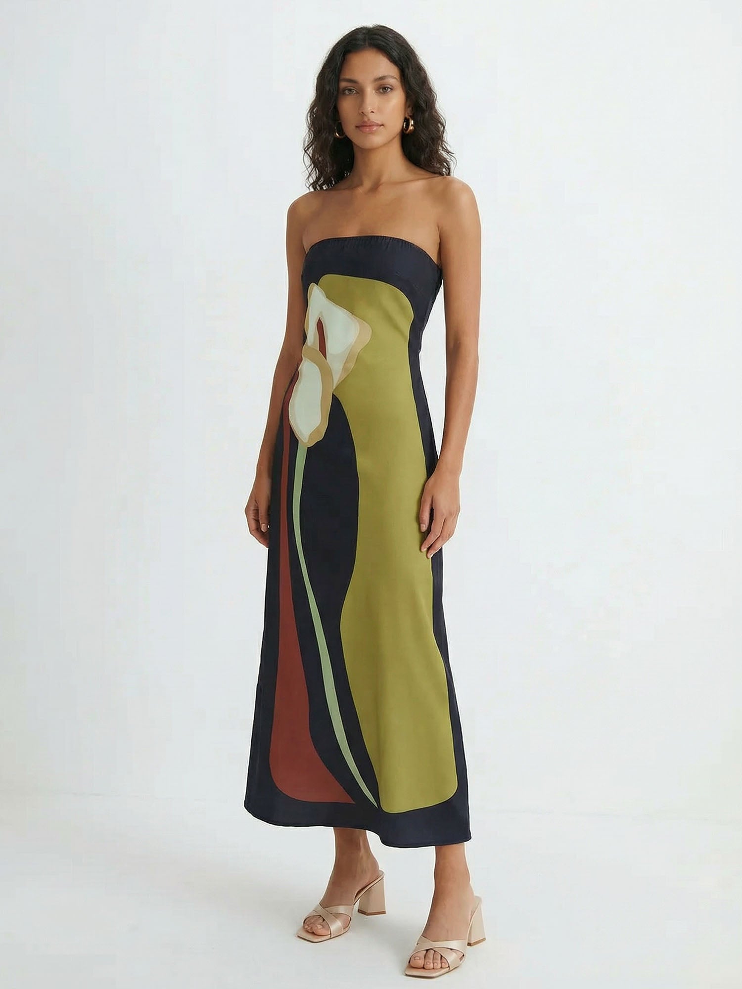 Abstract Floral Print Strapless Maxi Dress