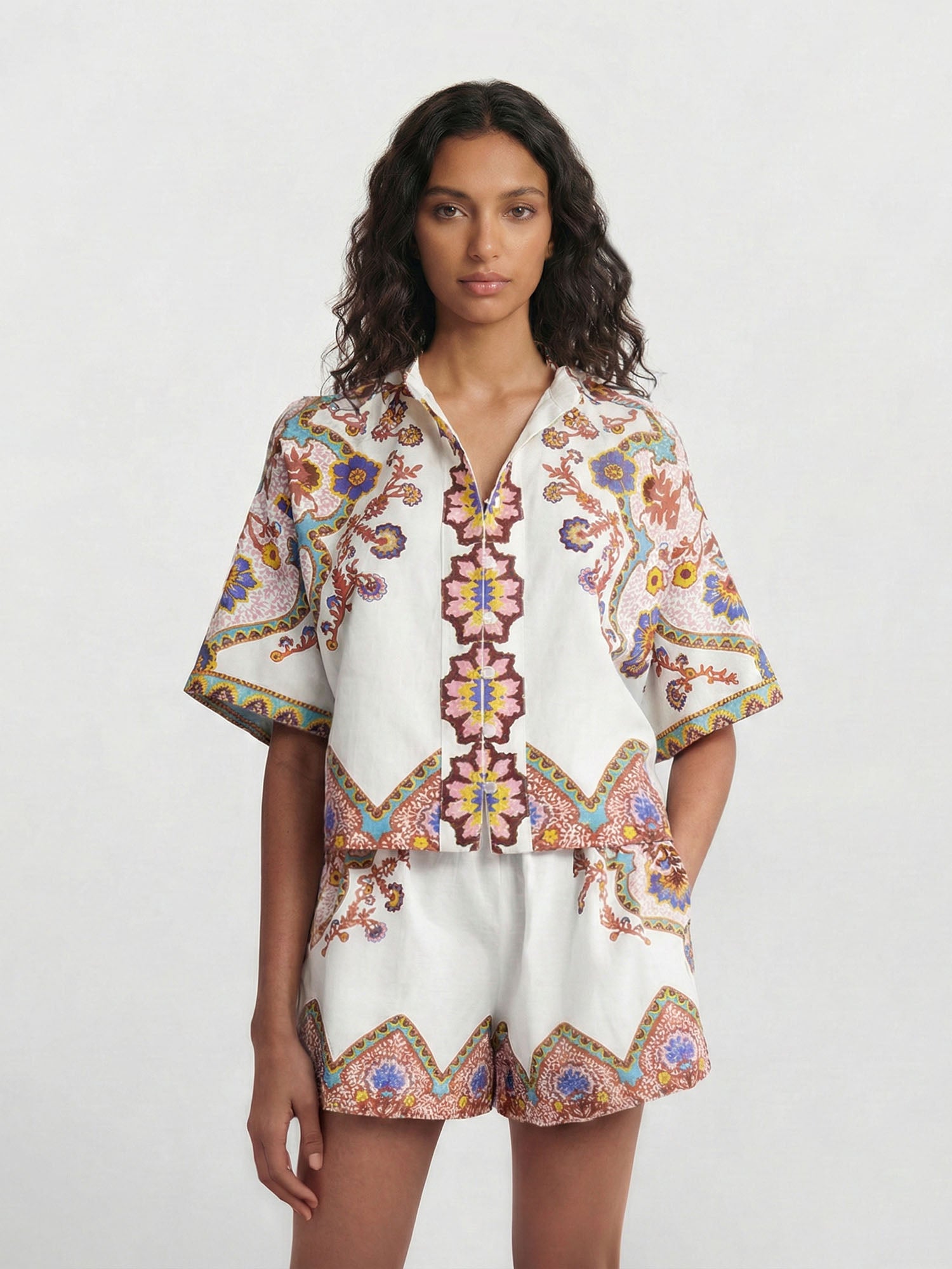Baroque Print Relaxed Shirt & Shorts Set