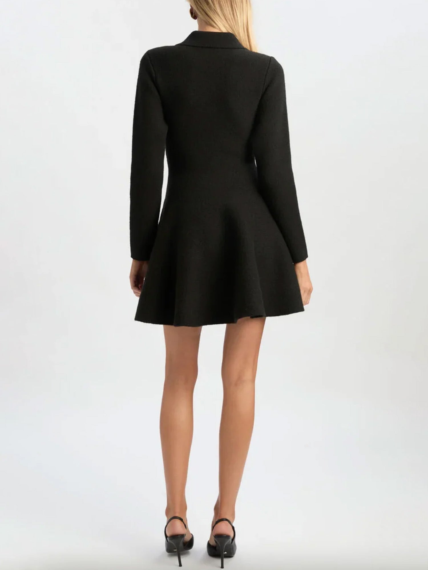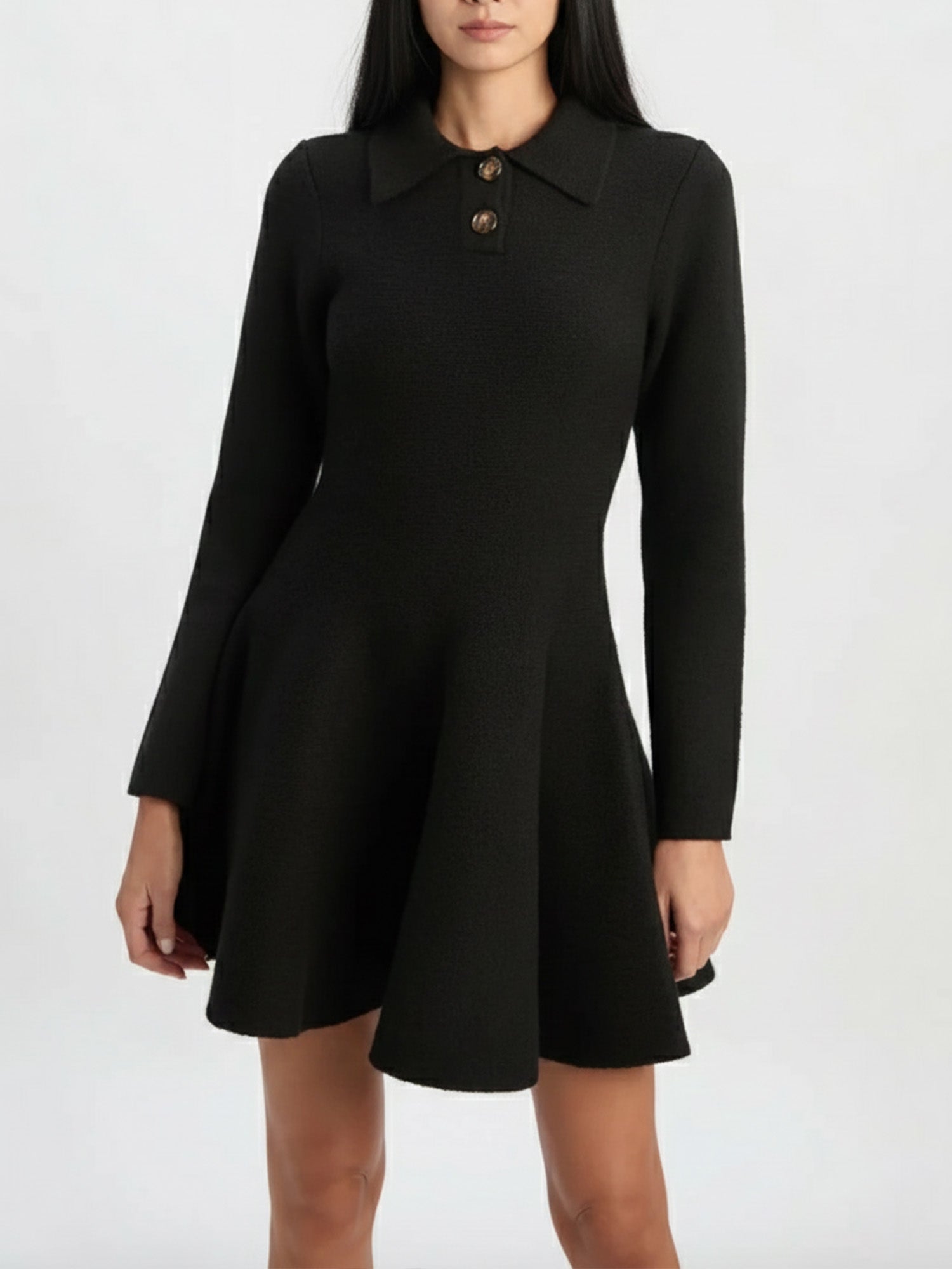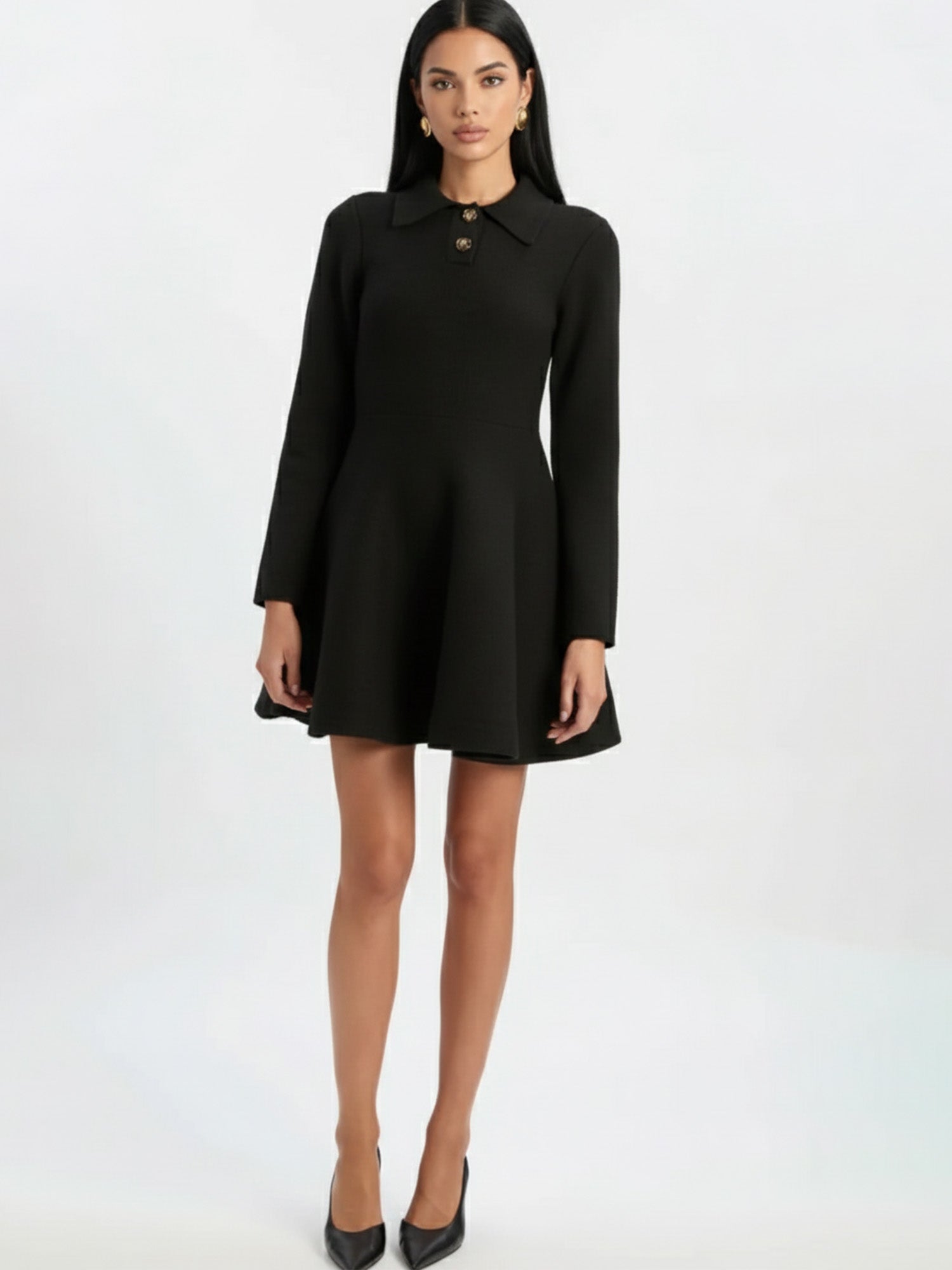 In the hush of rounded collars, this mini dress traces a path of pearl buttons down its fitted form, flaring into an A-line hush that defies the ordinary. Its structured poise invites twilight soirées or cultured whispers, a timeless silhouette blending vintage charm with modern defiance.