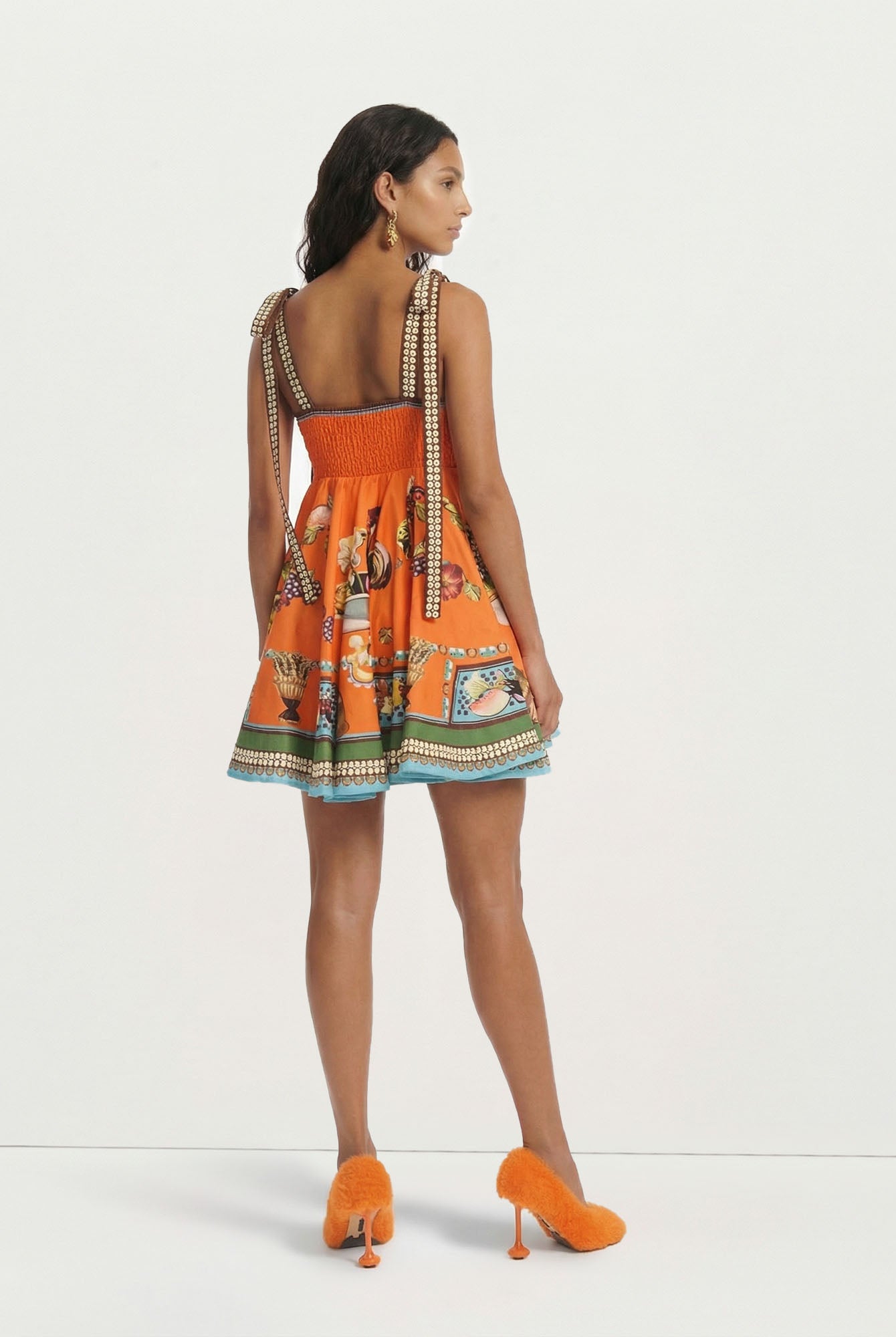 A radiant coral midi dress with soft pleats and spaghetti straps, perfect for sun-soaked escapes and breezy summer soirées.