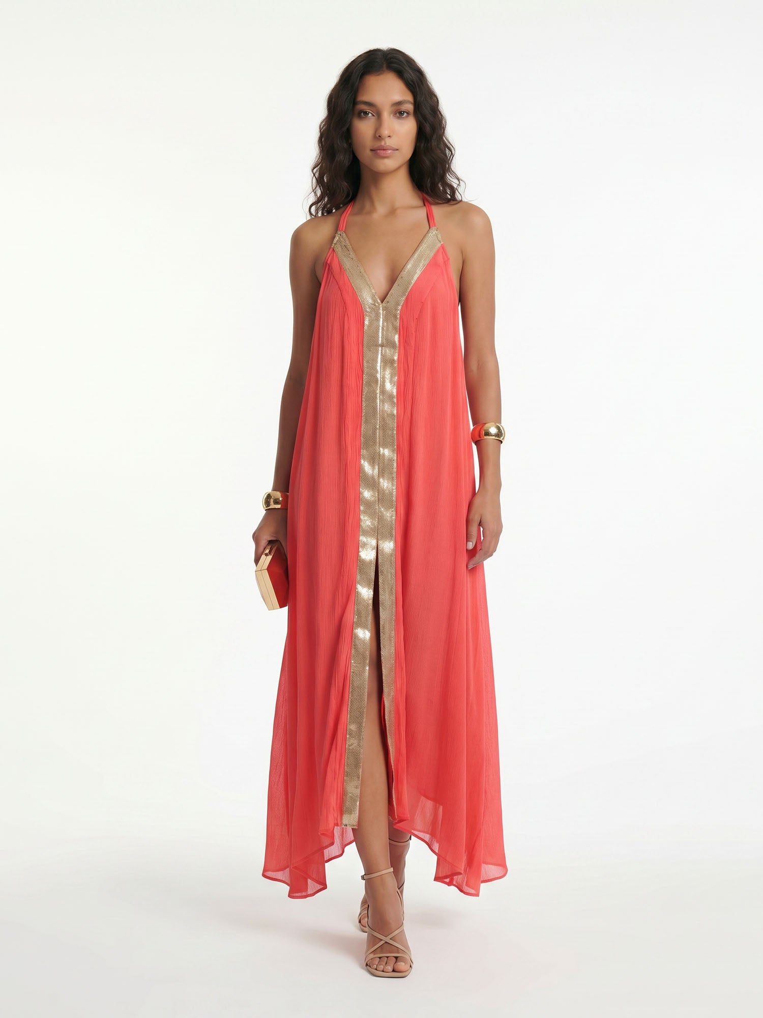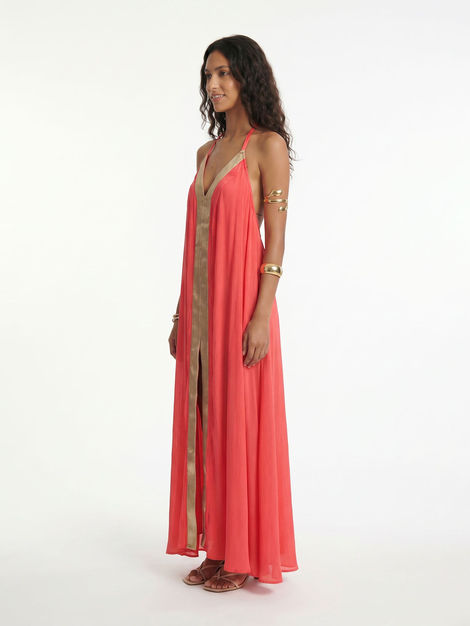 Coral Veil Maxi Dress