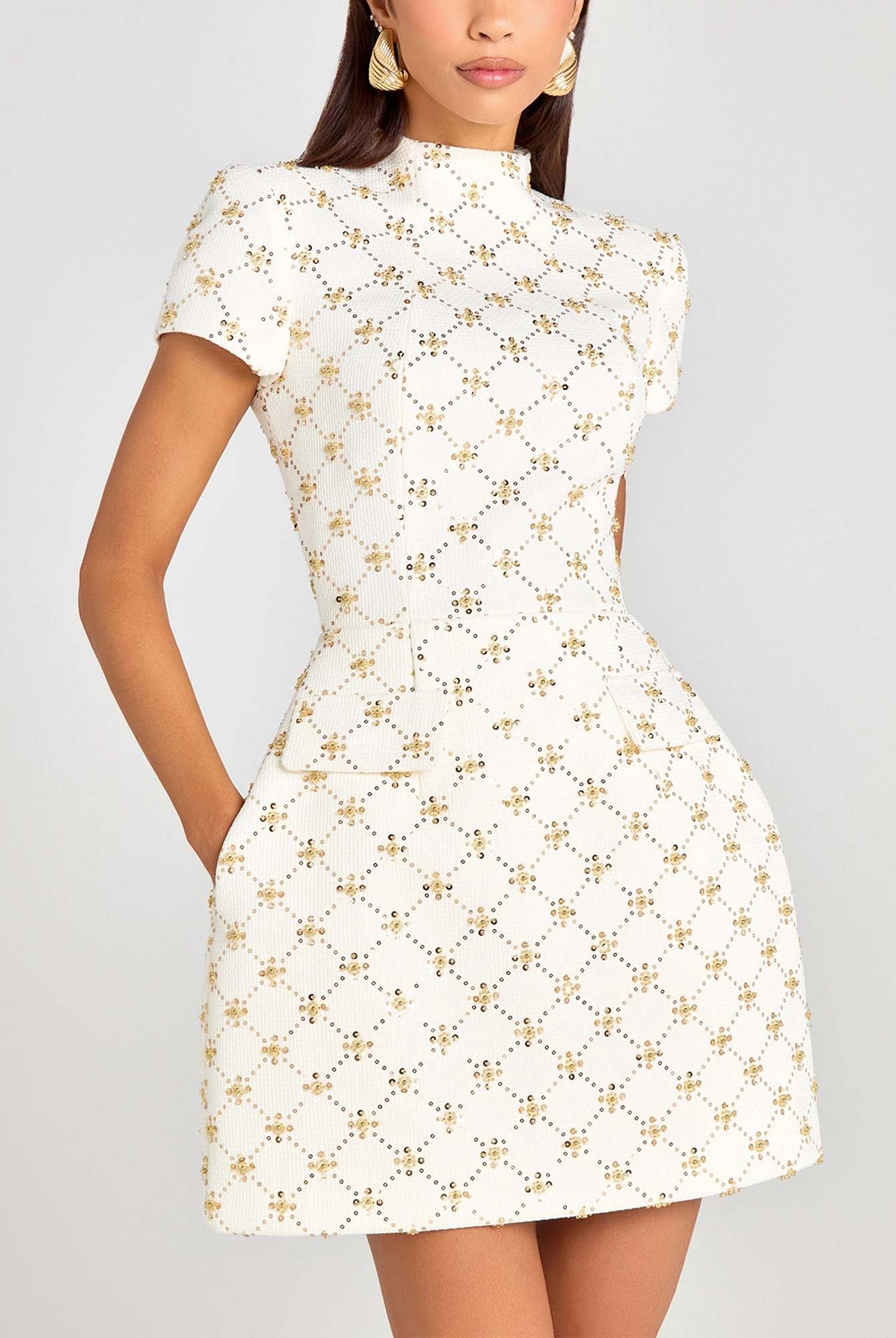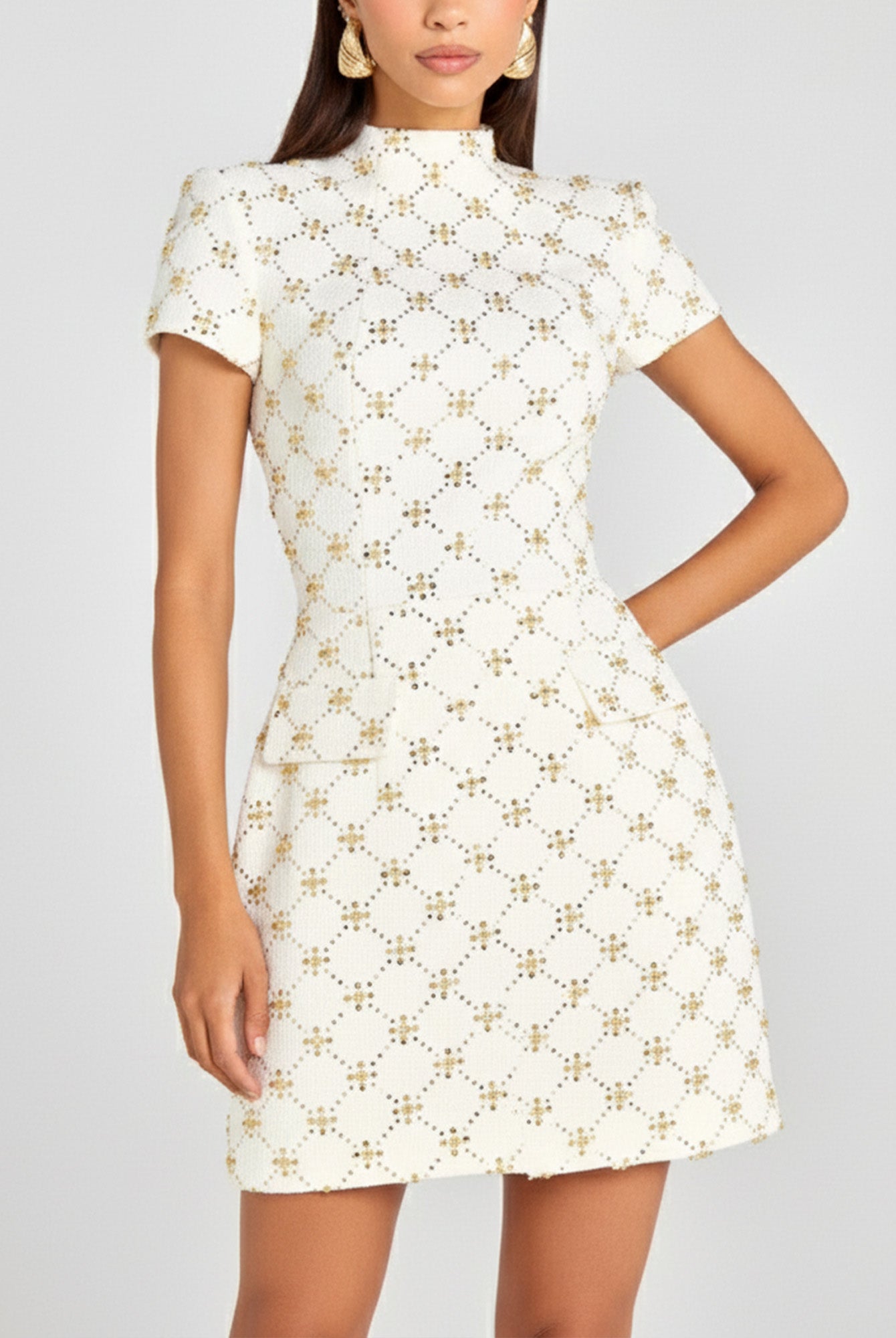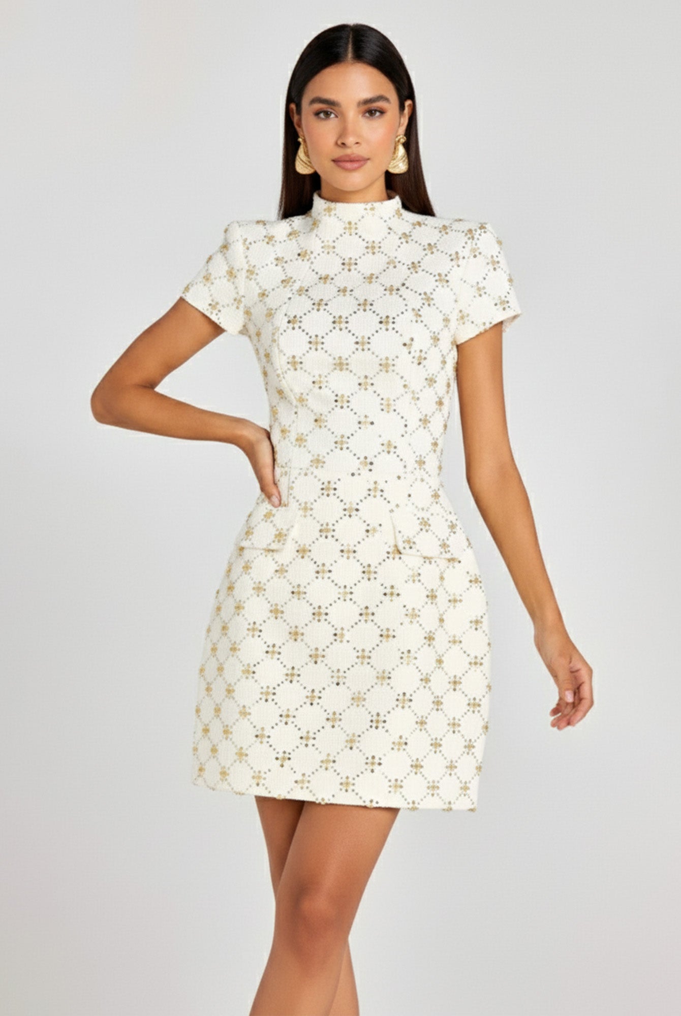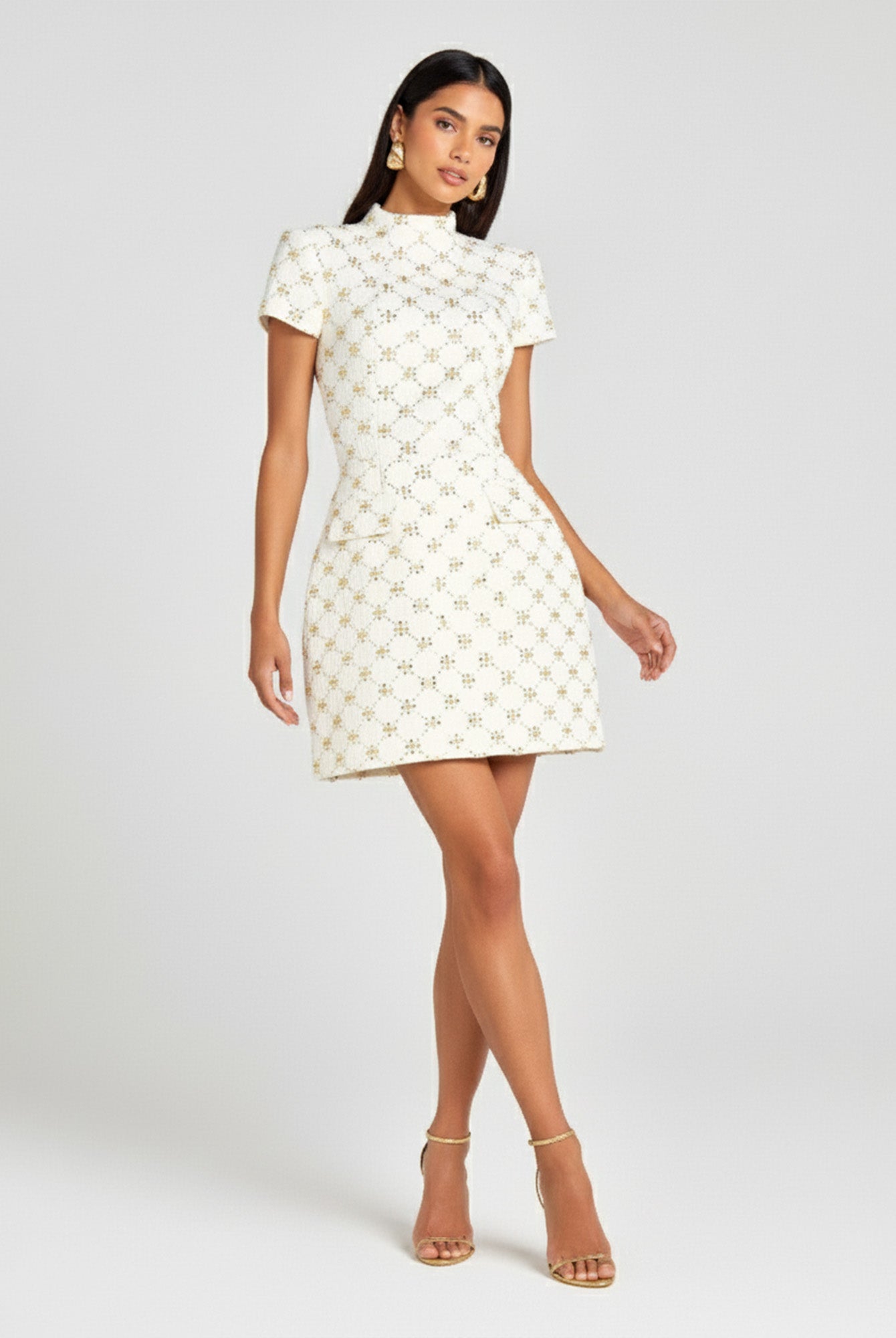 This Velvet Dress with a beaded square neckline brings glamour and elegance to any occasion. The plush fabric and delicate beading create a sophisticated look for cocktail parties or special events.