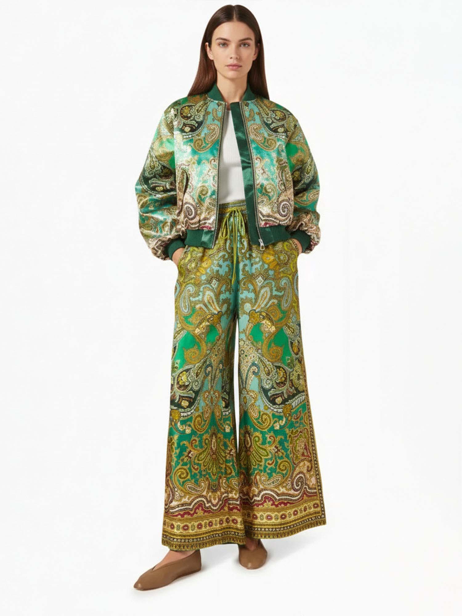 The high-waisted, relaxed fit ensures effortless movement, grounding bohemian flair with modern poise. Slip into them for an instant upgrade to casual outings or sunset soirées, channeling the grace of ancient silk roads in contemporary comfort.
