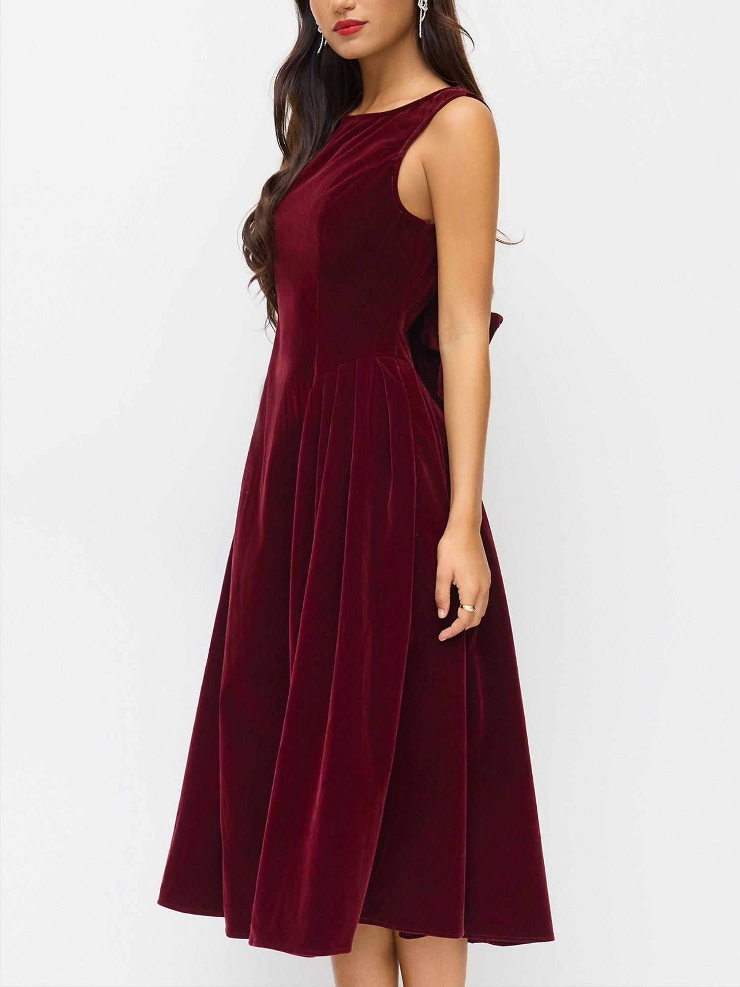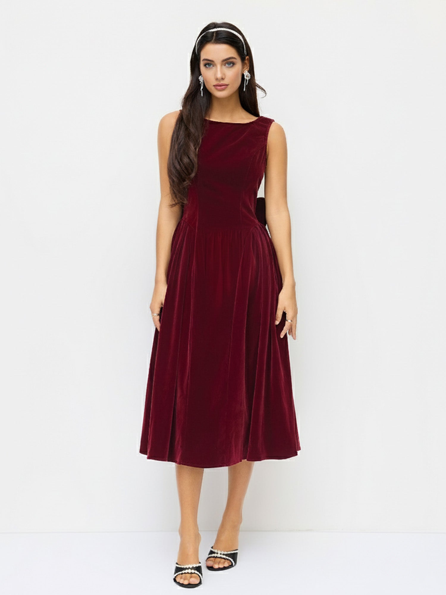 In the swell of unspoken gathers, this midi dress blooms with poised abandon, where square edges frame the form's quiet descent. Its sleeveless silhouette invites twilight drifts, a fluid form for moonlit confessions or veiled graces, weaving elegance into the hem's gentle whirl.