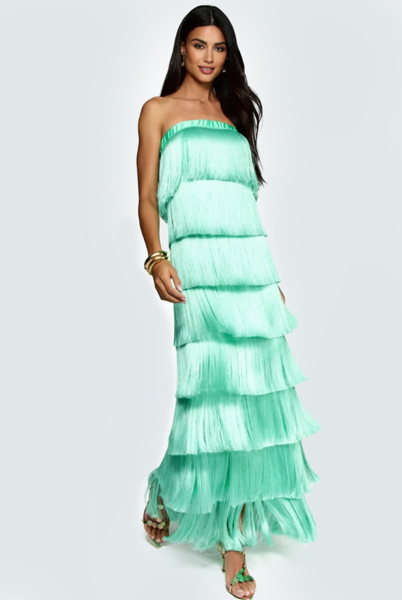 Green Fringed Cascade Maxi Dress