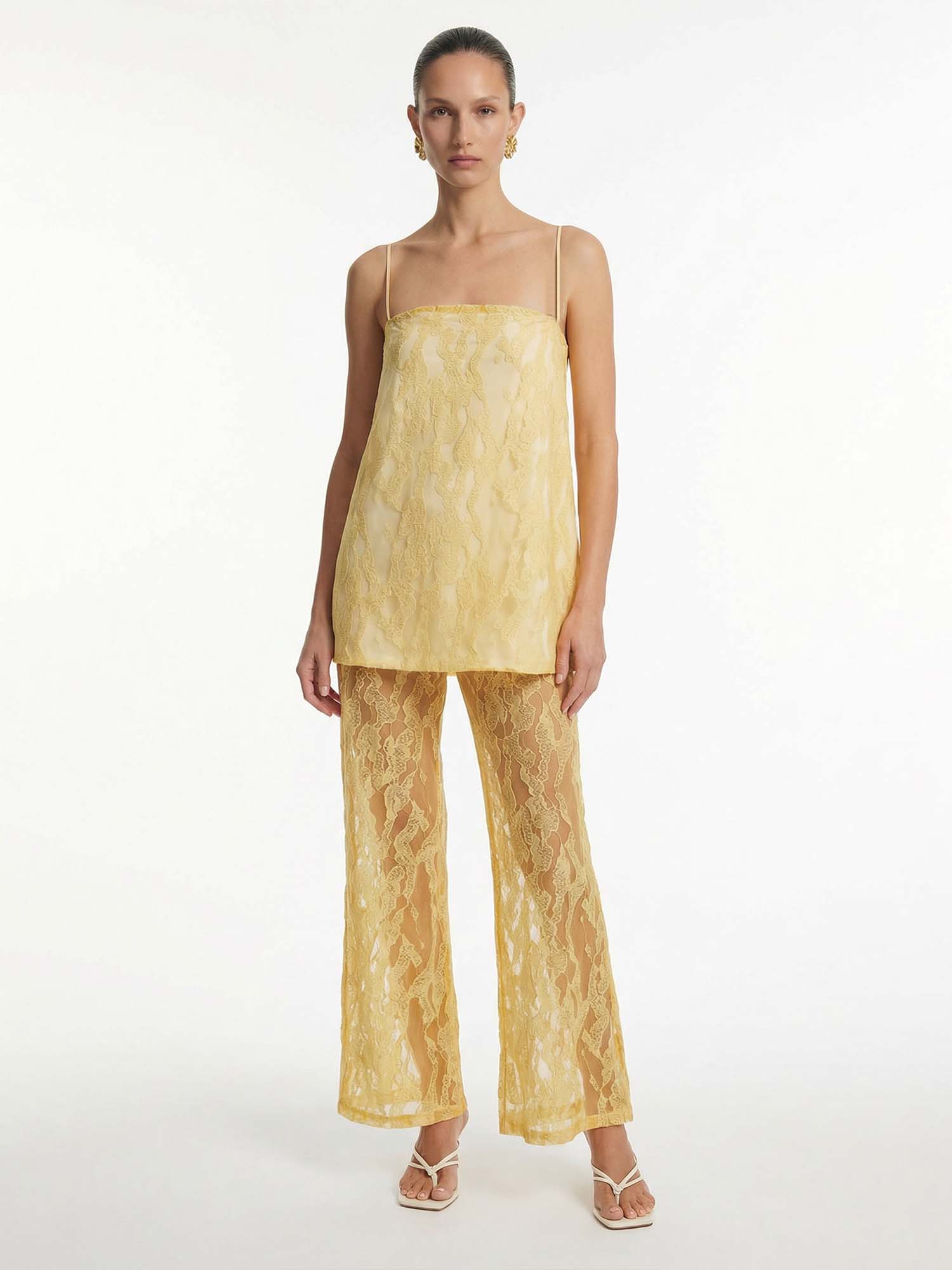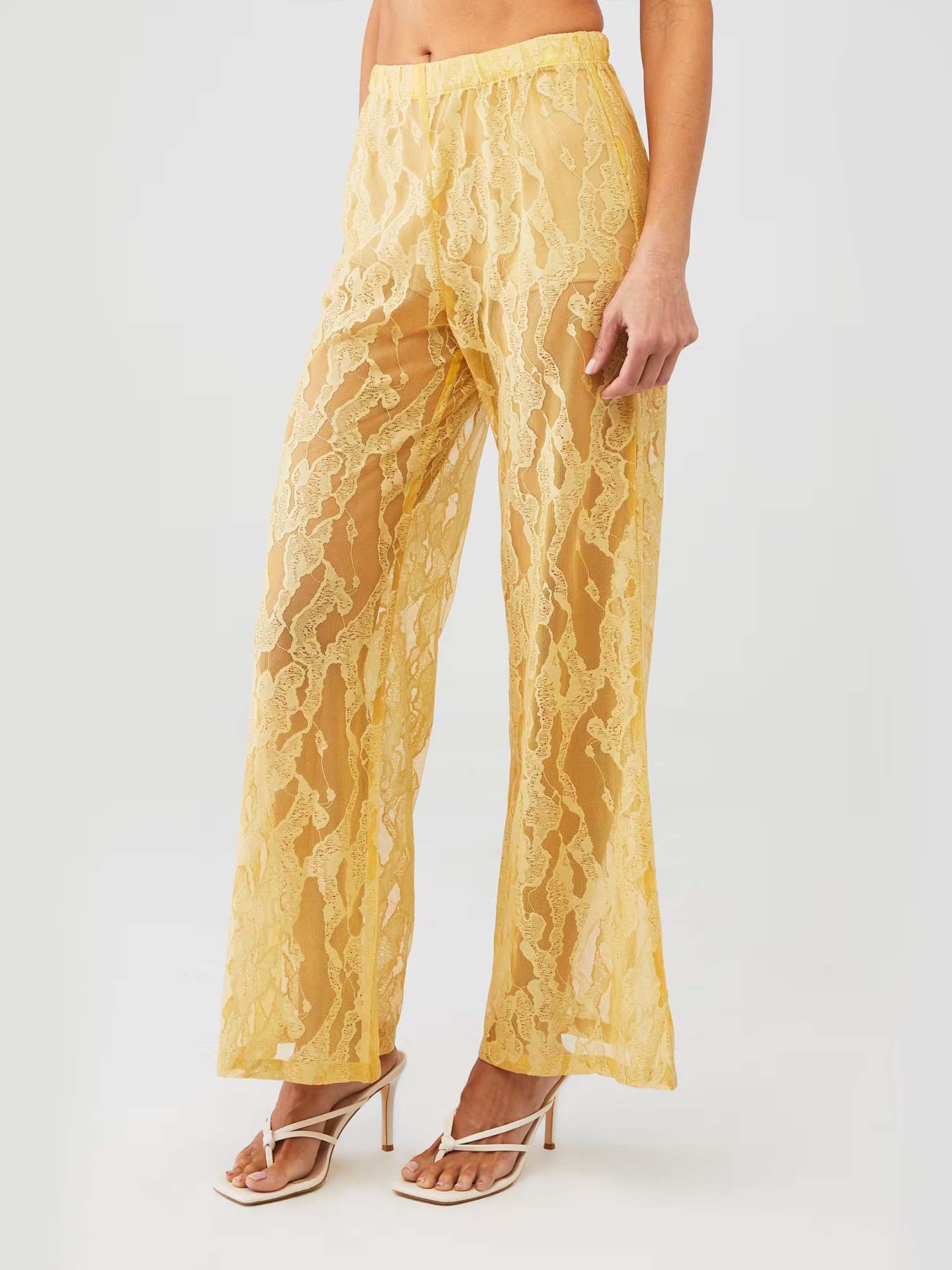 Flow like liquid light in Dantўûase's Lumina Drift Pants, where the same delicate layers continue downward in wide, graceful movement. The relaxed silhouette invites freedom while preserving an air of refined mystery and luminous ease.