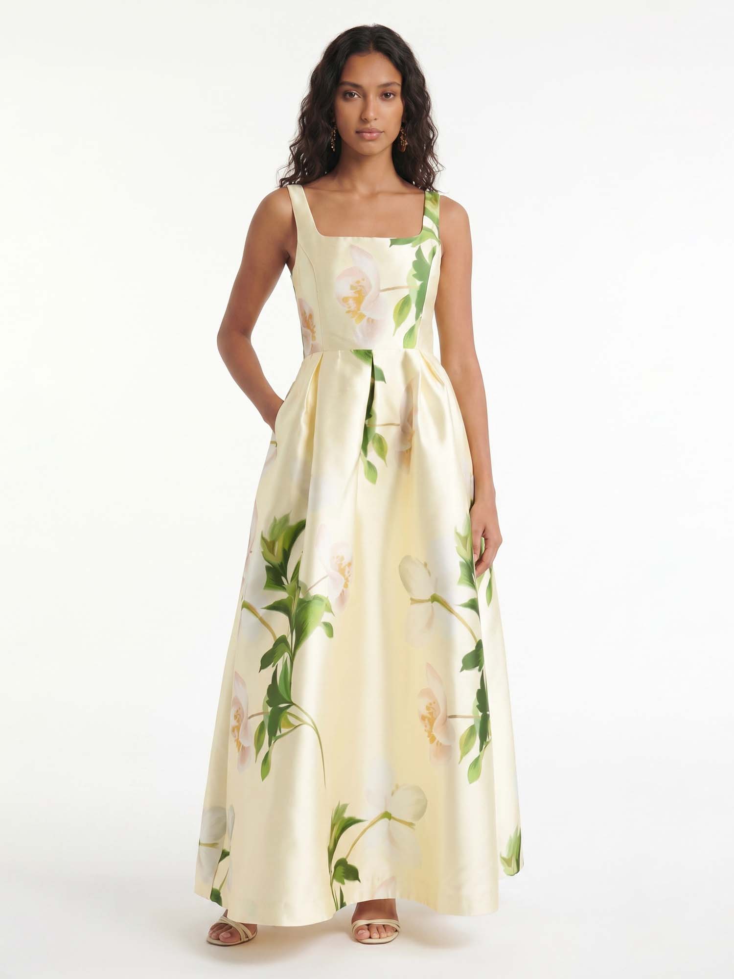 Let soft vines and petals drift where square lines meet flowing grace, creating effortless harmony that sways with quiet elegance in every step.