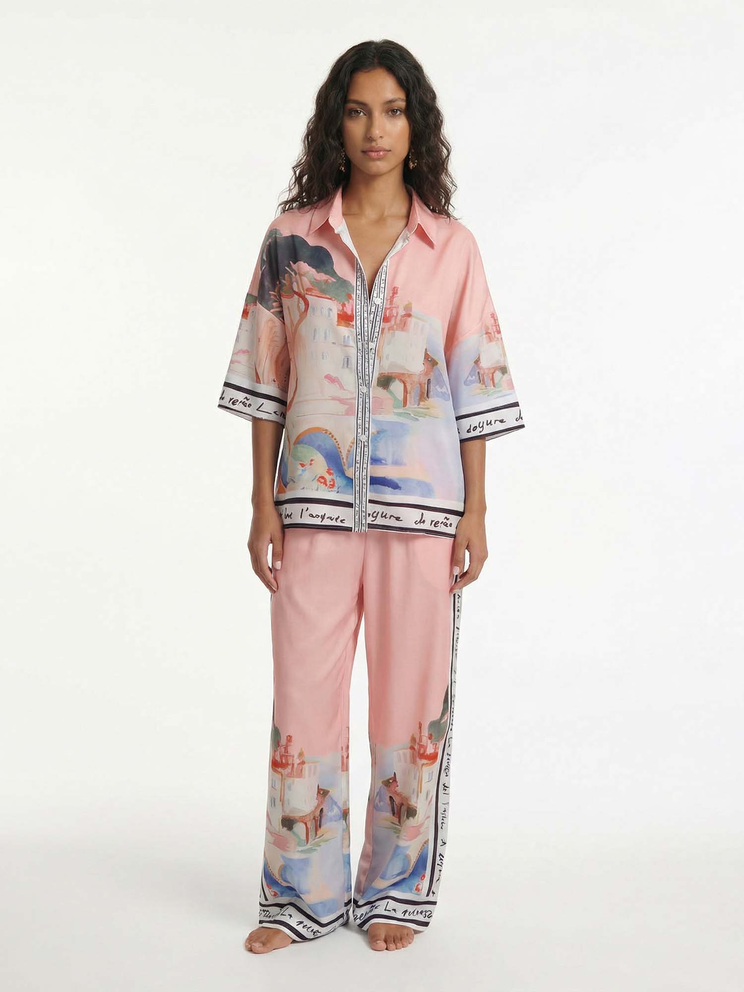 Pastel Scenic Art Button Shirt