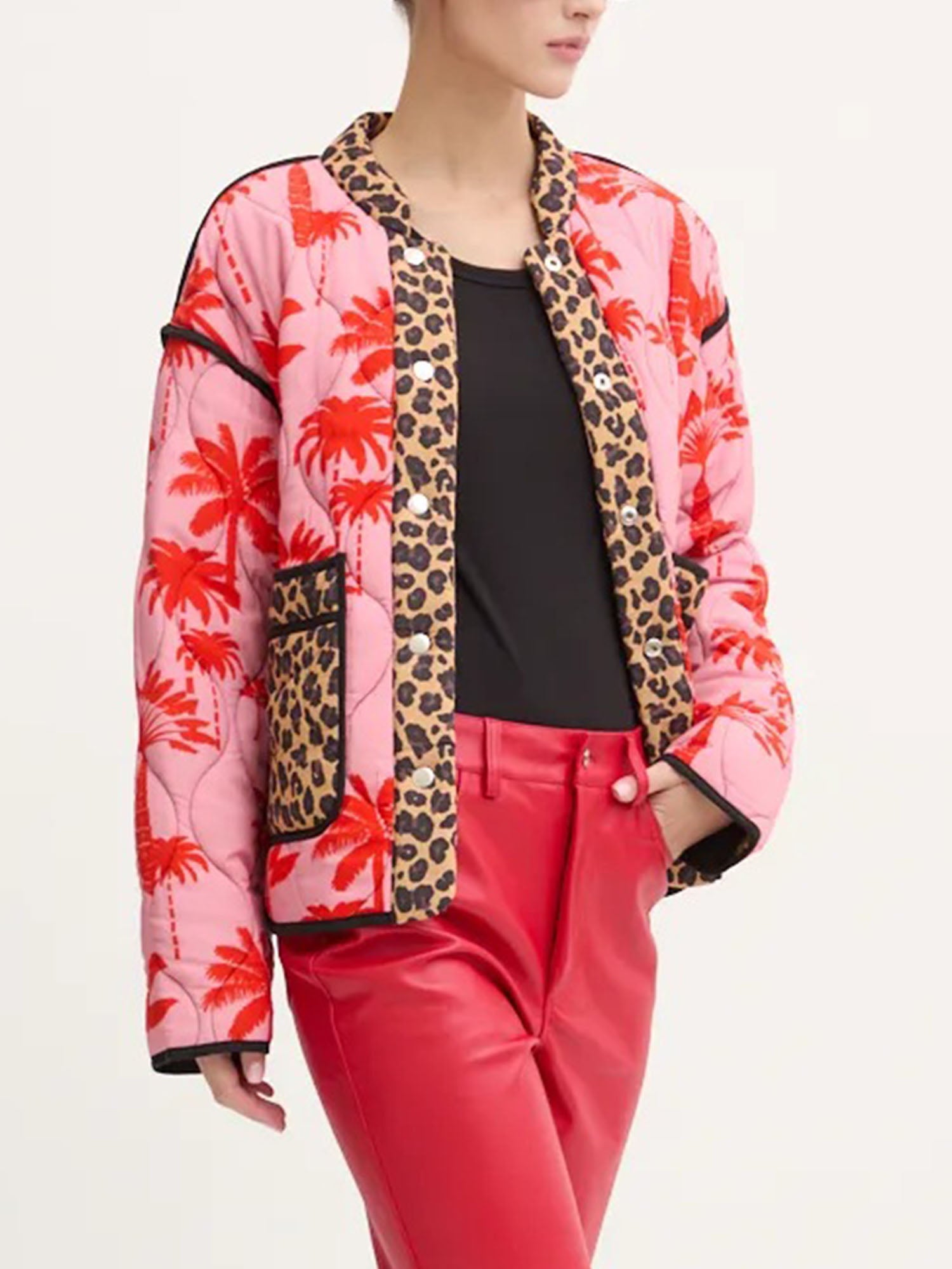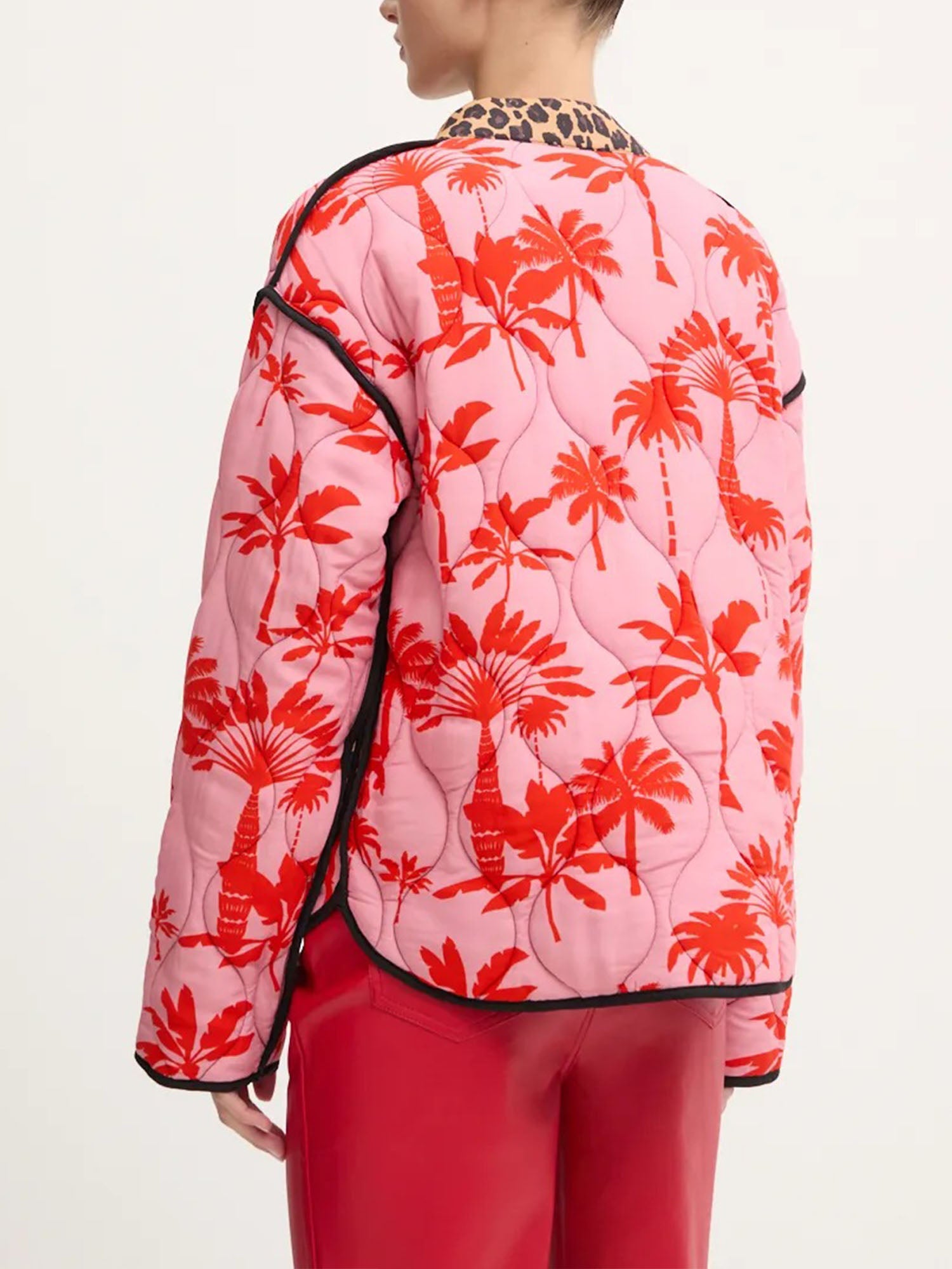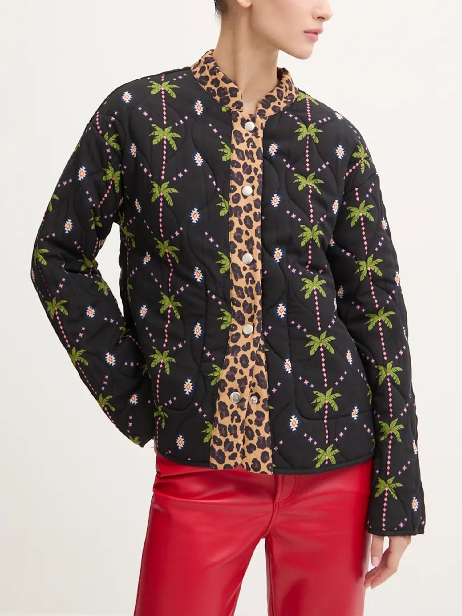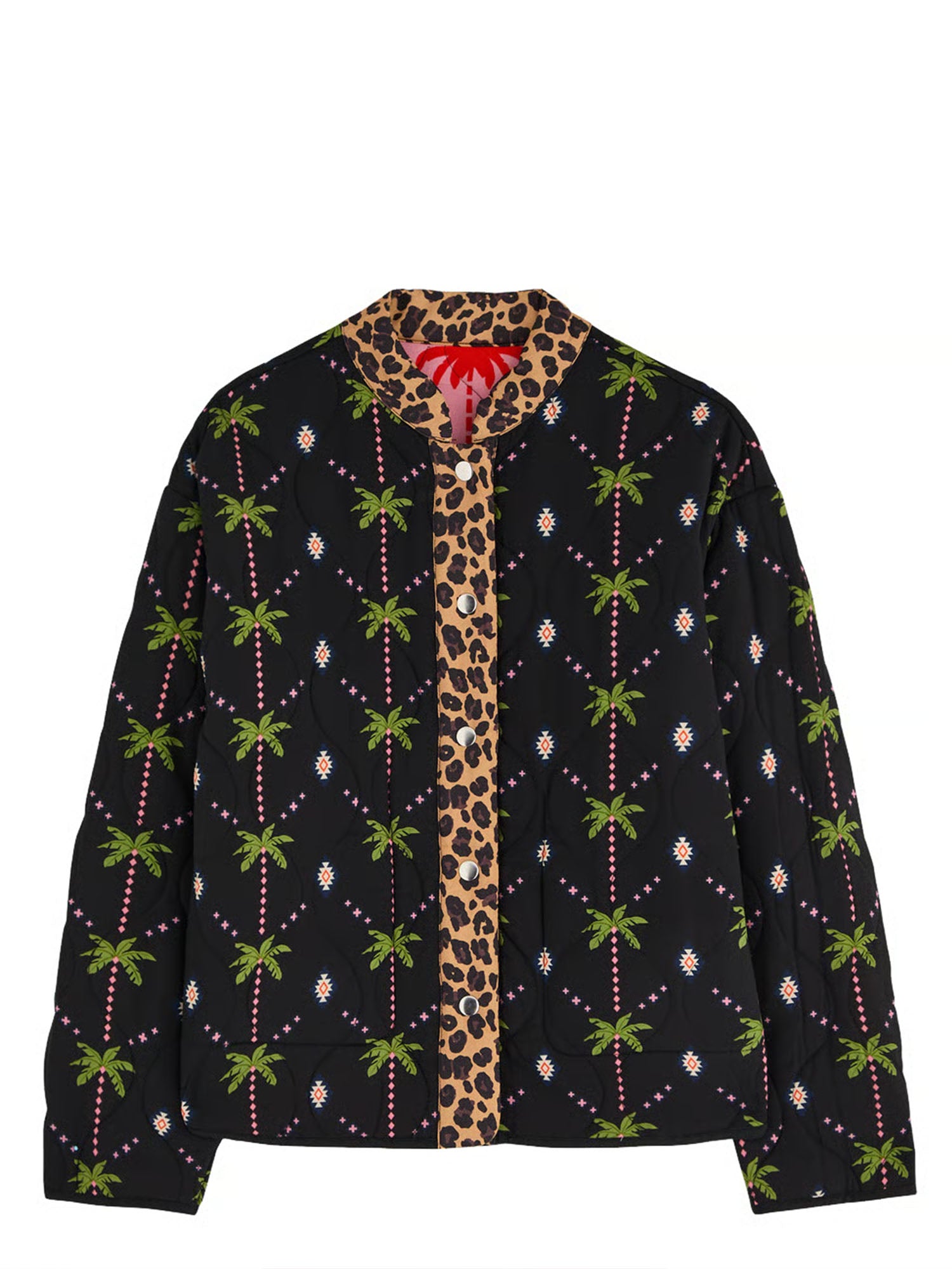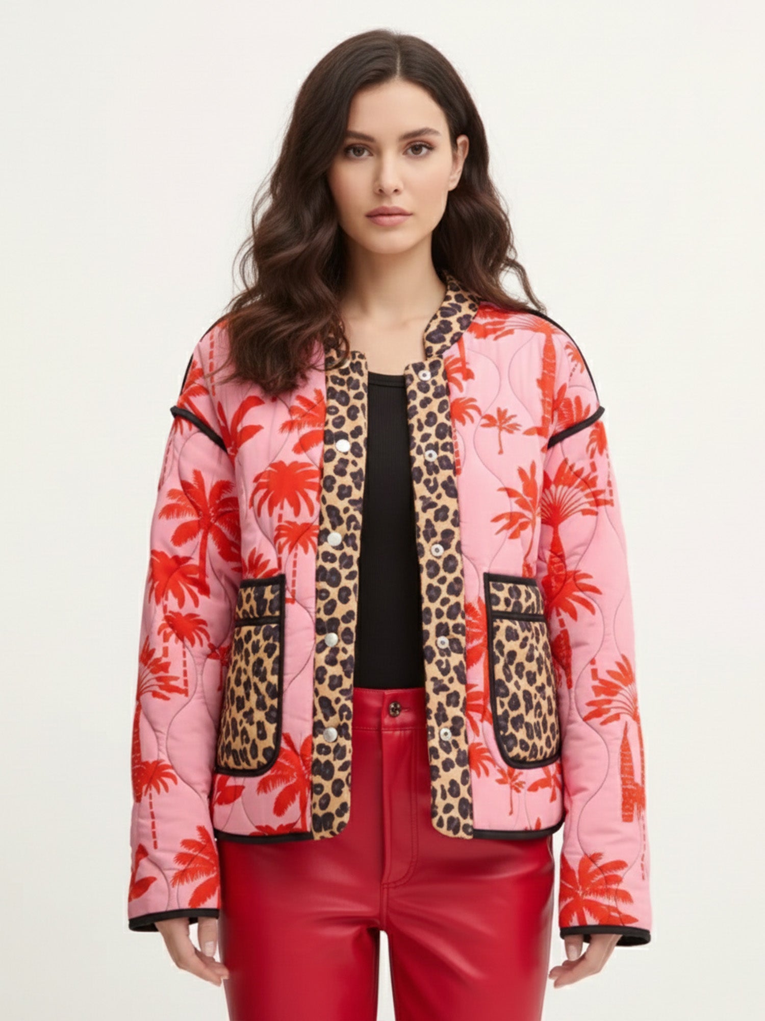 In the duality of wild oases, this quilted jacket flips between palm-fringed reveries and prowling leopards, where stitched edges guard the secret of seamless transformation. Its lightweight layers summon effortless wanderings, a versatile silhouette for sun-dappled escapes or urban prowls, threading untamed spirit into every reversible turn.