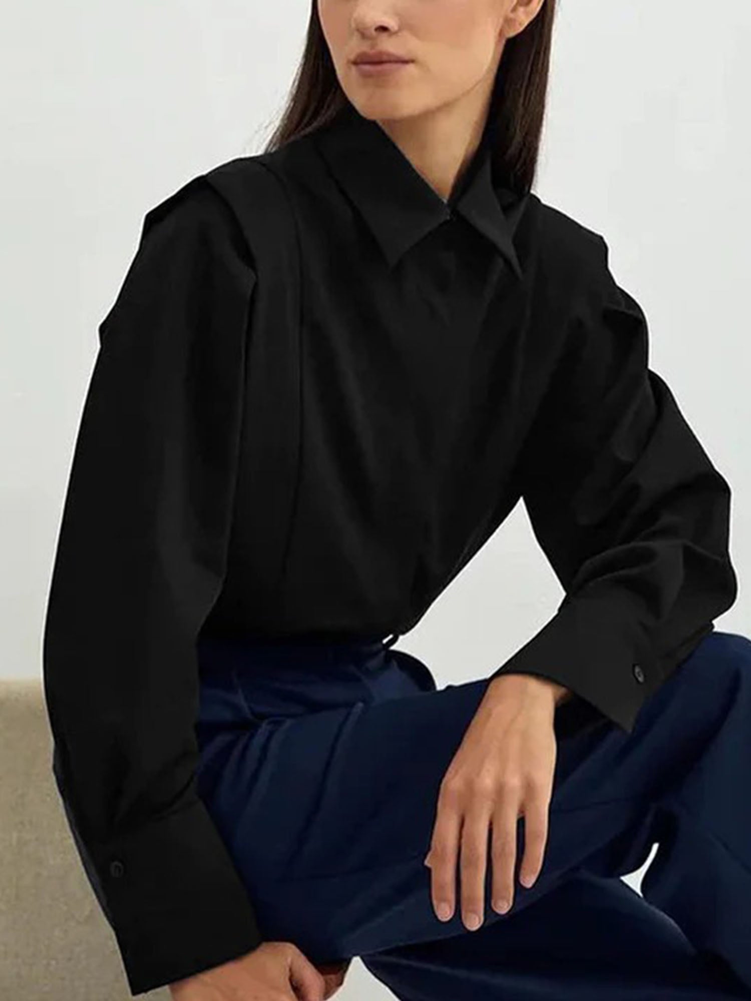 Sharpen your silhouette in the Dantўўase Square Shoulder Shirt, where angular seams and extended sleeves create a sleek, high-end commuter essential. Timeless with a modern twist.