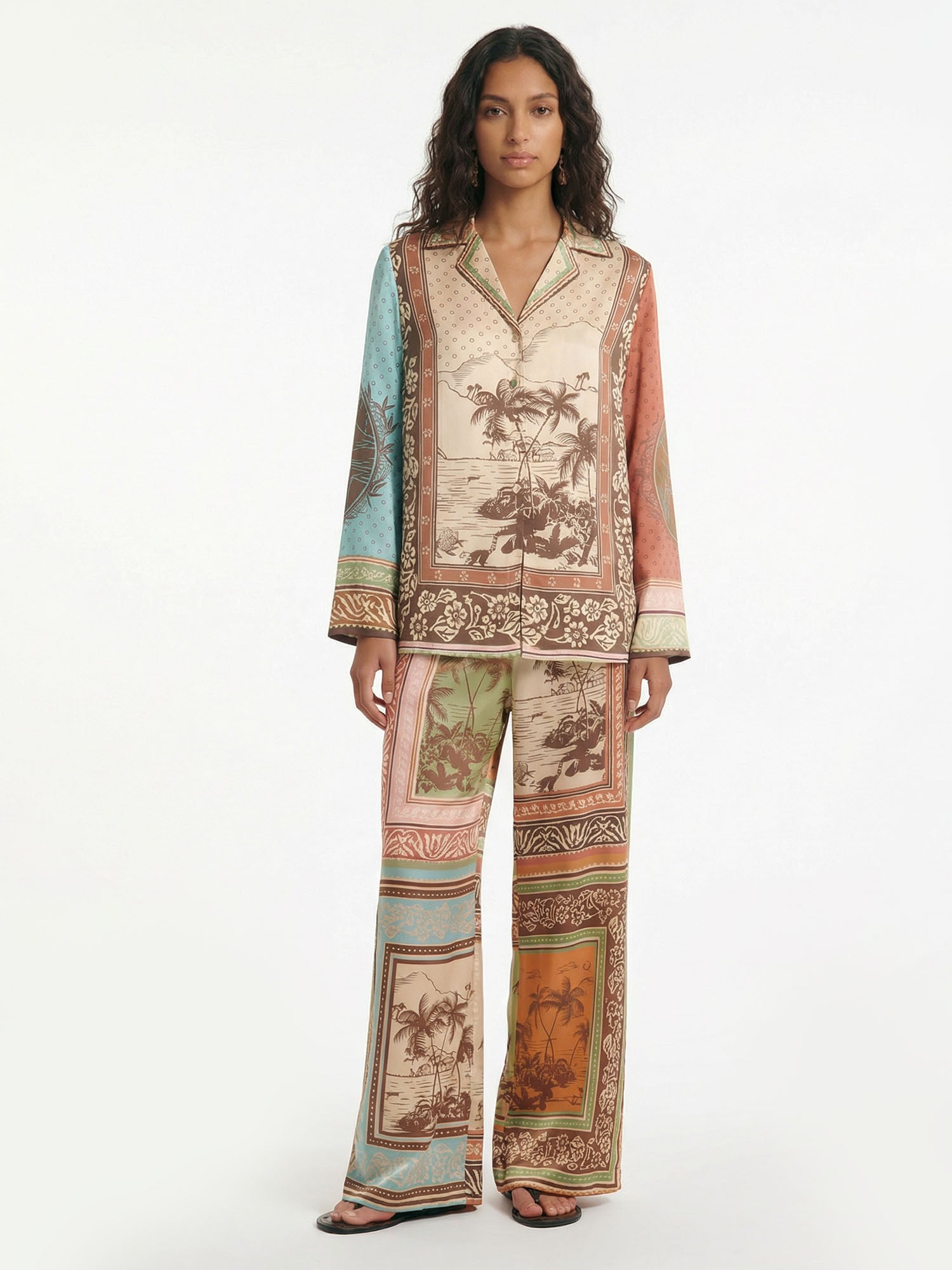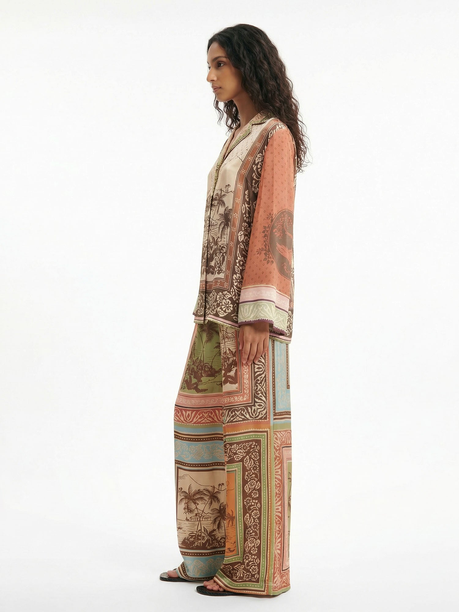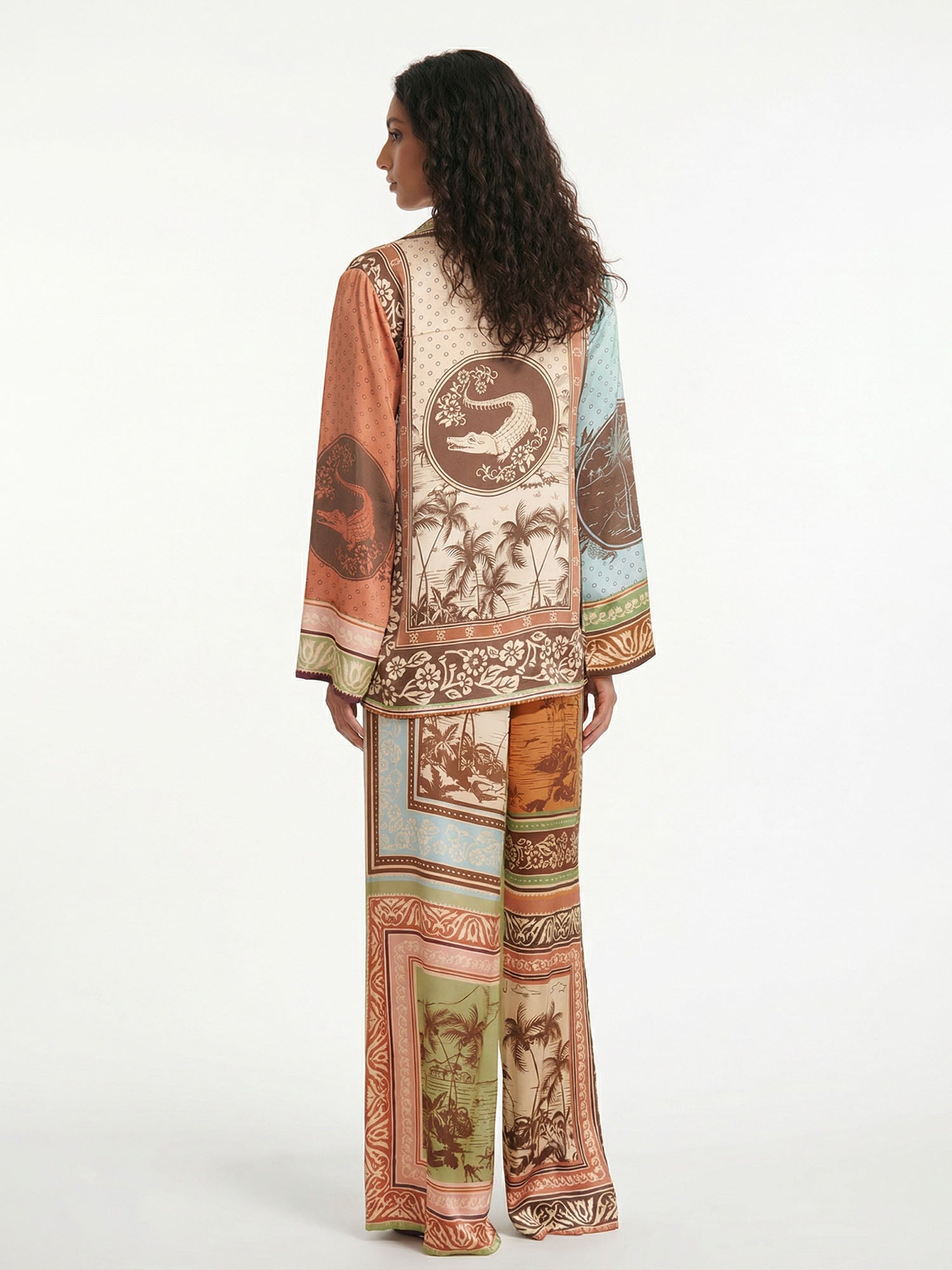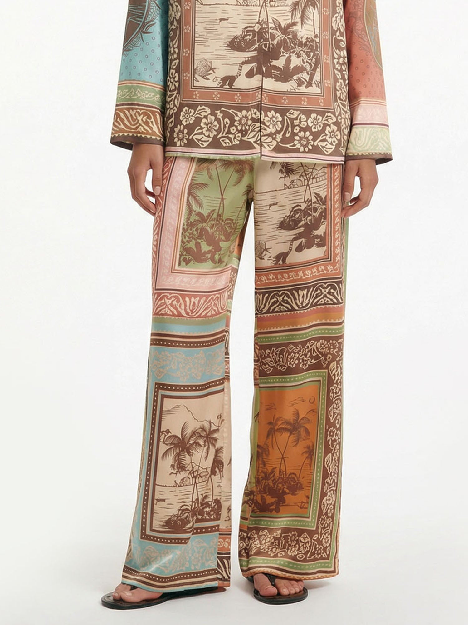 Flow with sunset serenity in Dantўўase's Tropical Reverie Pants, paneled with layered tropical borders and serene landscapes. They transition effortlessly from relaxed days to golden evenings—dreamy, nostalgic, and softly captivating.
