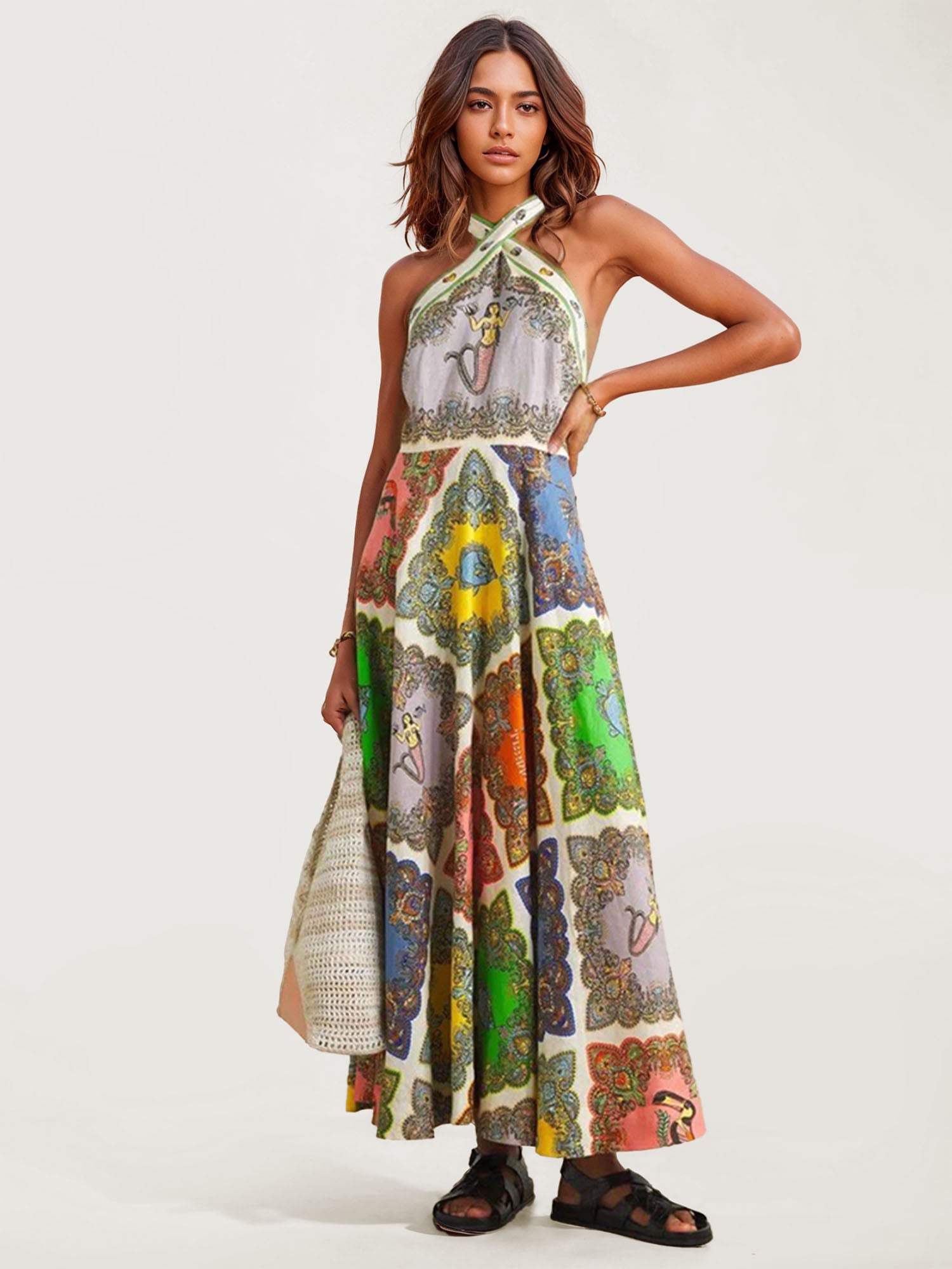 Elevate your style with the Maxi Dress with Vibrant Paisley Print. Flowing and full of color, this dress is a must-have for any occasion that calls for a bold and eye-catching look.