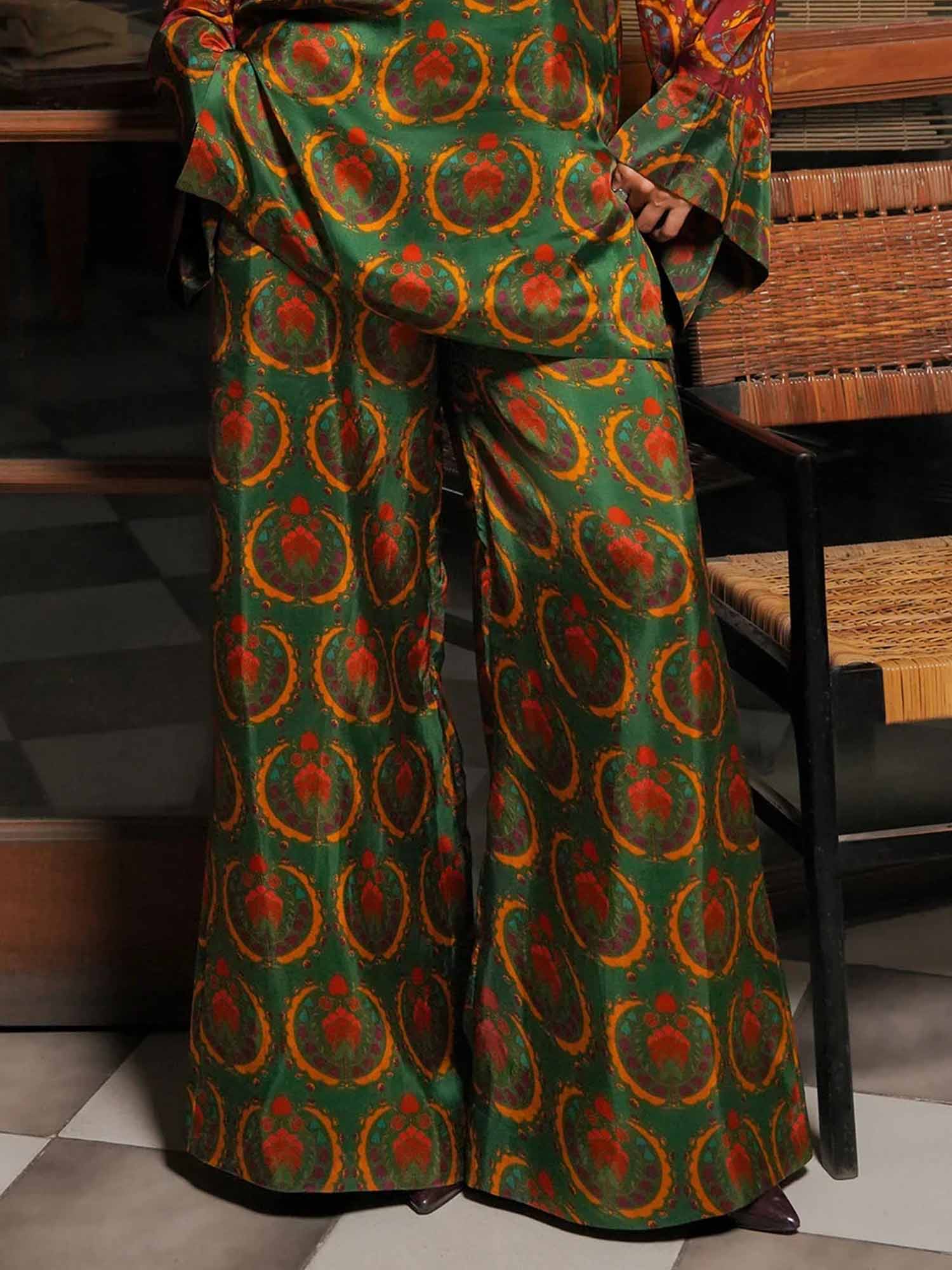 Wide leg pants featuring the same striking print, offering a chic and comfortable silhouette that stands out in both casual and formal settings.