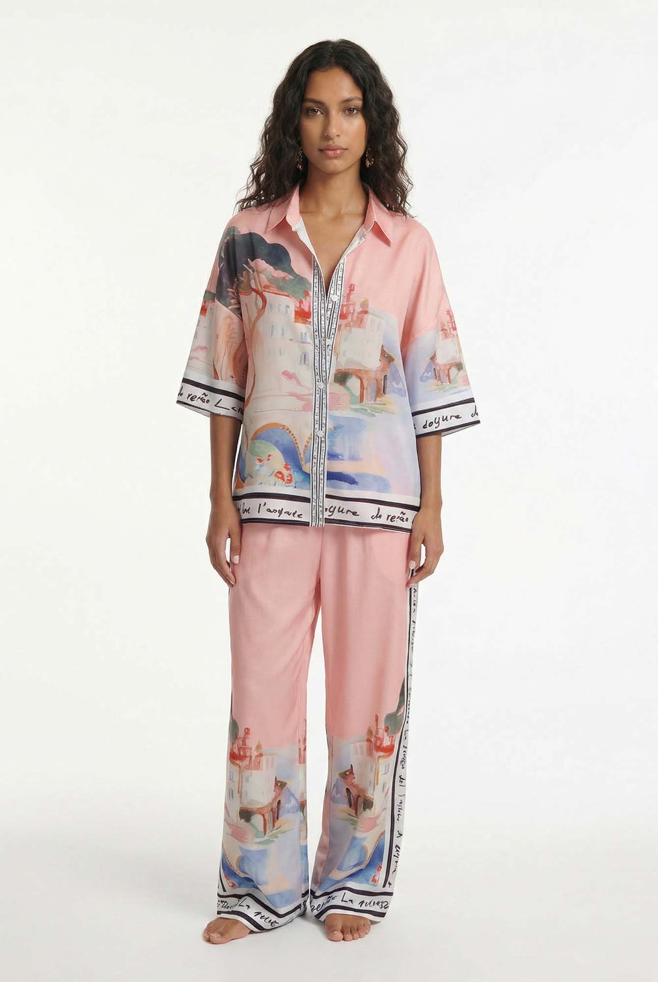 Enjoy cozy comfort with the Cartoon Dog Print Long Pajama Set. Featuring a fun and whimsical cartoon dog print with vibrant red accents, this set is perfect for lounging or a relaxed night in.