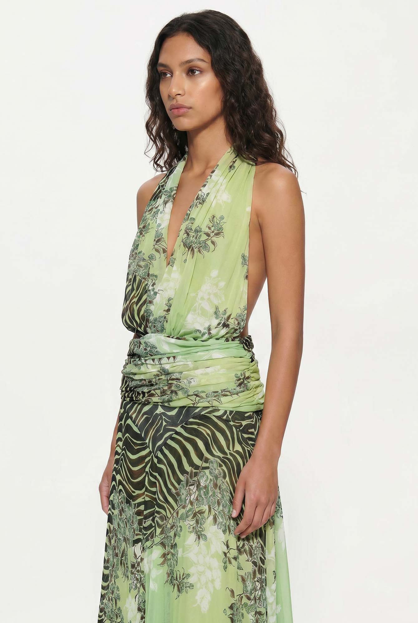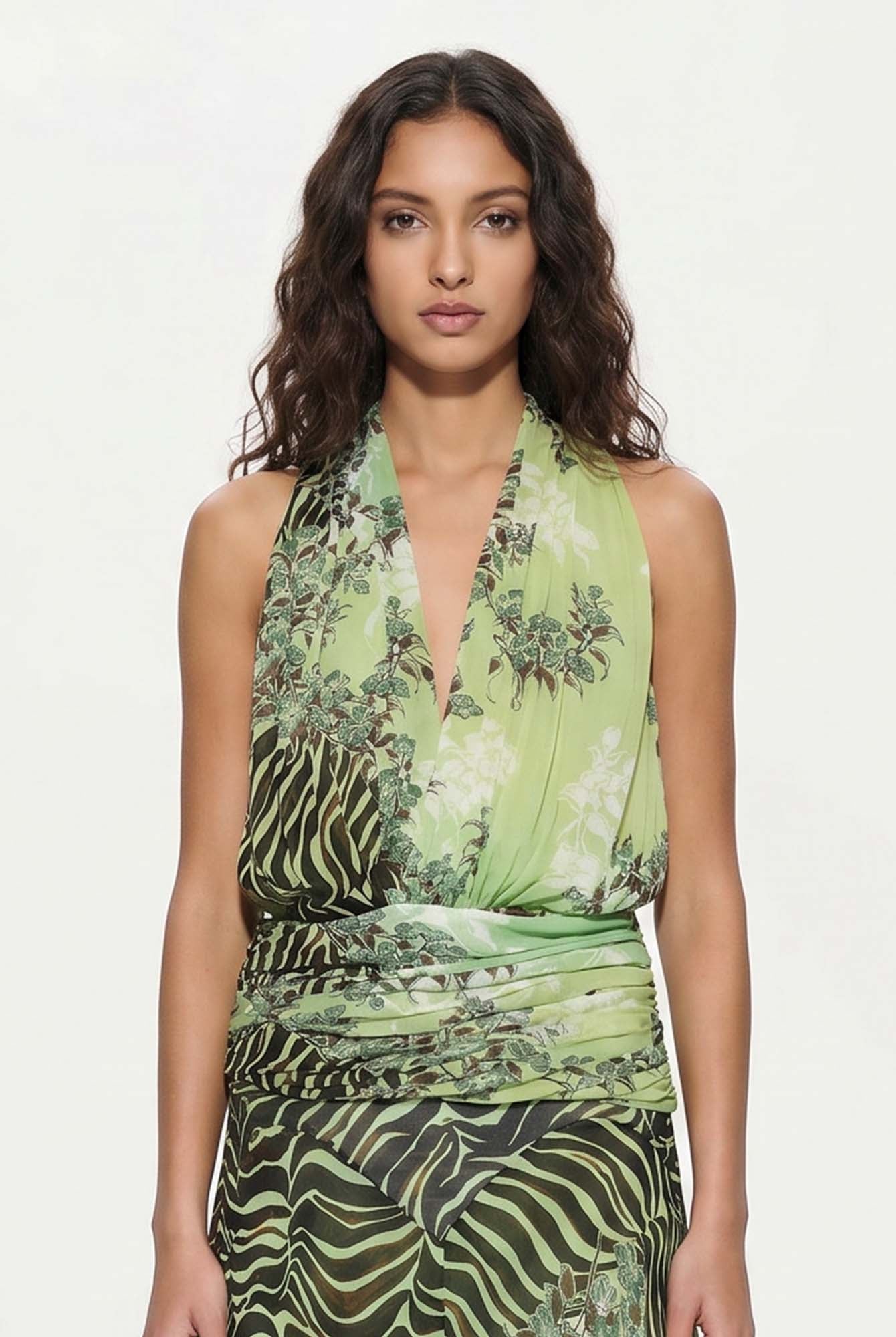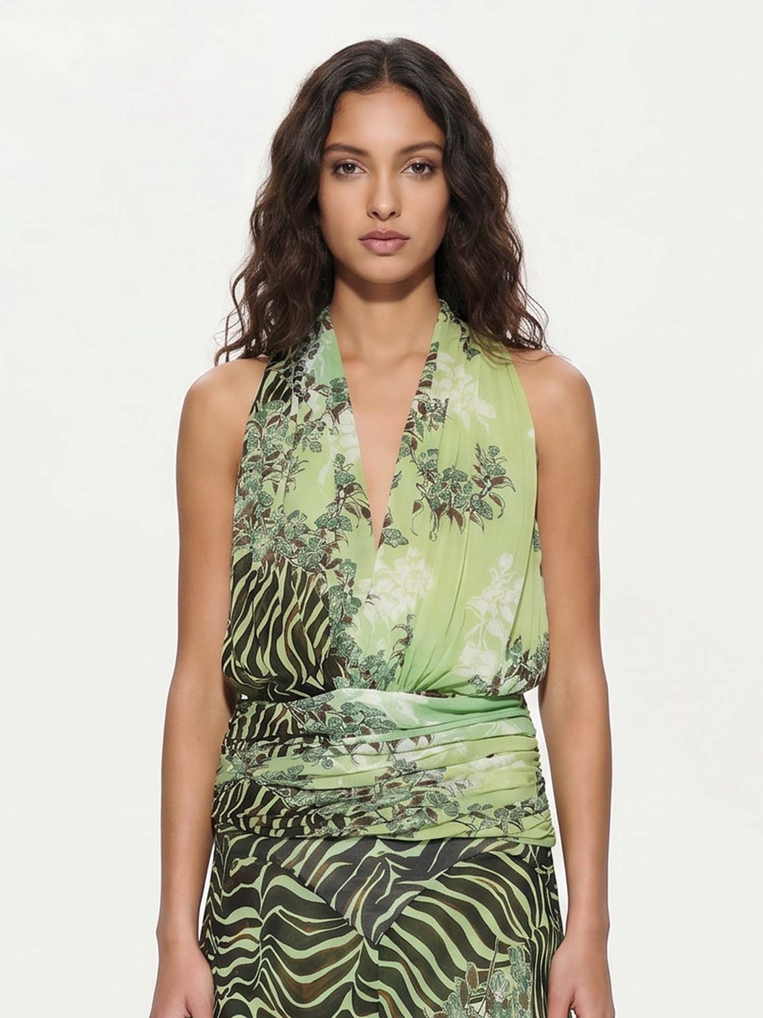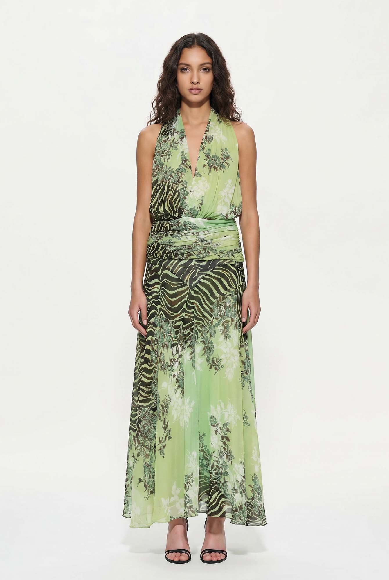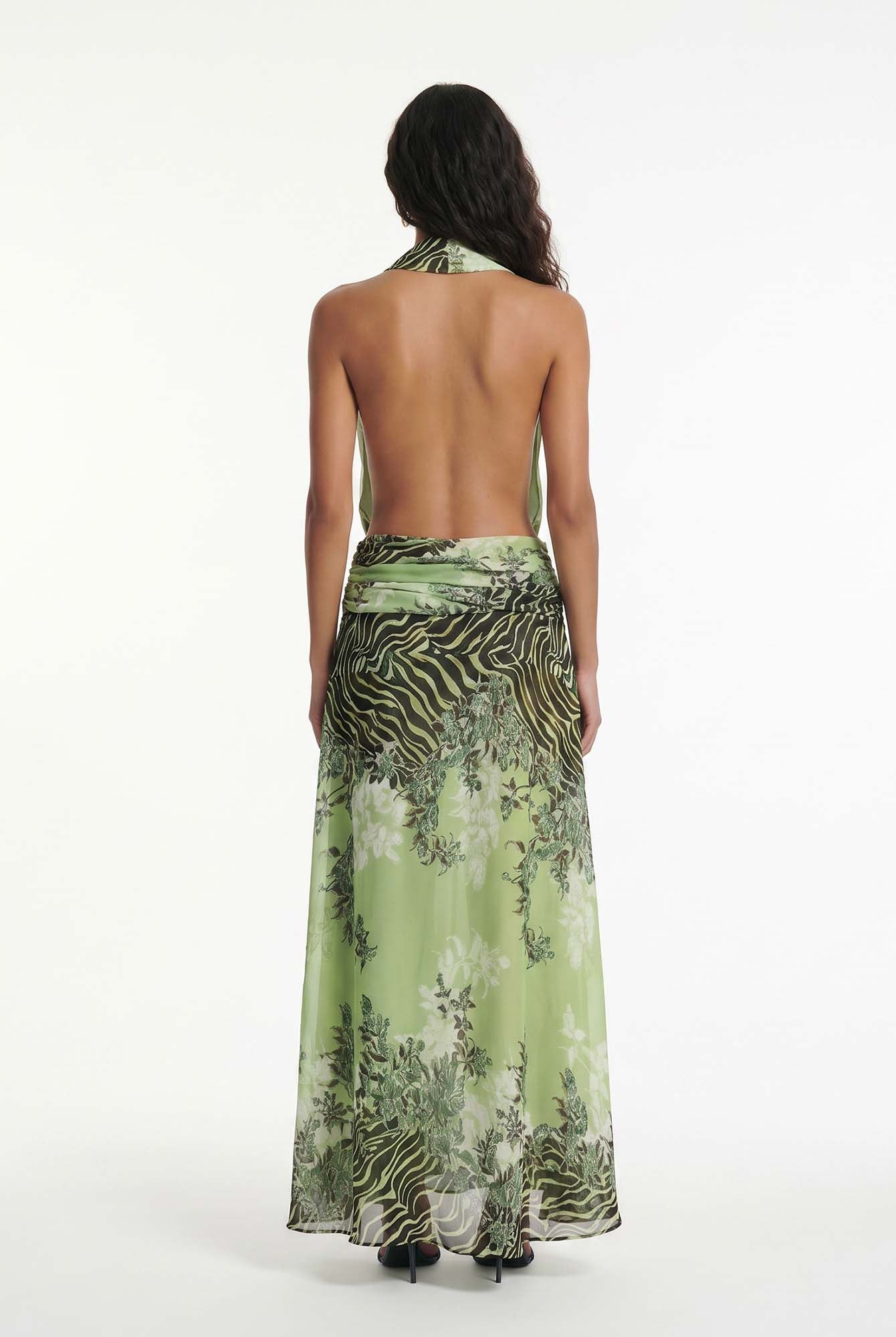 Bold and unapologetically confident, the Delphine Skirt Set pairs a twisted bandeau top with a draped high-slit maxi skirt. The cutout detailing and fluid fit make it the perfect choice for elevated resort nights and poolside parties with a touch of drama.