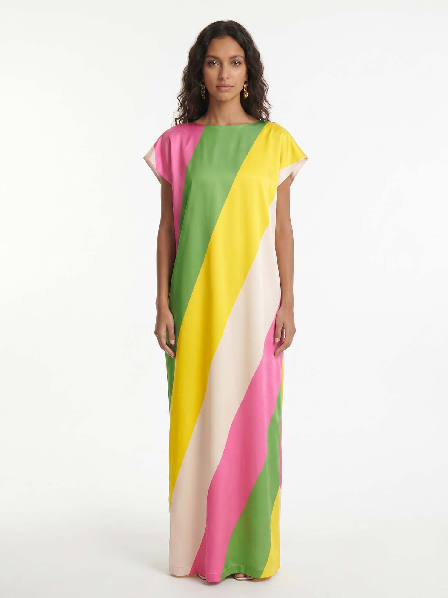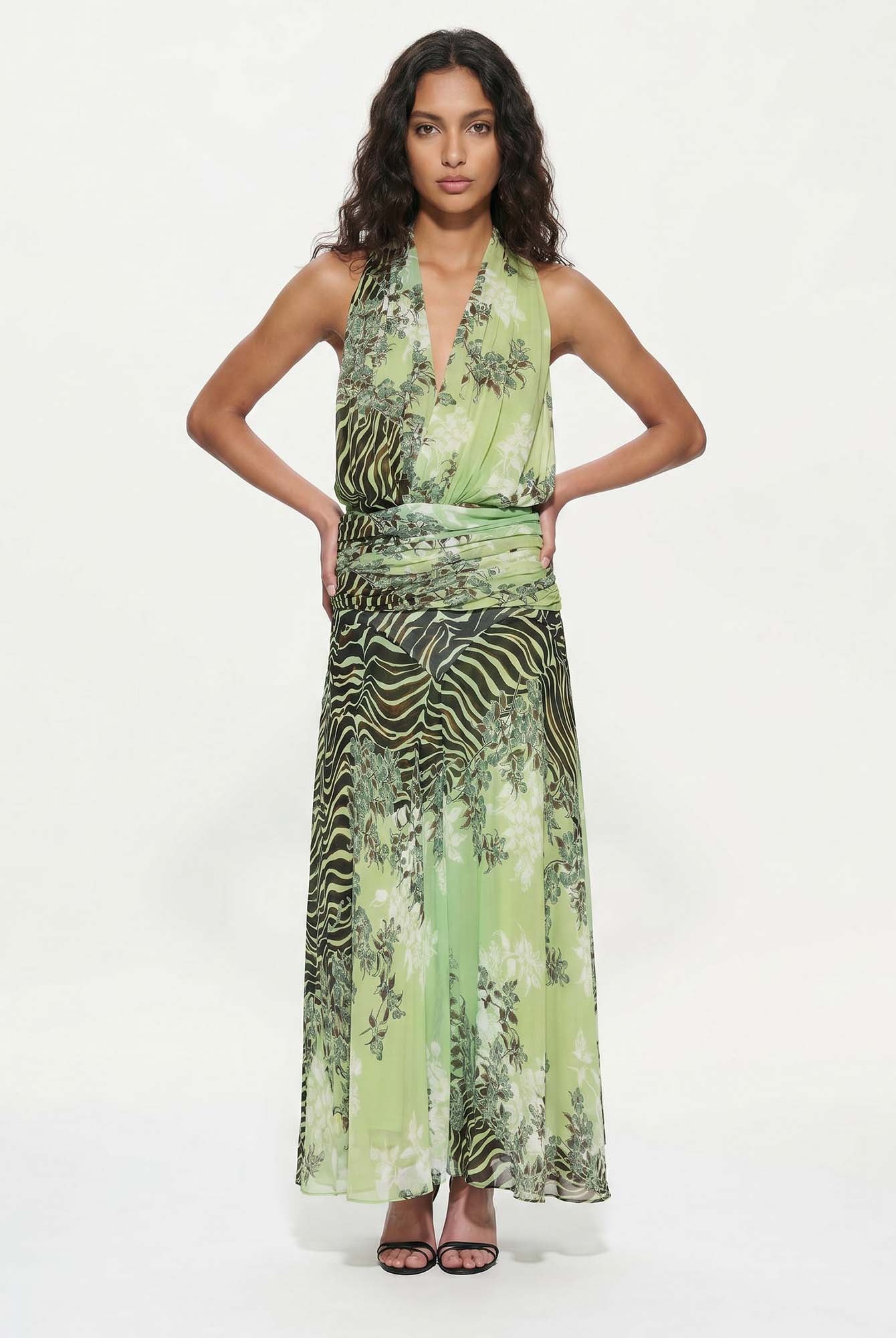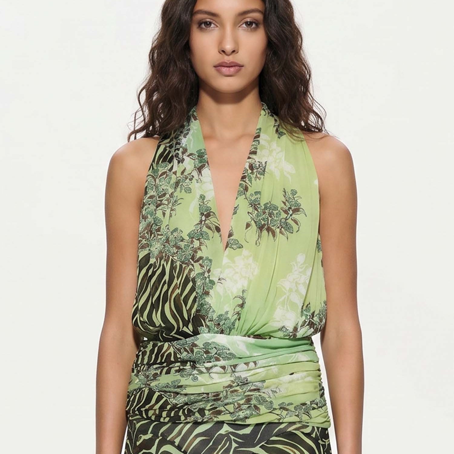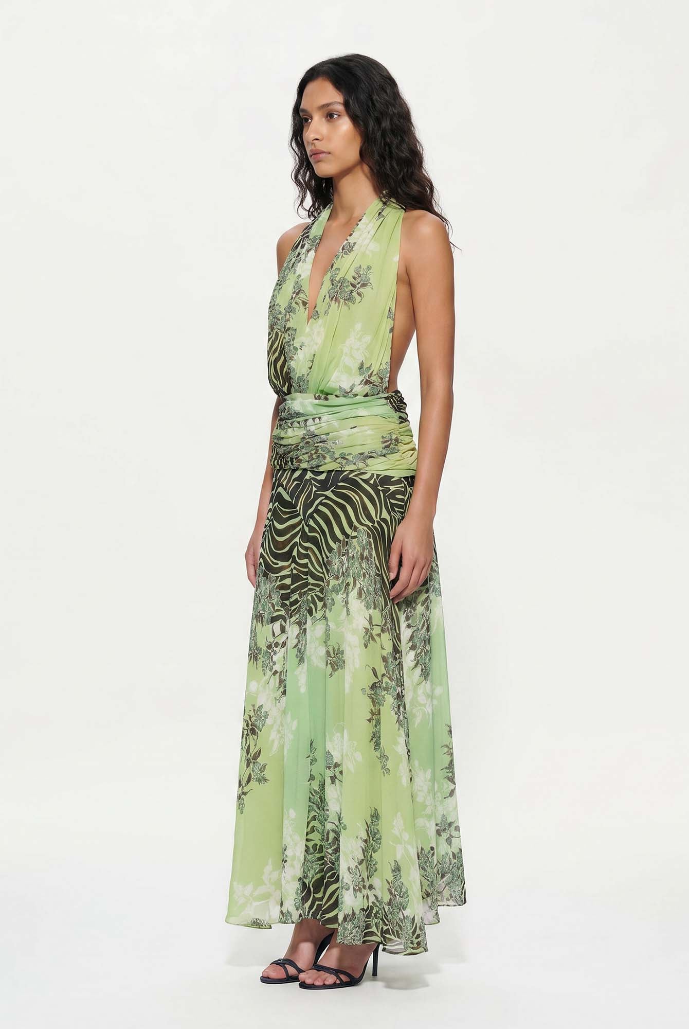 Bold and unapologetically confident, the Delphine Skirt Set pairs a twisted bandeau top with a draped high-slit maxi skirt. The cutout detailing and fluid fit make it the perfect choice for elevated resort nights and poolside parties with a touch of drama.