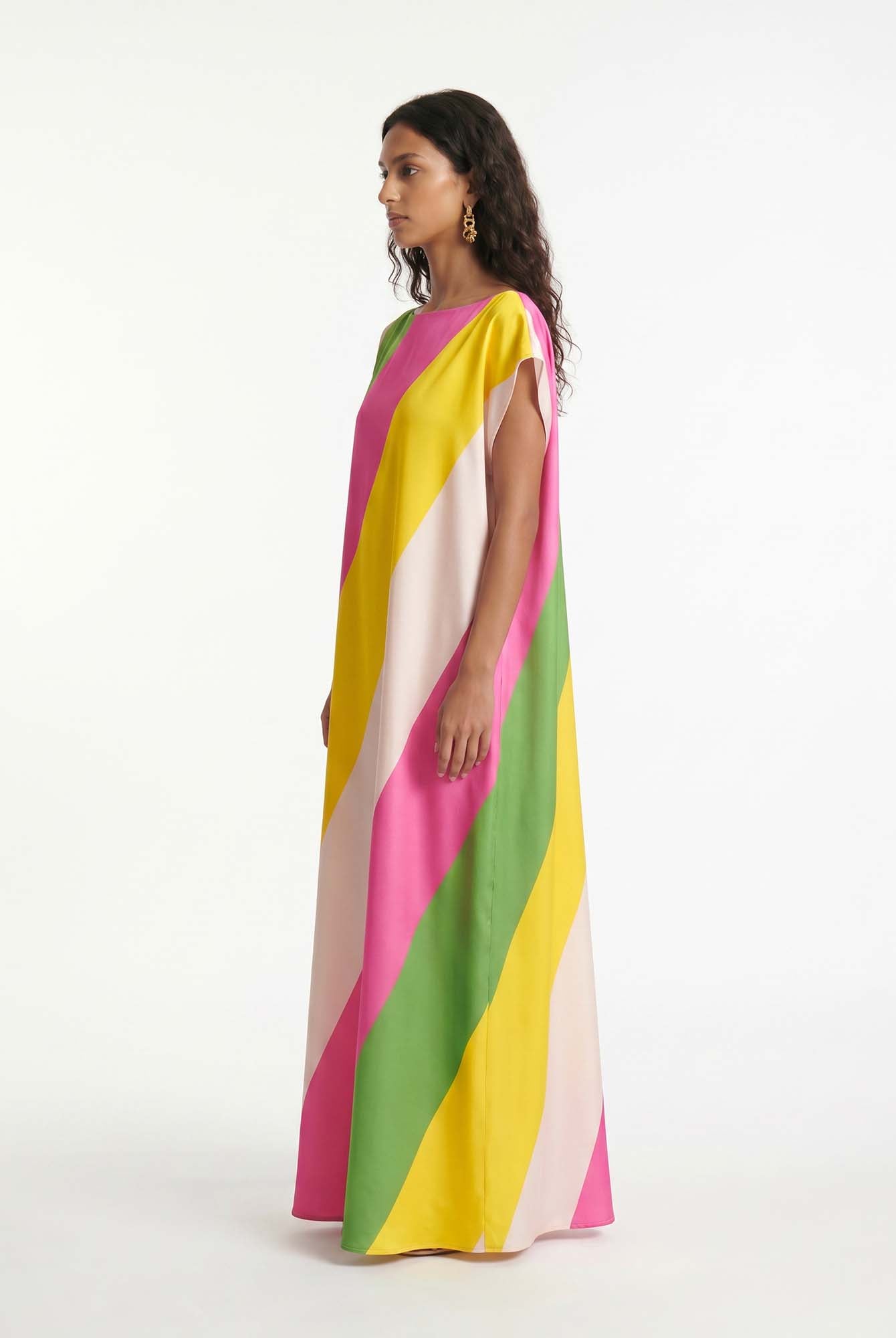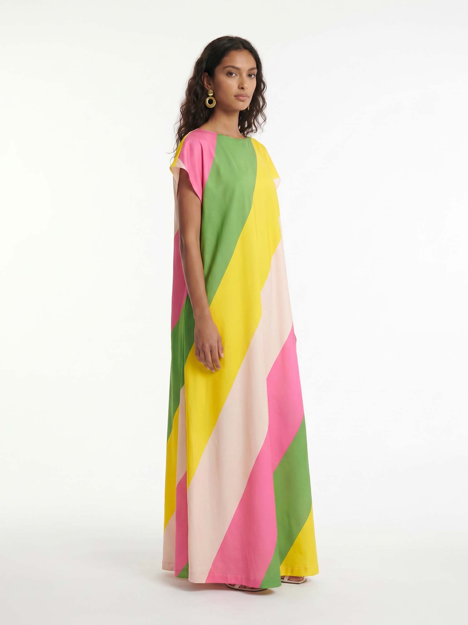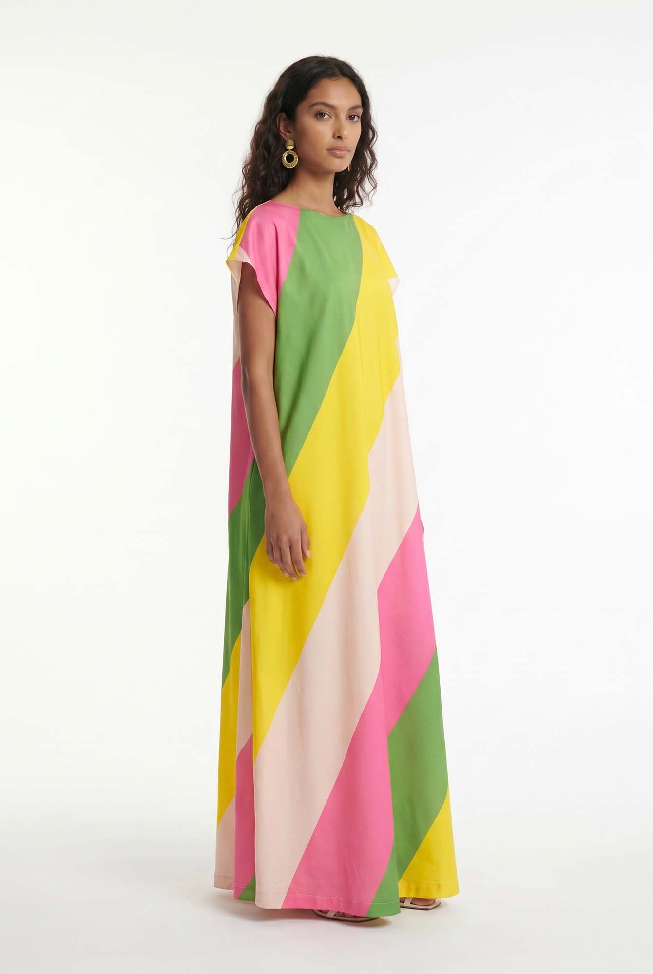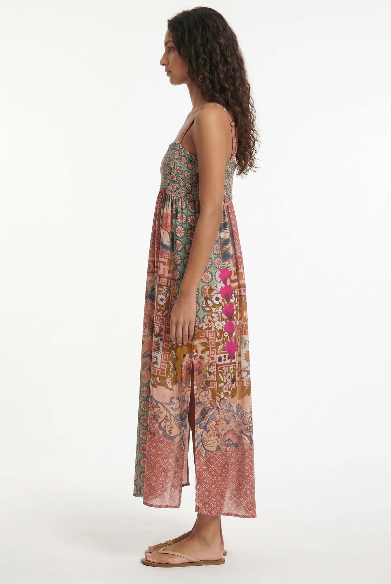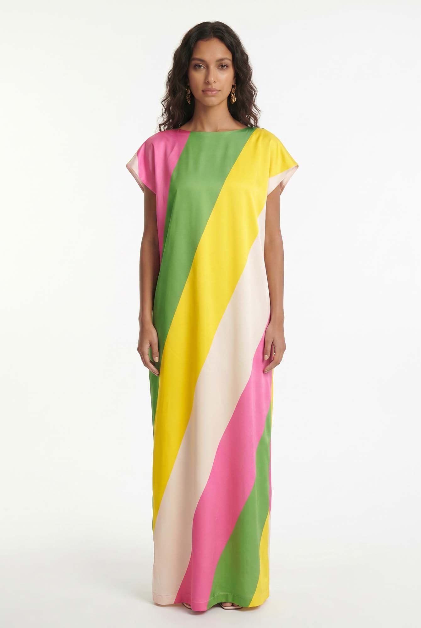 Bold and unapologetically confident, the Delphine Skirt Set pairs a twisted bandeau top with a draped high-slit maxi skirt. The cutout detailing and fluid fit make it the perfect choice for elevated resort nights and poolside parties with a touch of drama.