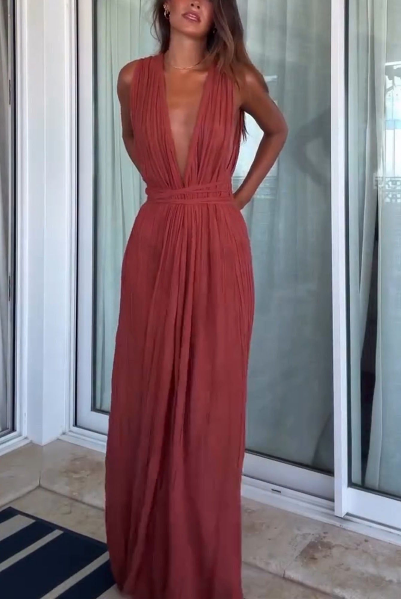 Made from lightweight chiffon, this elegant floral maxi dress features a soft, flowing design. Perfect for a beachside evening or garden party, it boasts delicate floral prints with a lightweight, breezy feel. Pair with sandals or heels for a chic look.