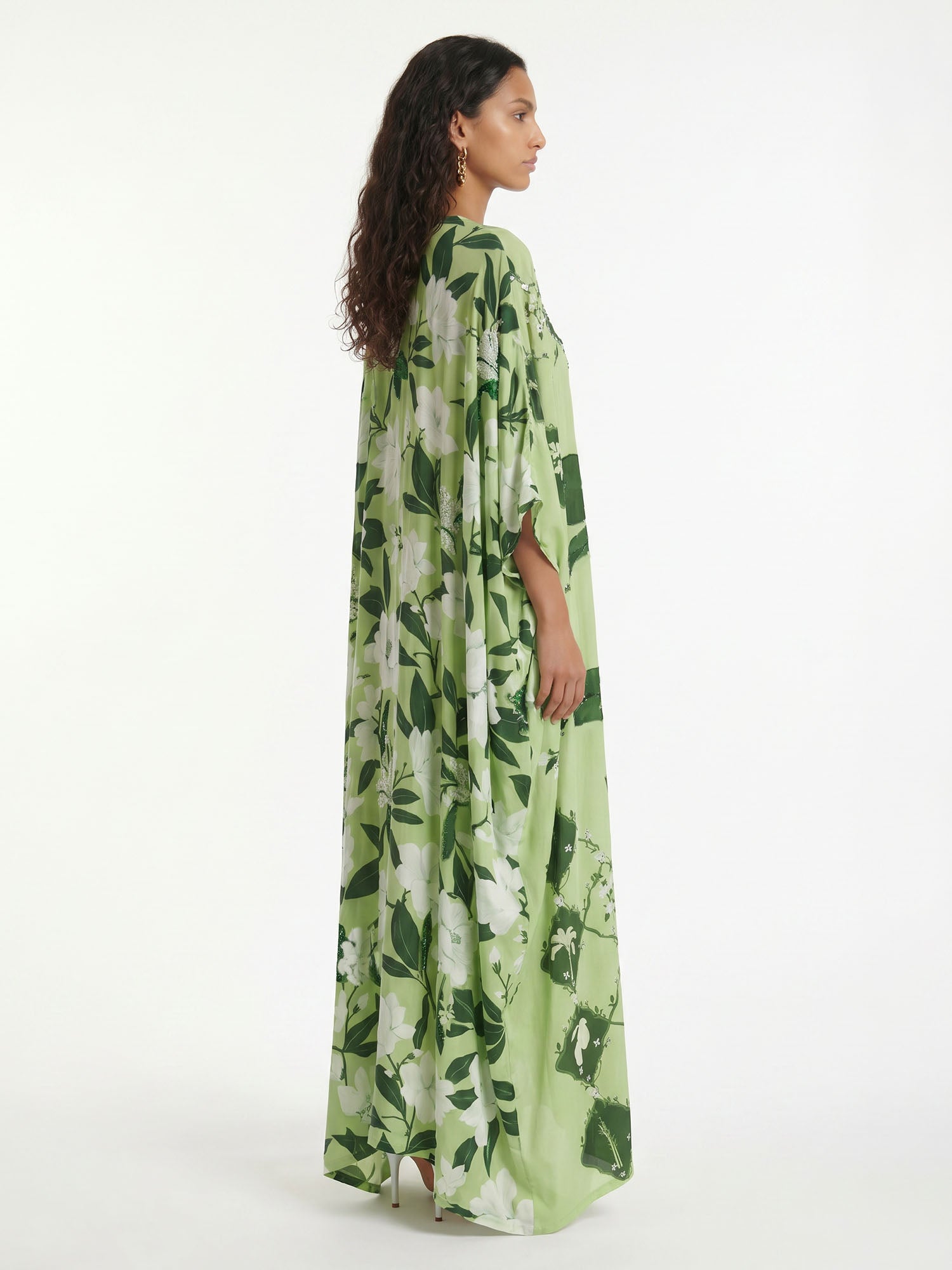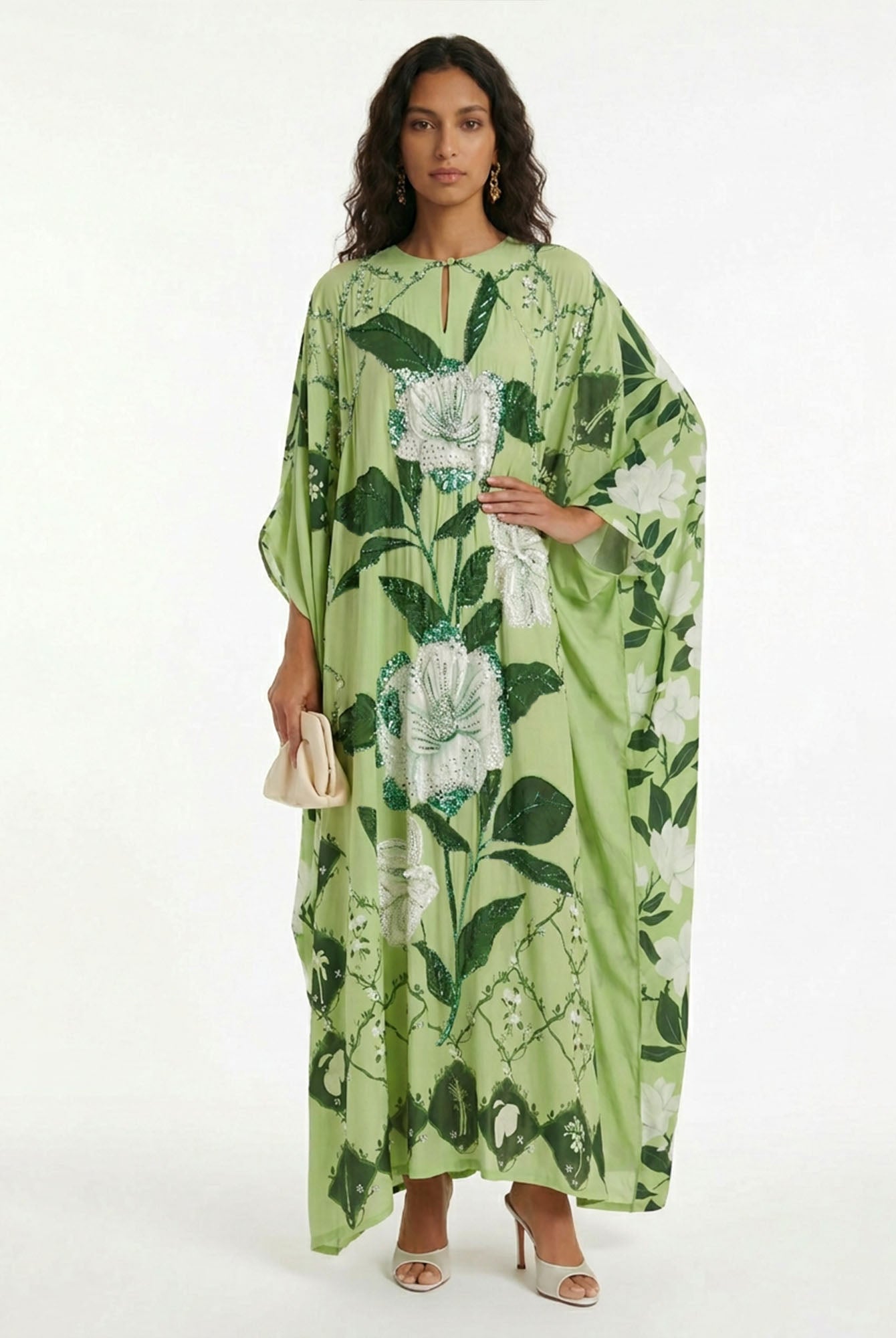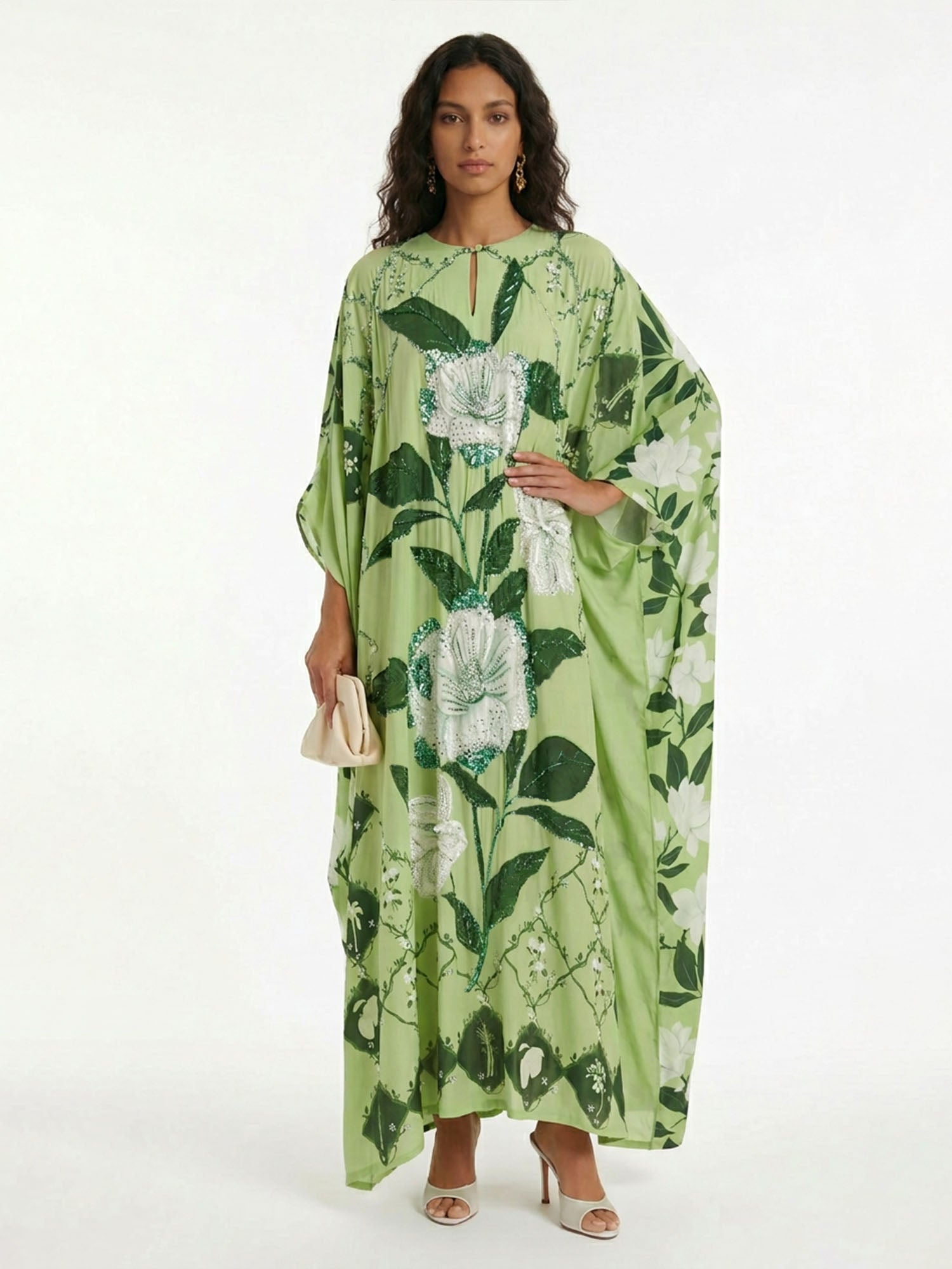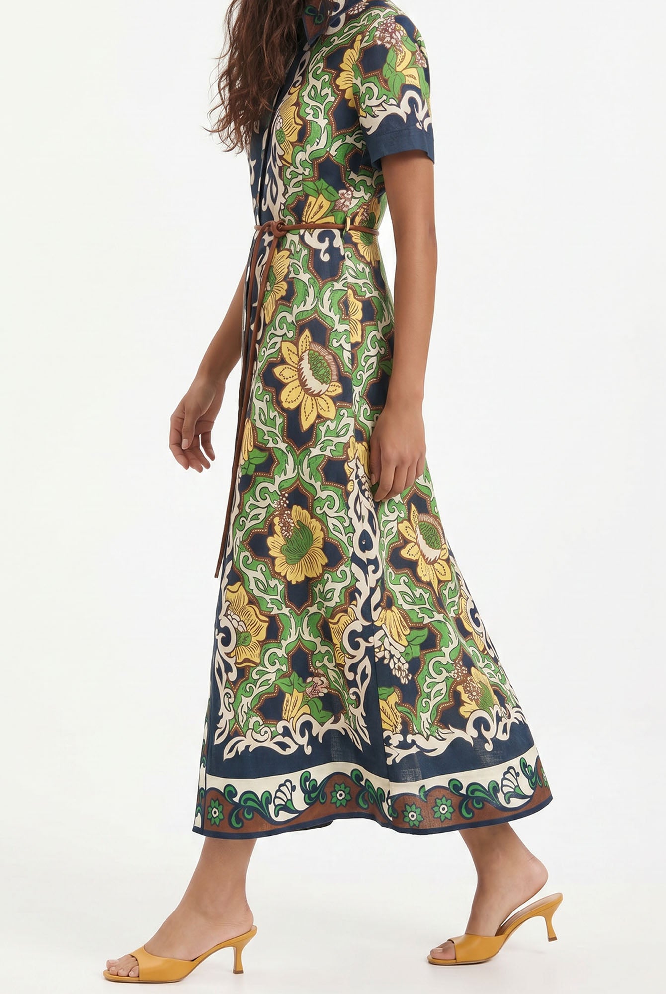 Let ancient horizons awaken where the flowing silhouette sways with quiet grace, inviting serene harmony and timeless femininity with every gentle step.
