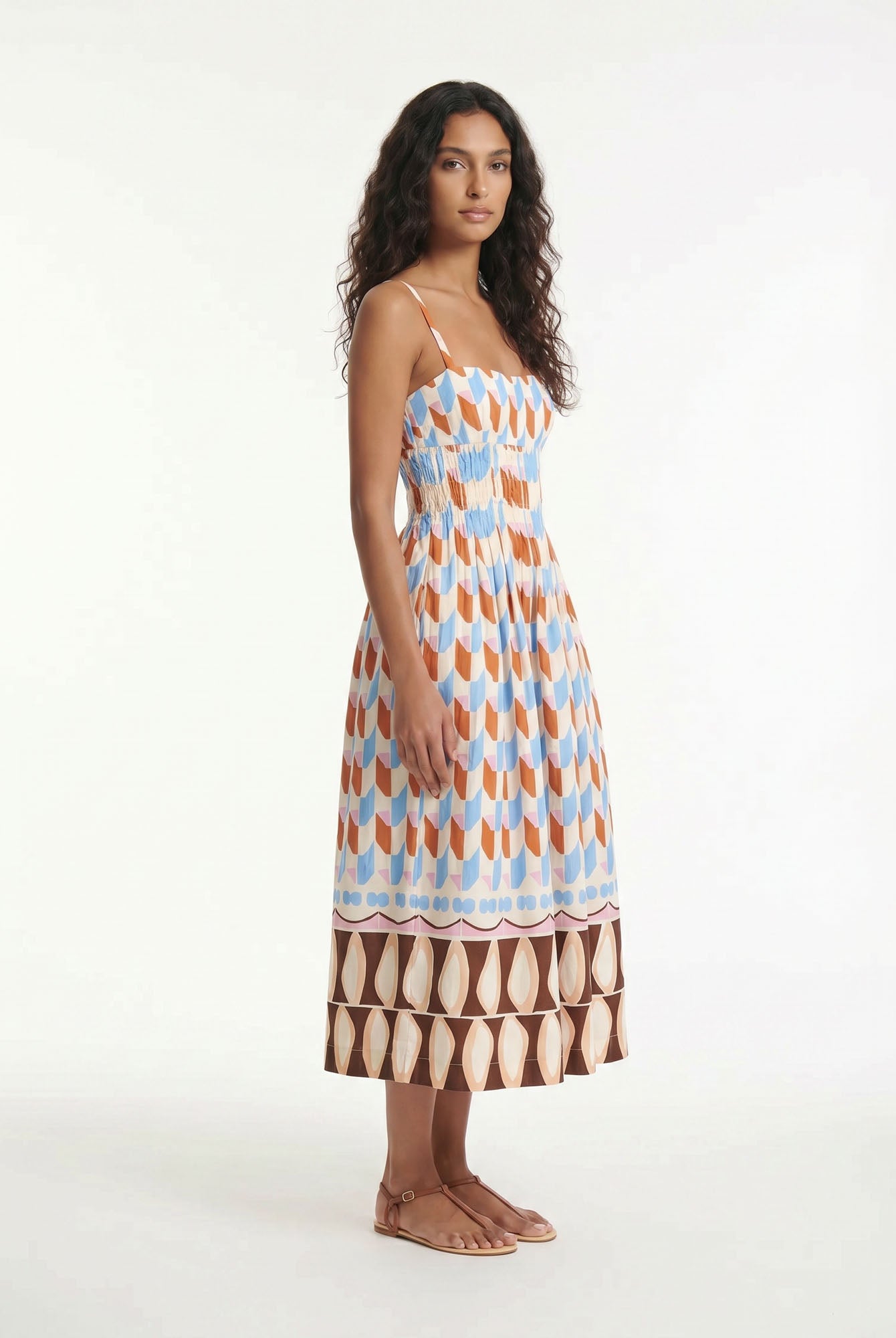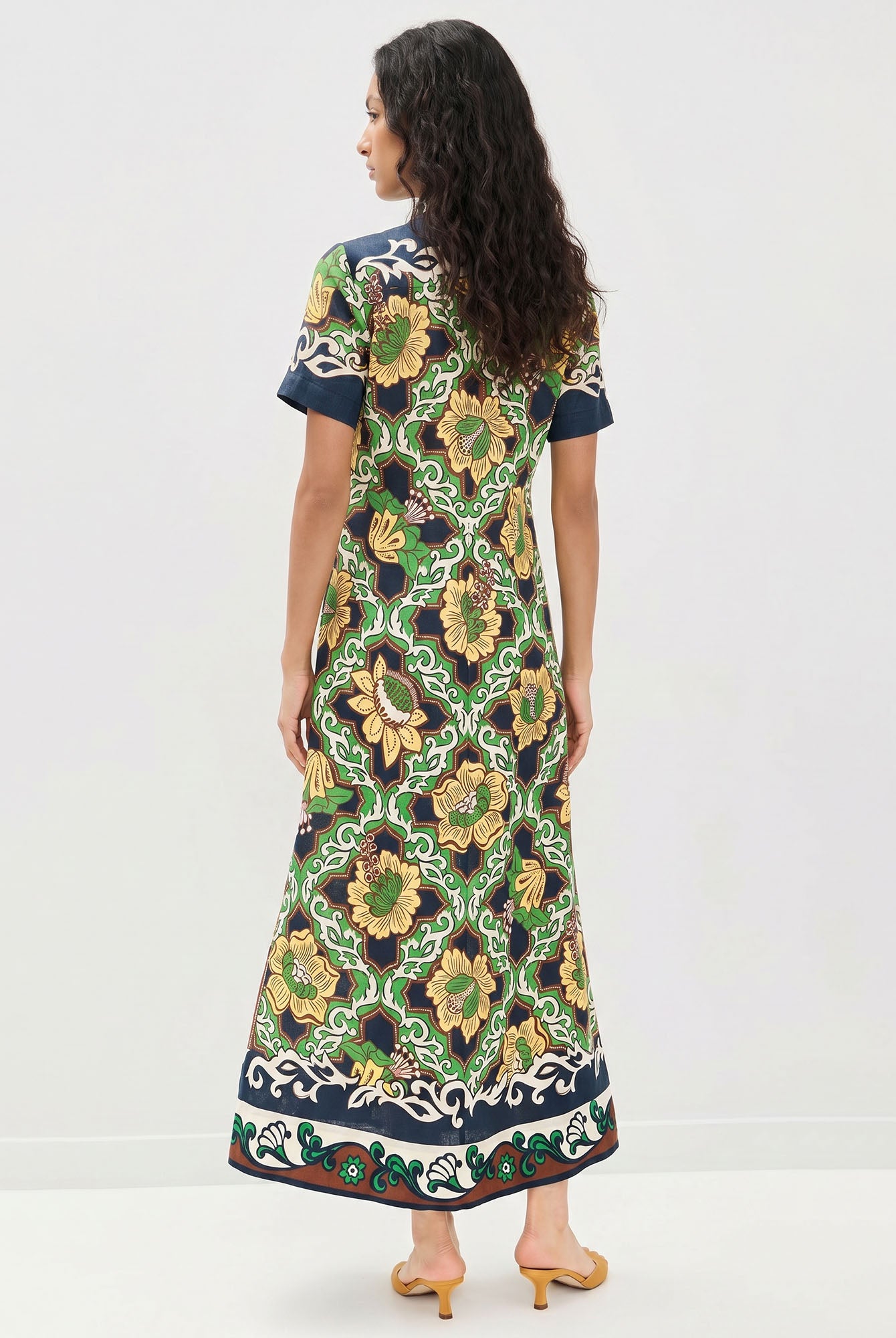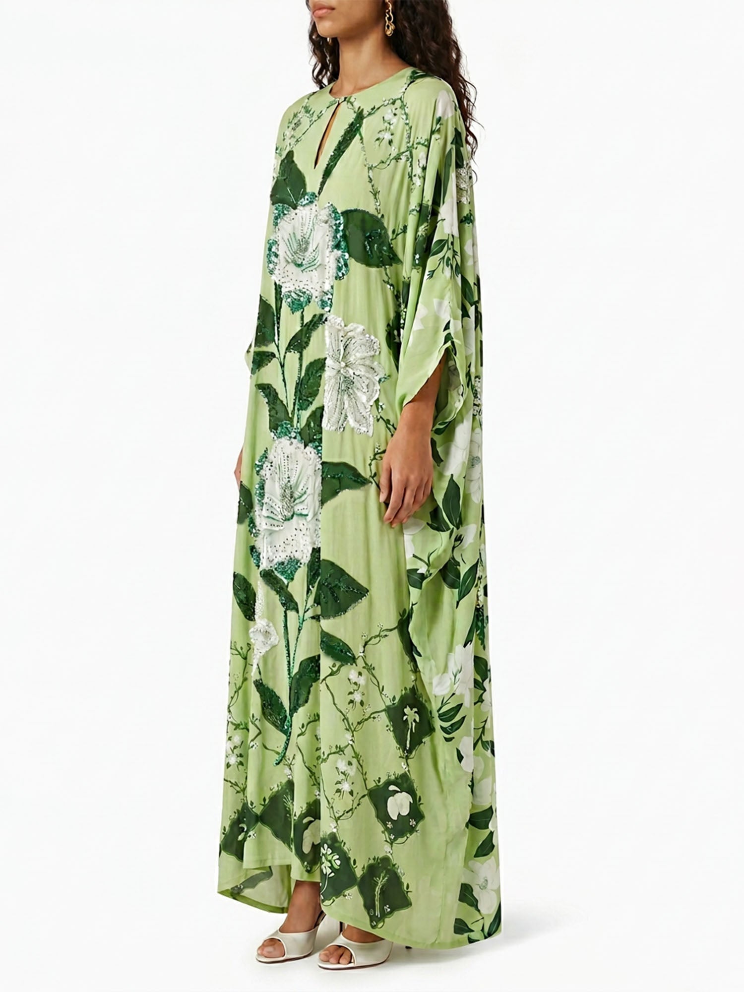 Let ancient horizons awaken where the flowing silhouette sways with quiet grace, inviting serene harmony and timeless femininity with every gentle step.