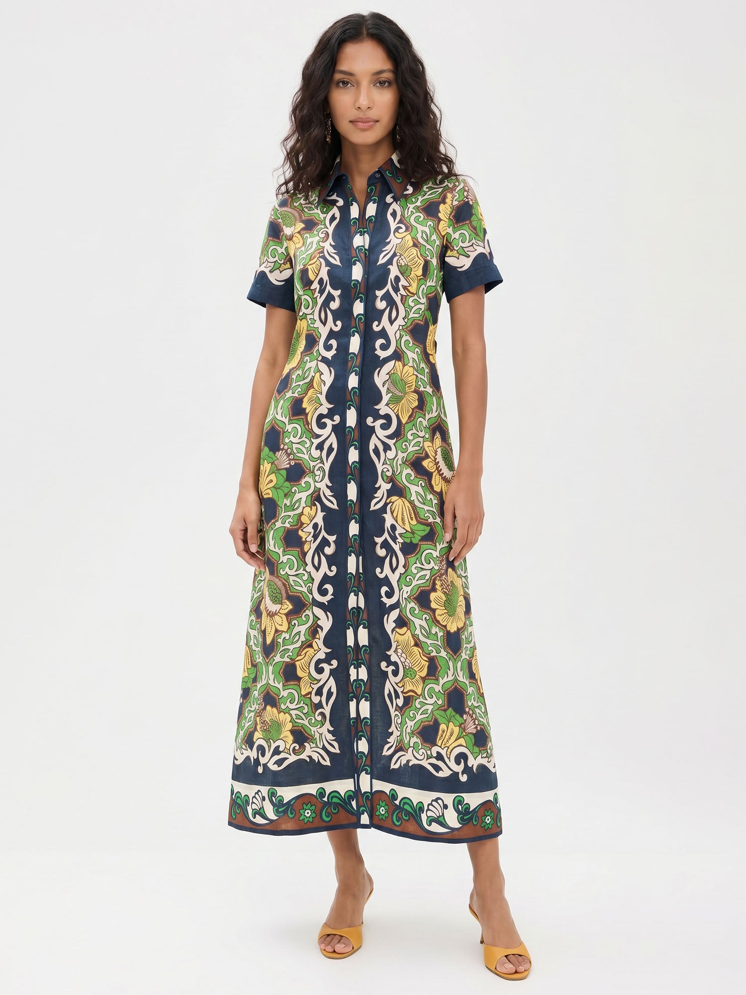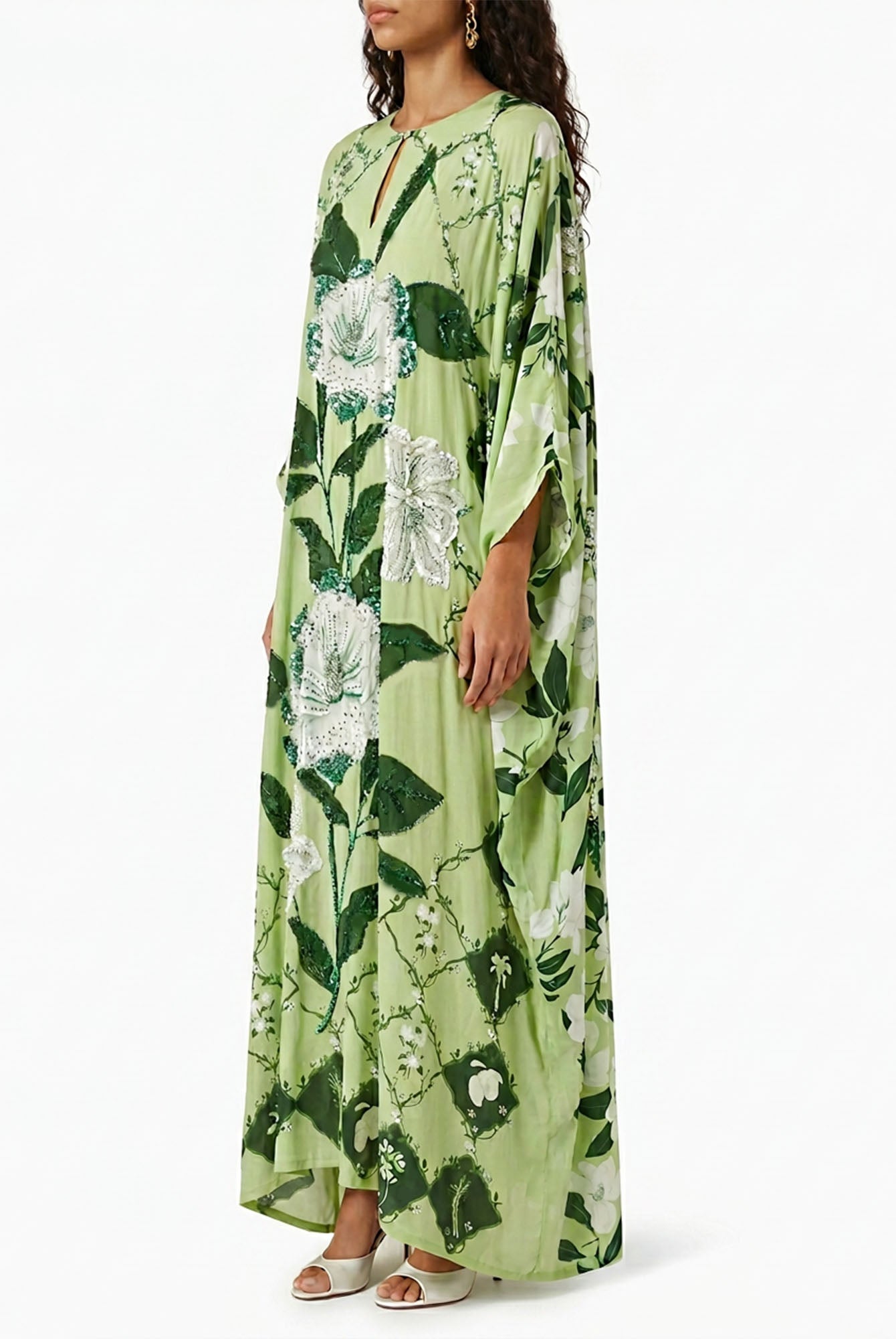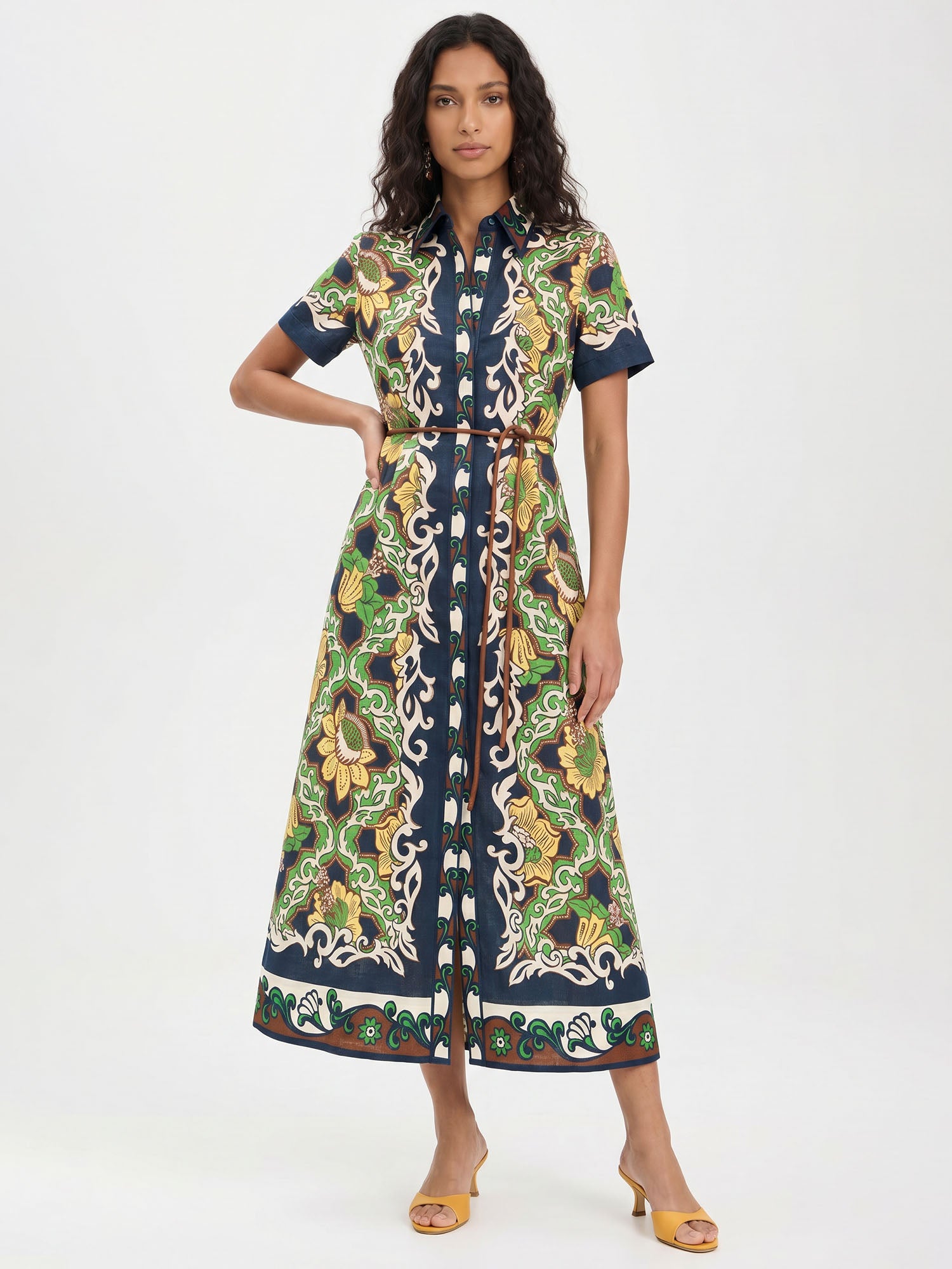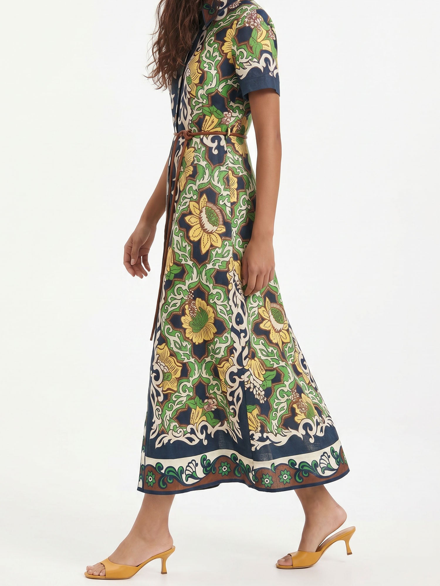 Let ancient horizons awaken where the flowing silhouette sways with quiet grace, inviting serene harmony and timeless femininity with every gentle step.
