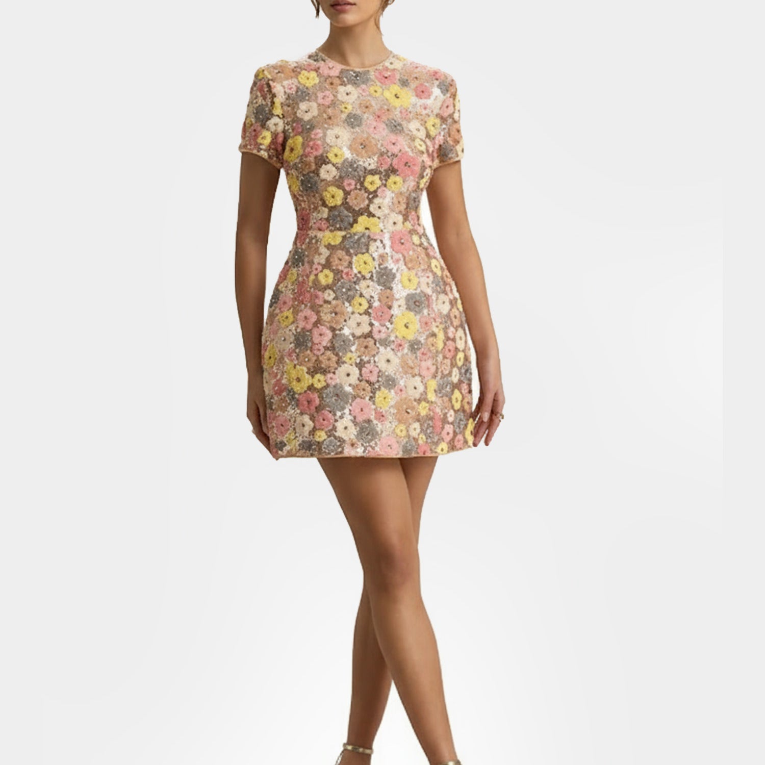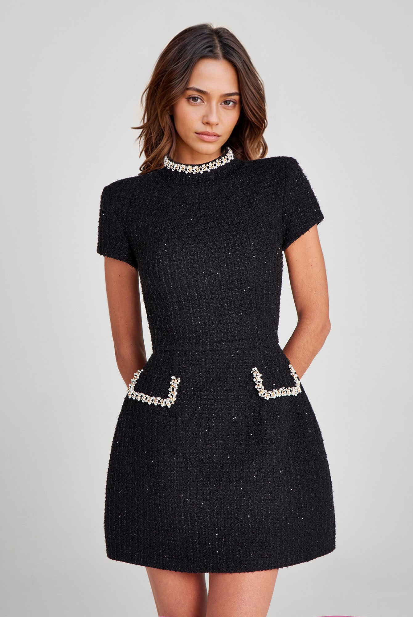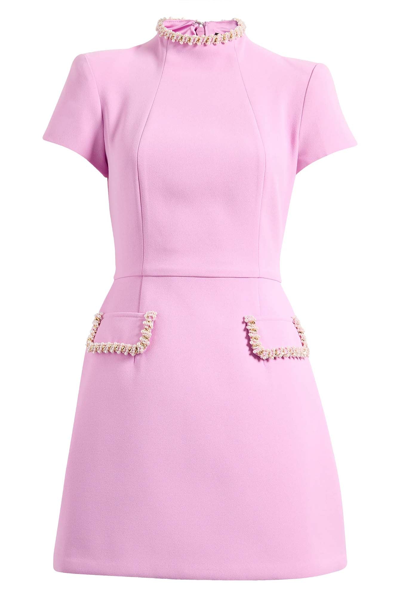 Pink Pearl Trim Mini Dress