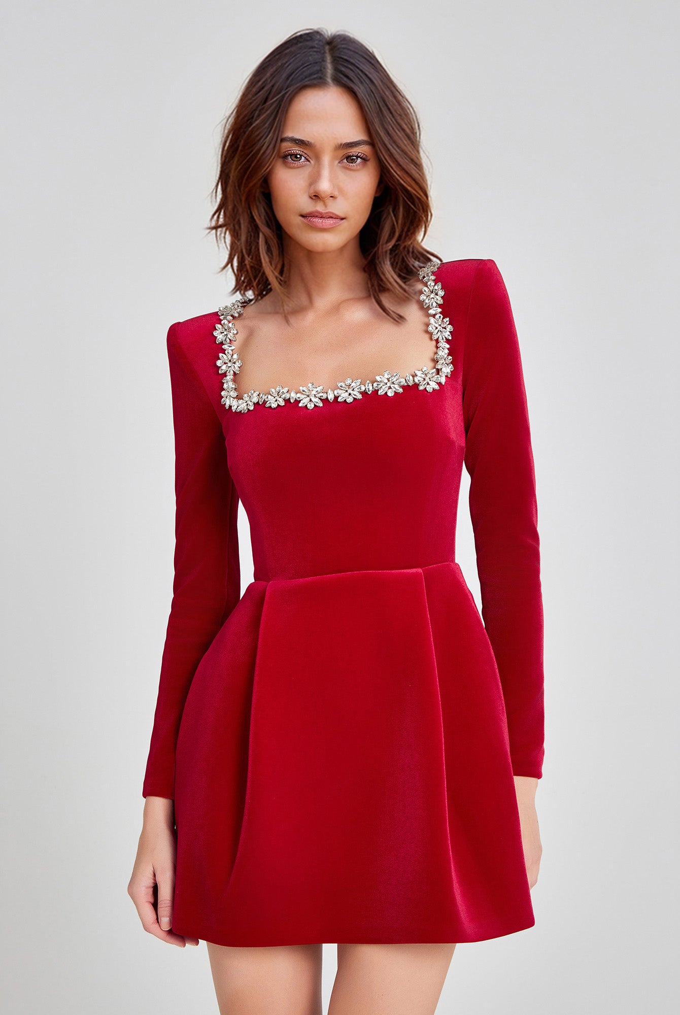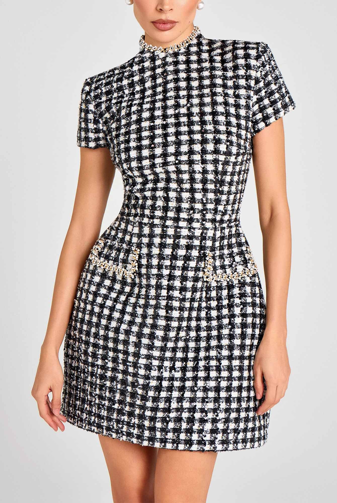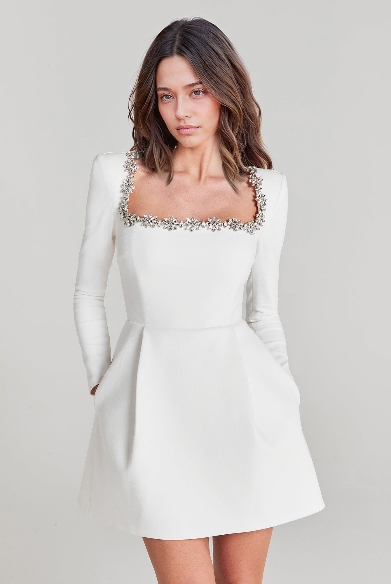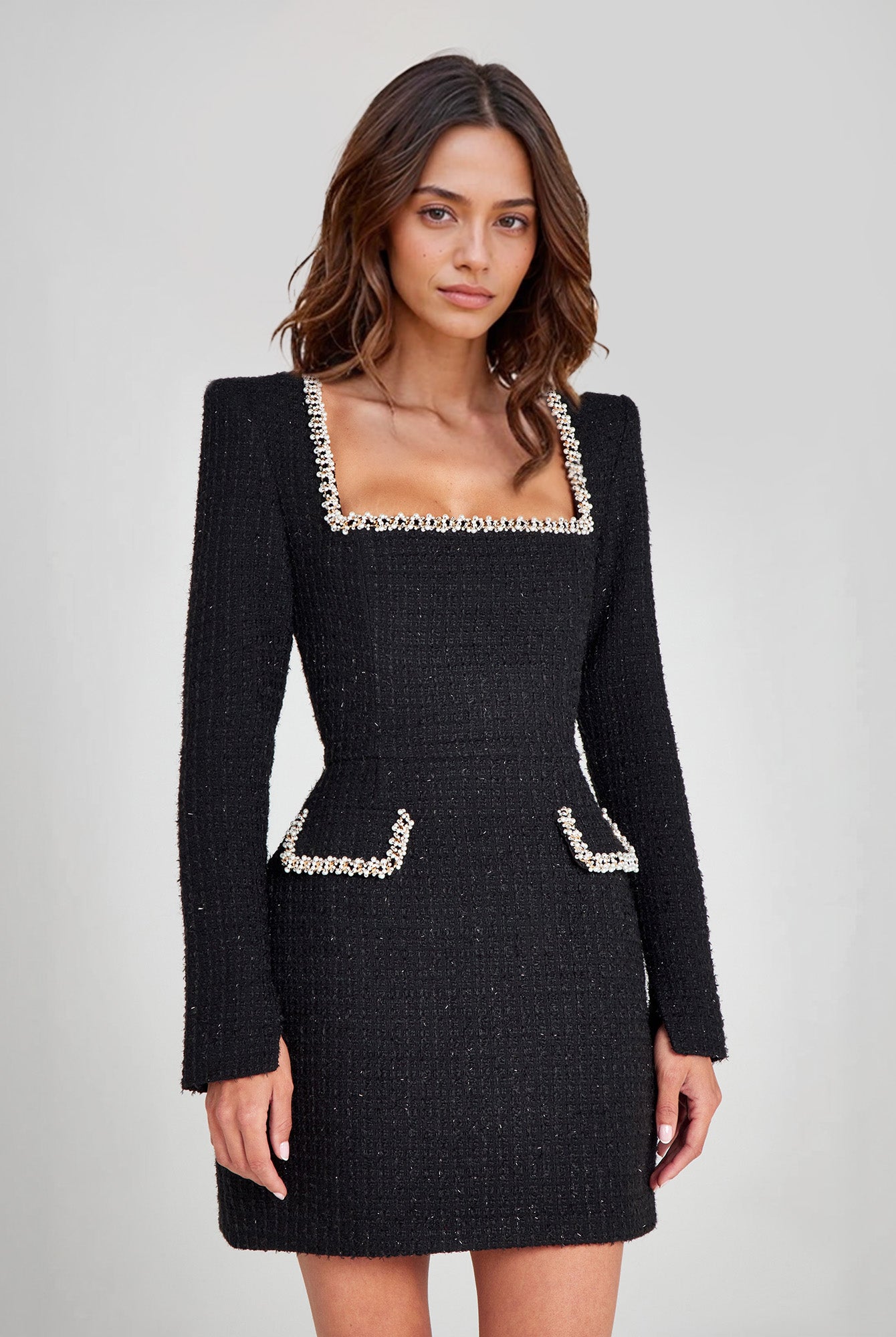 Dress with Beaded Square Neckline